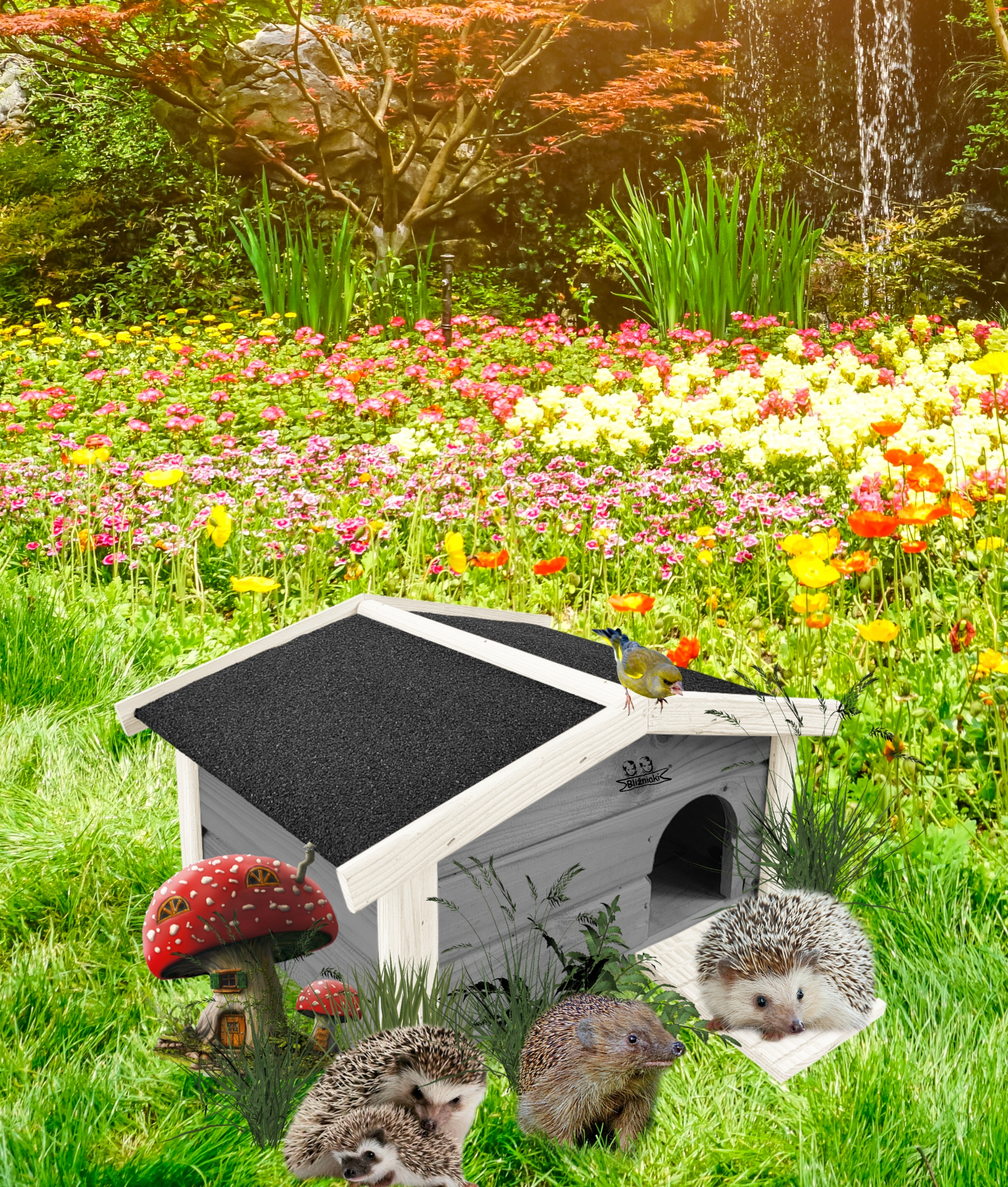 Domek drewniany dla jeża stanowić będzie niezwykle dekoracyjny element architektury ogrodowej jako schronienie całoroczne dla jeża, miejsce do hibernacji od jesieni do wiosny a także jako domek do lęgowania i bytowania tych przyjaznych stworzeń w pozostałej części roku.