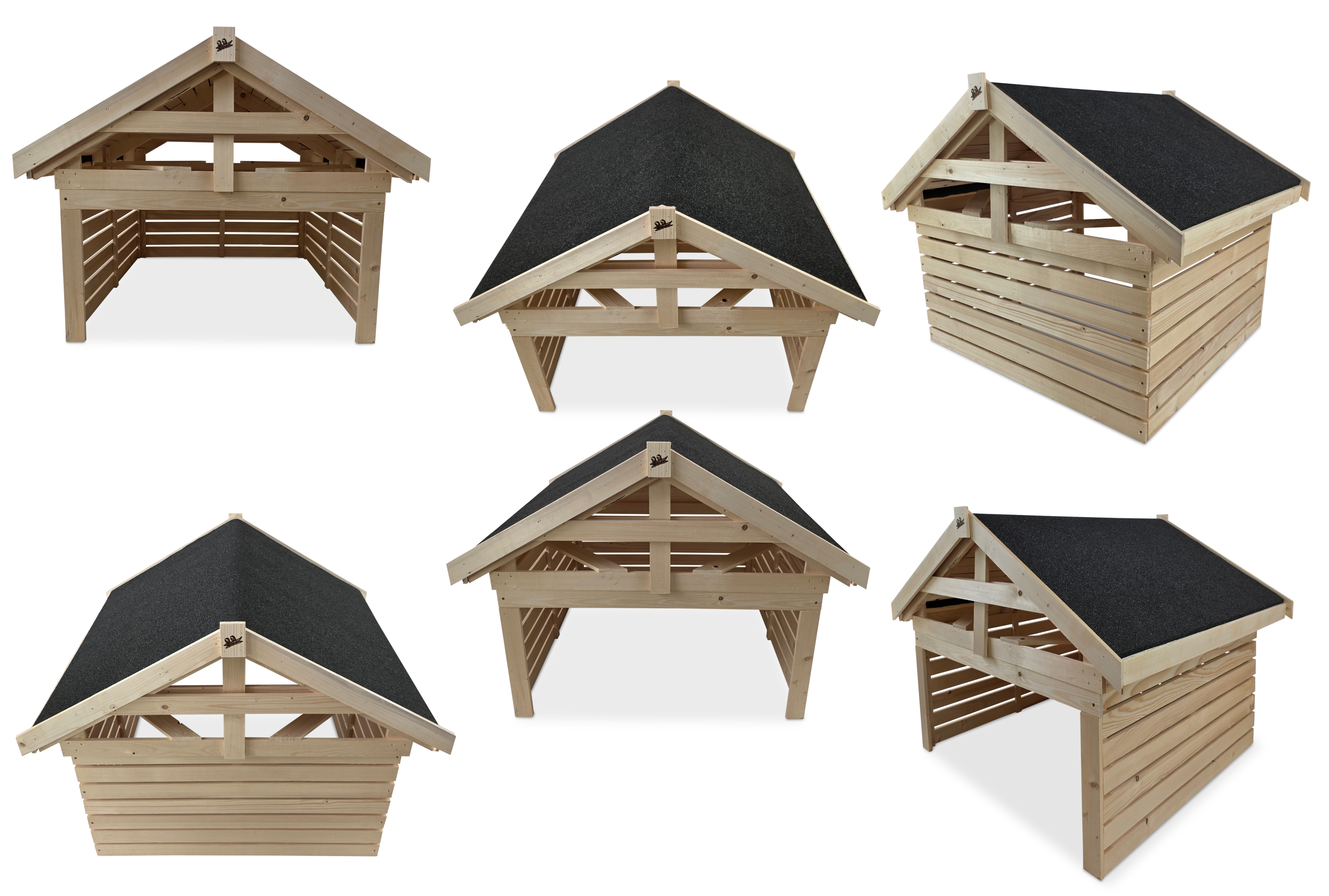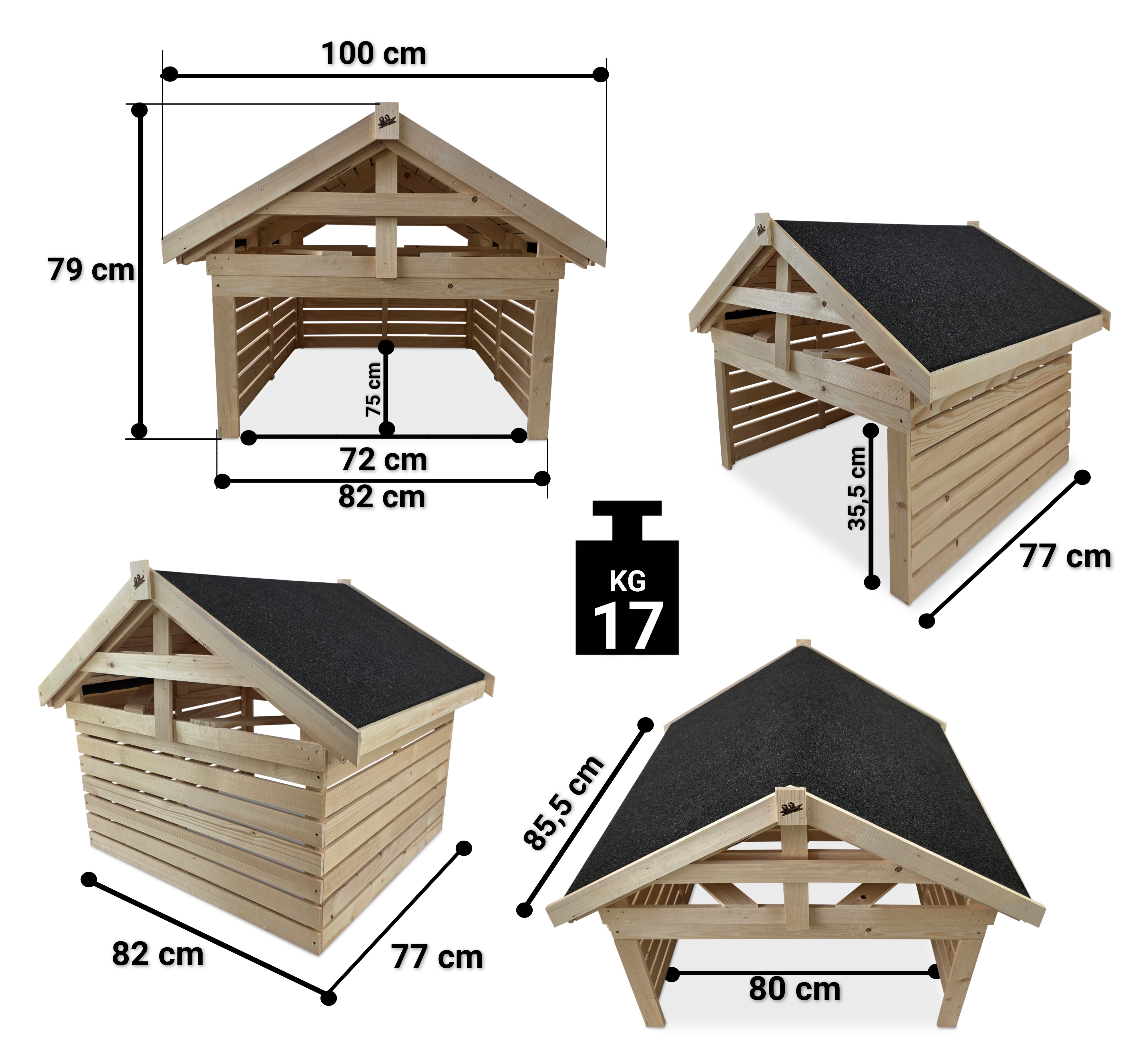 Nasz produkt został zaprojektowany w taki sposób, aby sprostać każdym warunkom atmosferycznym przez cały rok. Wykonany w całości z drewna, kryty gontem bitumicznym, zapobiega przeciekaniu wody. Zdejmowany dwuspadowy dach ułatwi instalowanie kosiarki - robota w środku.