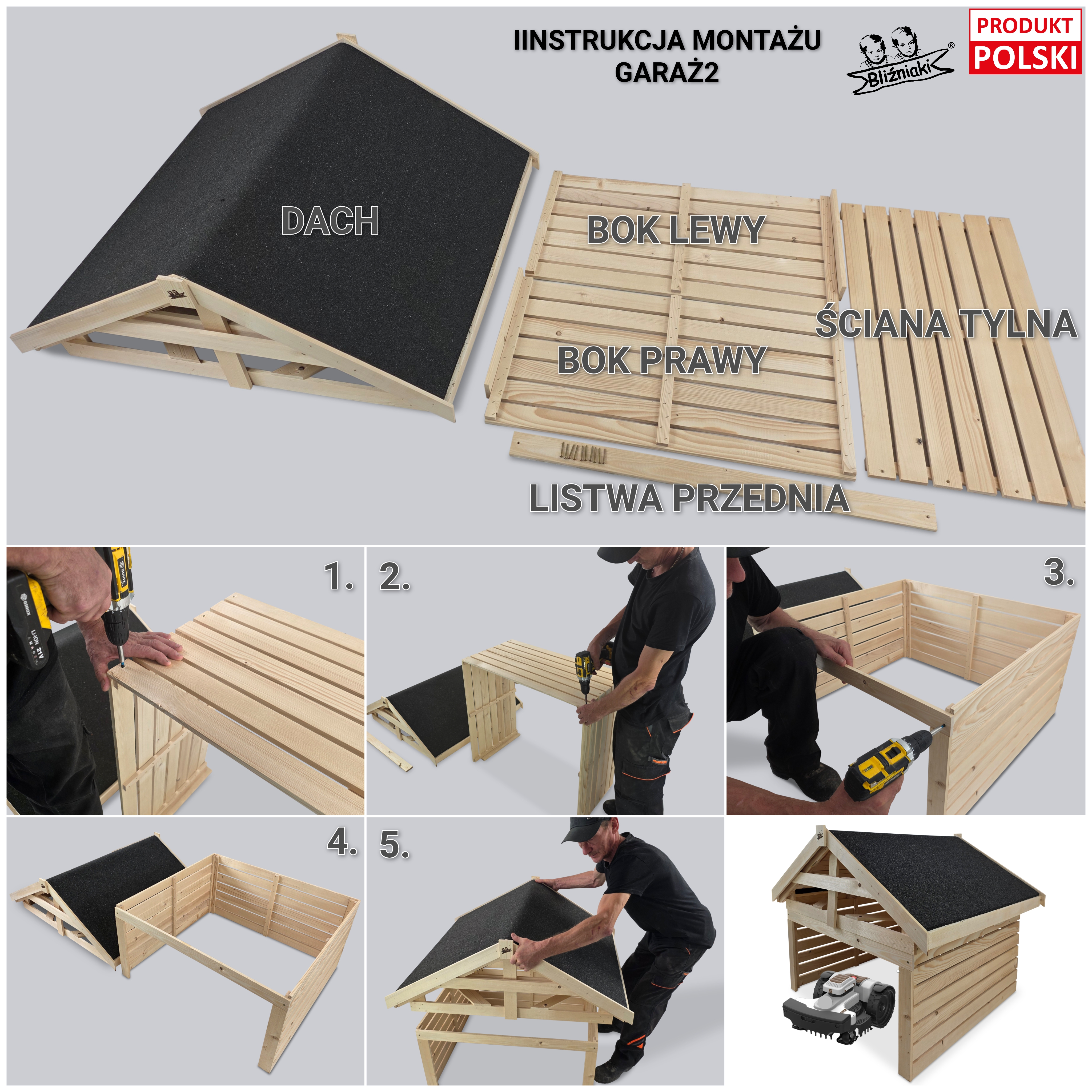 PRZEDMIOTEM OFERTY JEST DREWNIANY DOMEK - GARAŻ DLA KOSIARKI AUTOMATYCZNEJ GARAŻ2 N
