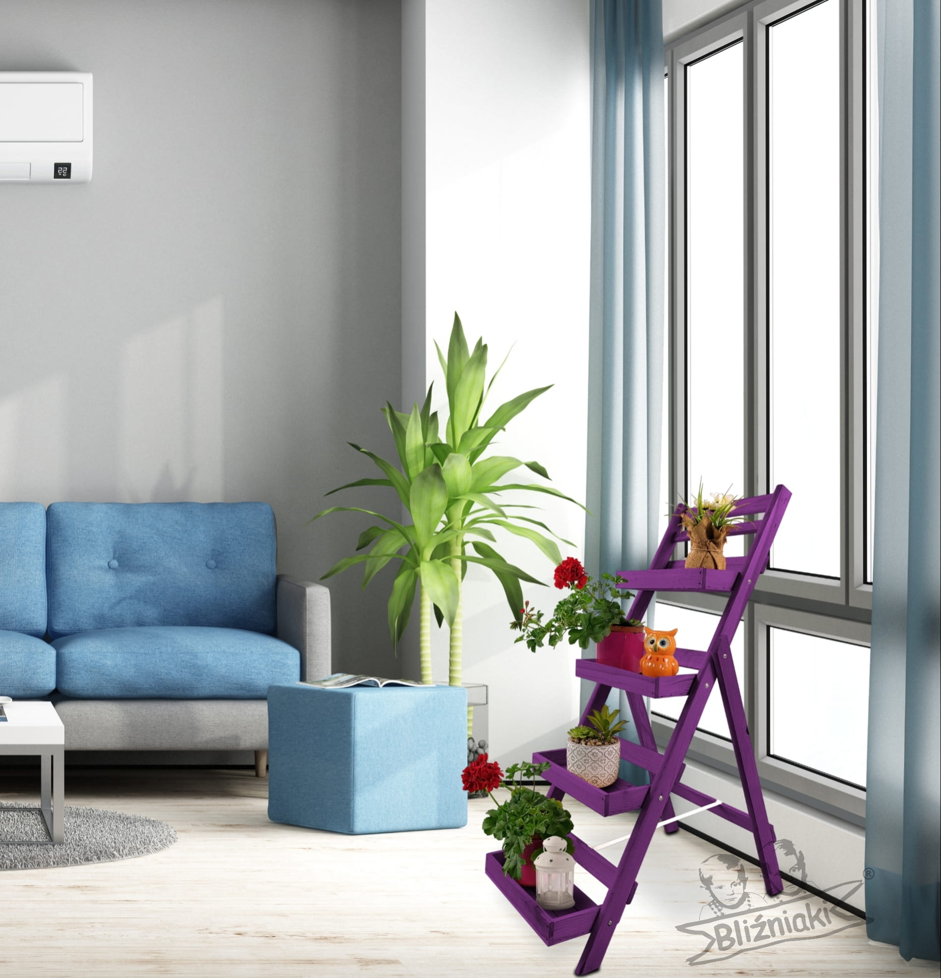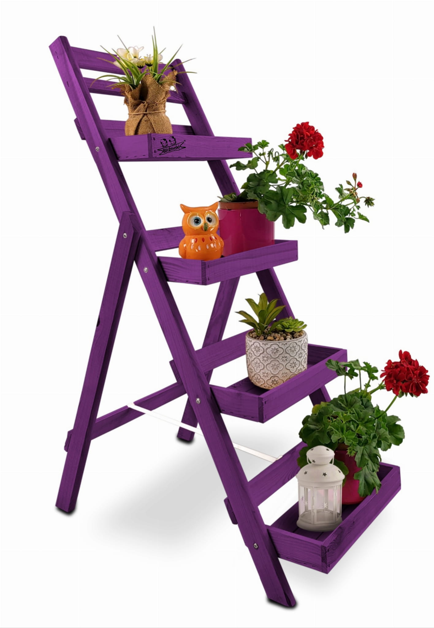 KWIETNIK REGAŁ CZTEROPOZIOMOWY FIOLETOWY IMREGNOWANY NA KWIATY W DONICZKACH DO DOMU OGRODU NA TARAS DKW22 FN