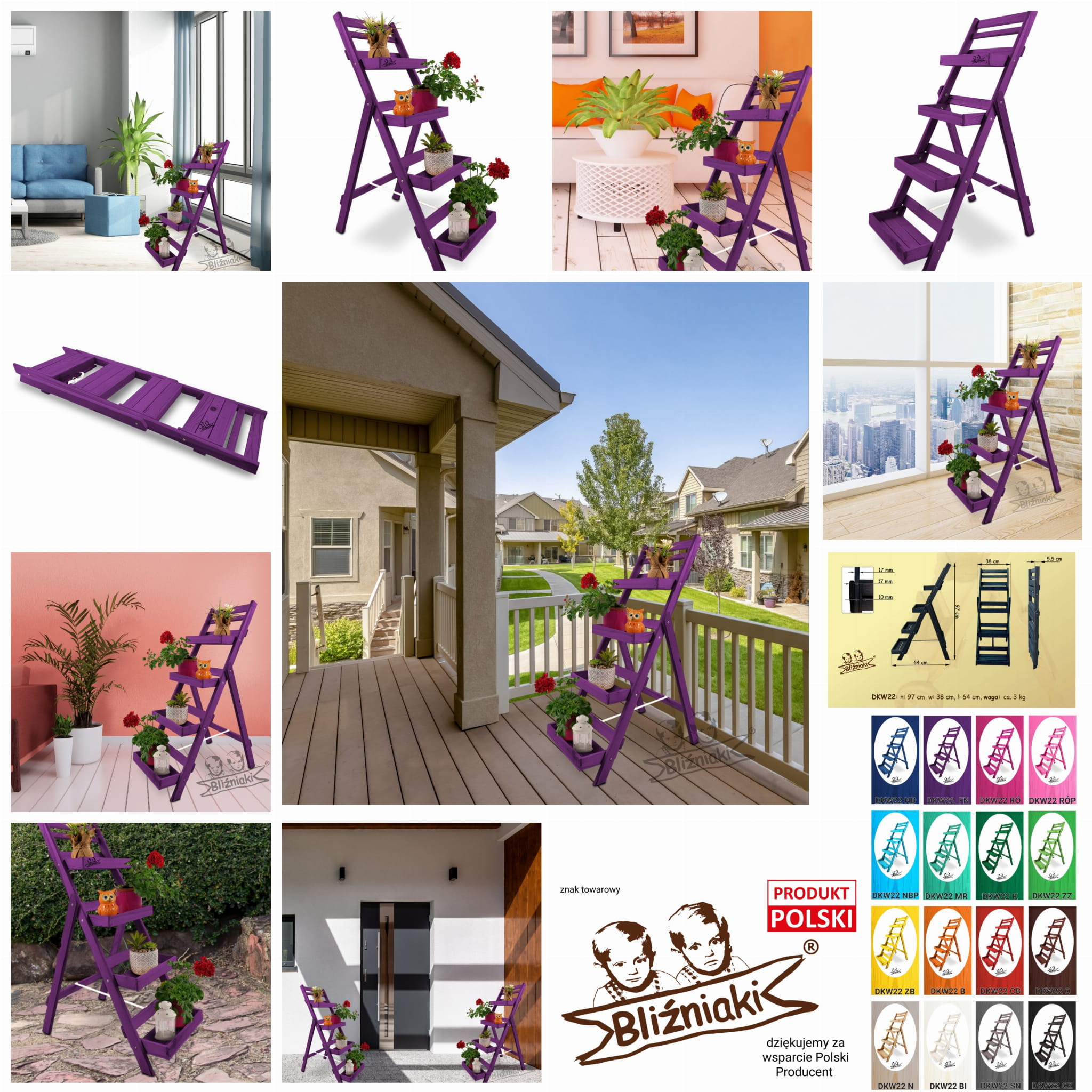 - Drabinka znajduje szerokie zastosowanie m.in: na tarasach, balkonach, we wnętrzach domów, czy jako wyposażenie sklepików oraz kwiaciarni