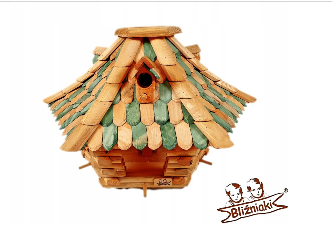 Karmnik Dachówka Drewniana Zielony Duży Domek Dla Ptaków 2w1 Budka Lęgowa (K22 B K )