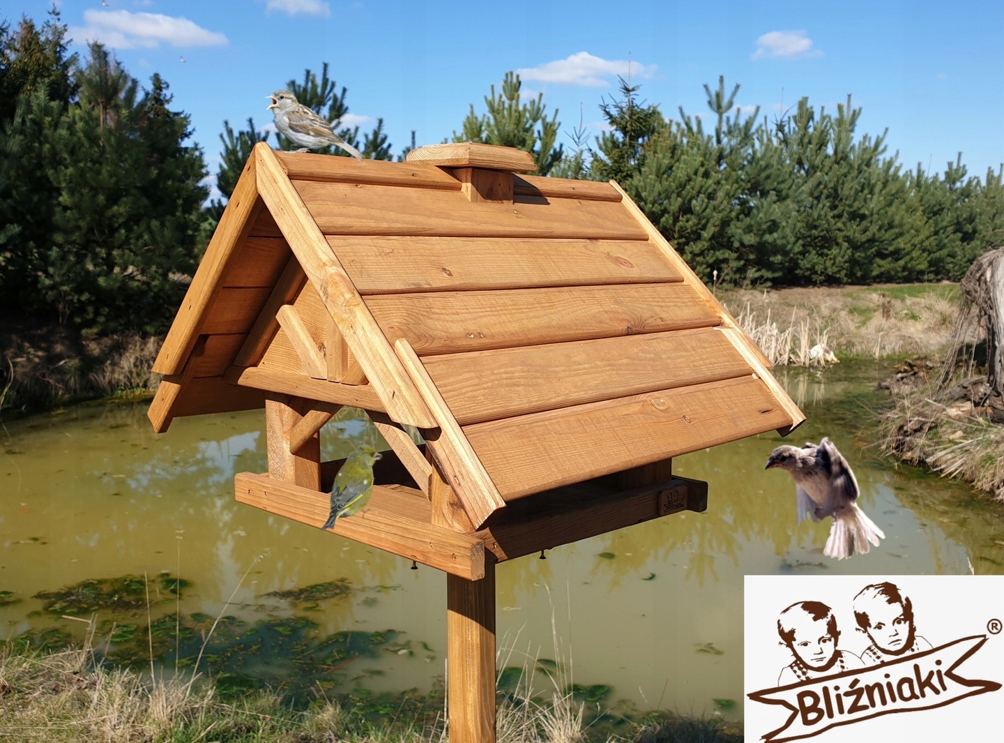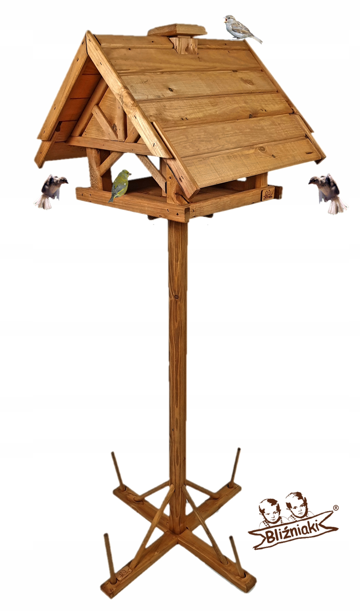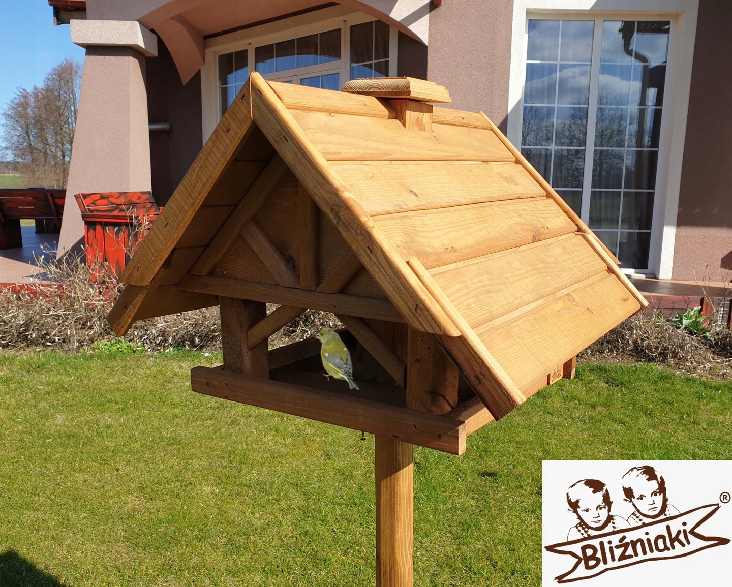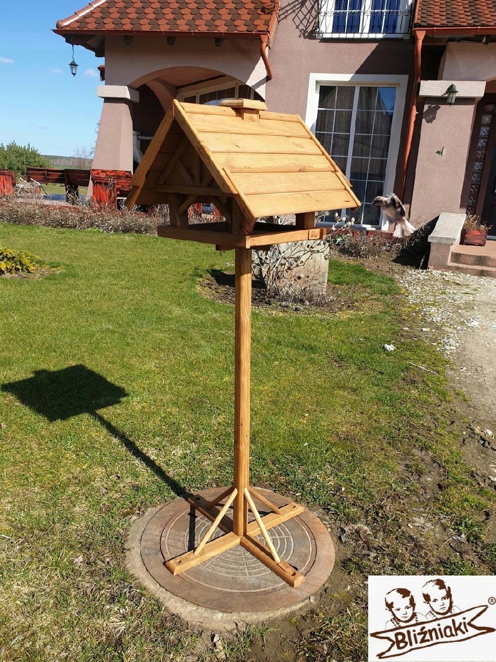 - KARMNIK JEST WYKONANY Z DREWNA, DACH POKRYTY NATURALNĄ DACHÓWKĄ WSZYSTKIE ELEMENTY SĄ WYKONANE BARDZO STARANNIE I Z WIELKĄ PRECYZJĄ, OTWIERANY KOMIN - SŁUŻĄCY DO ZASYPYWANIA POKARMEM CO SPRAWIA ZE WYSTARCZY RAZ W MIESIĄCU ZASYPAĆ ZIARNEM !
