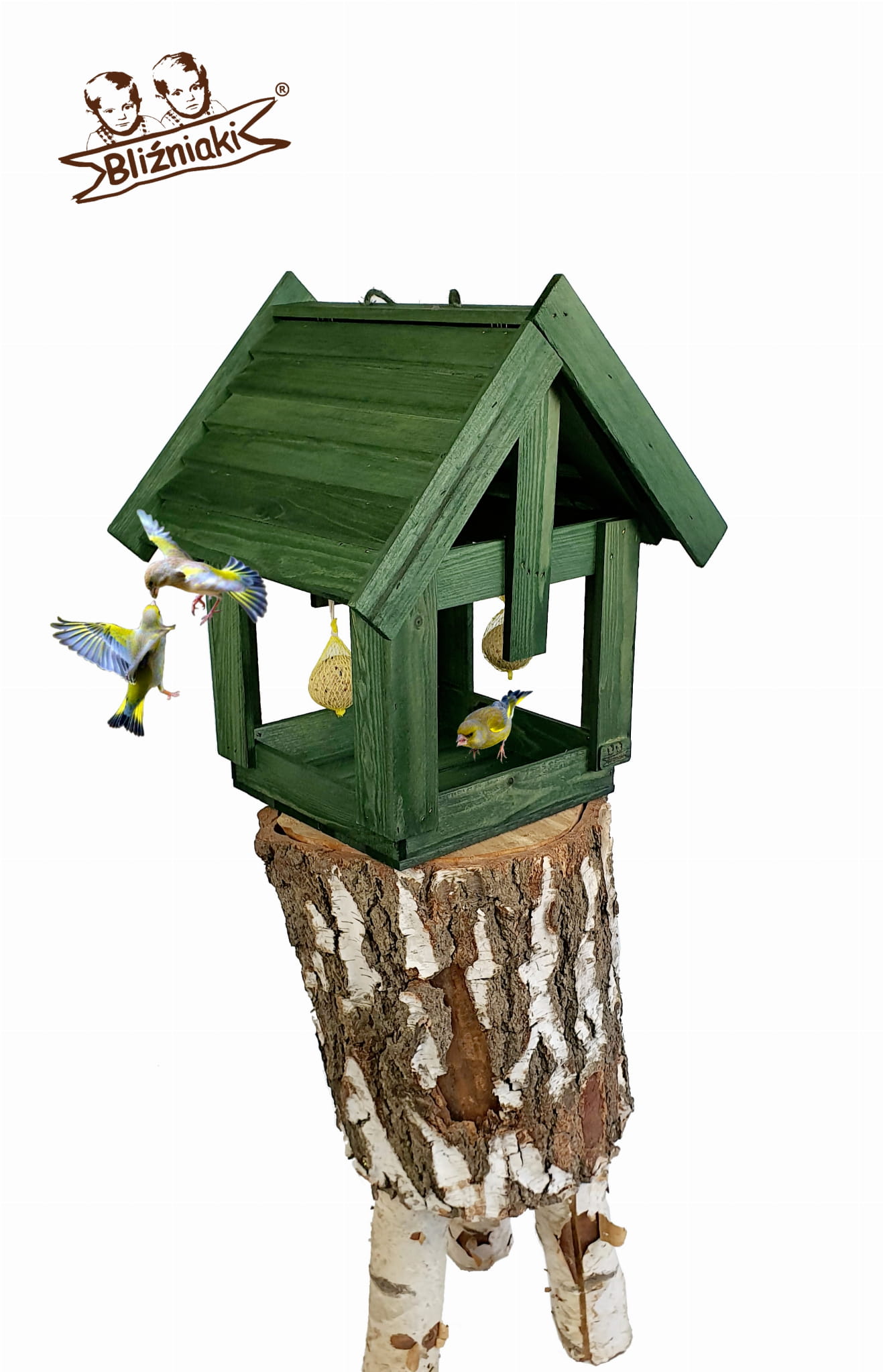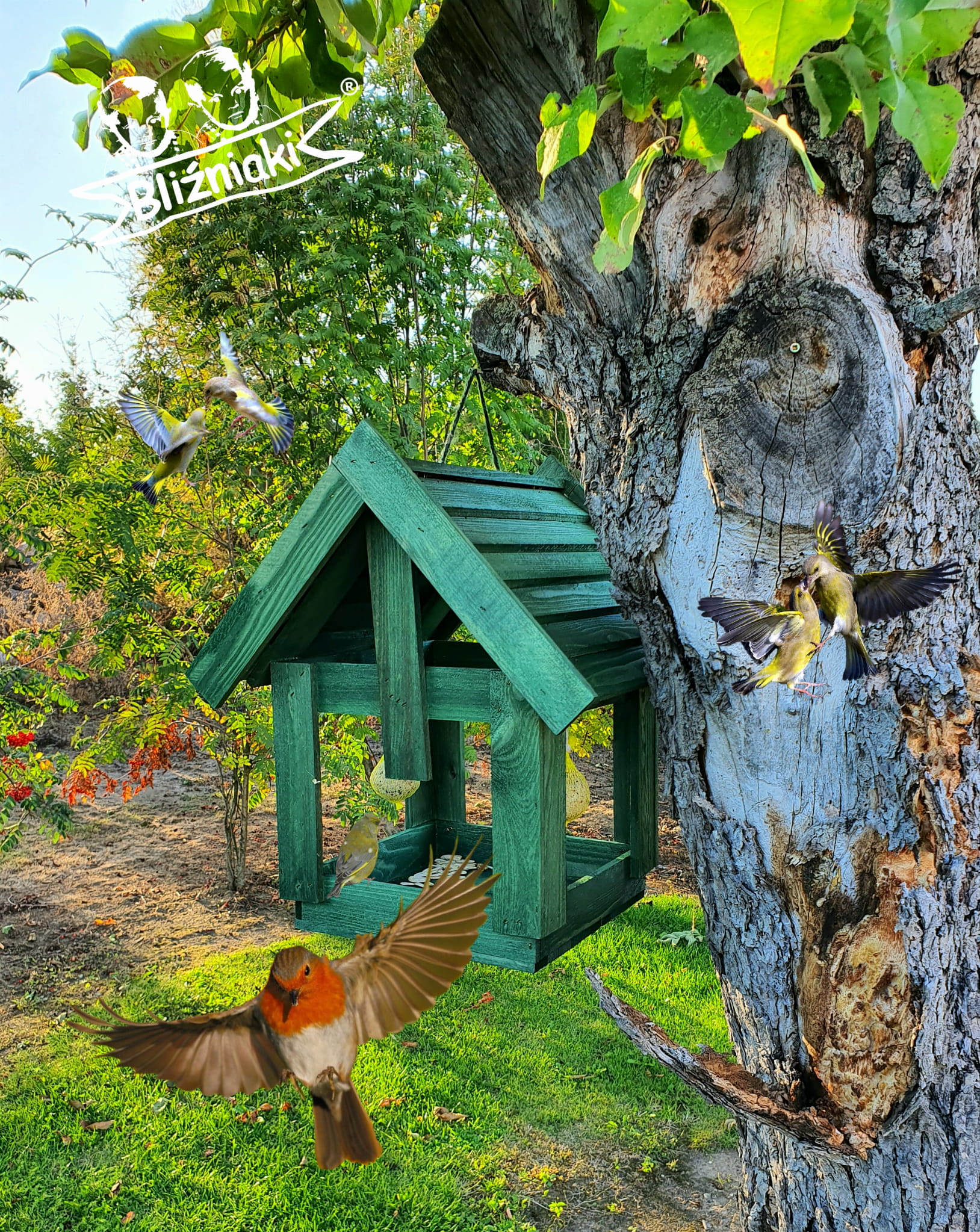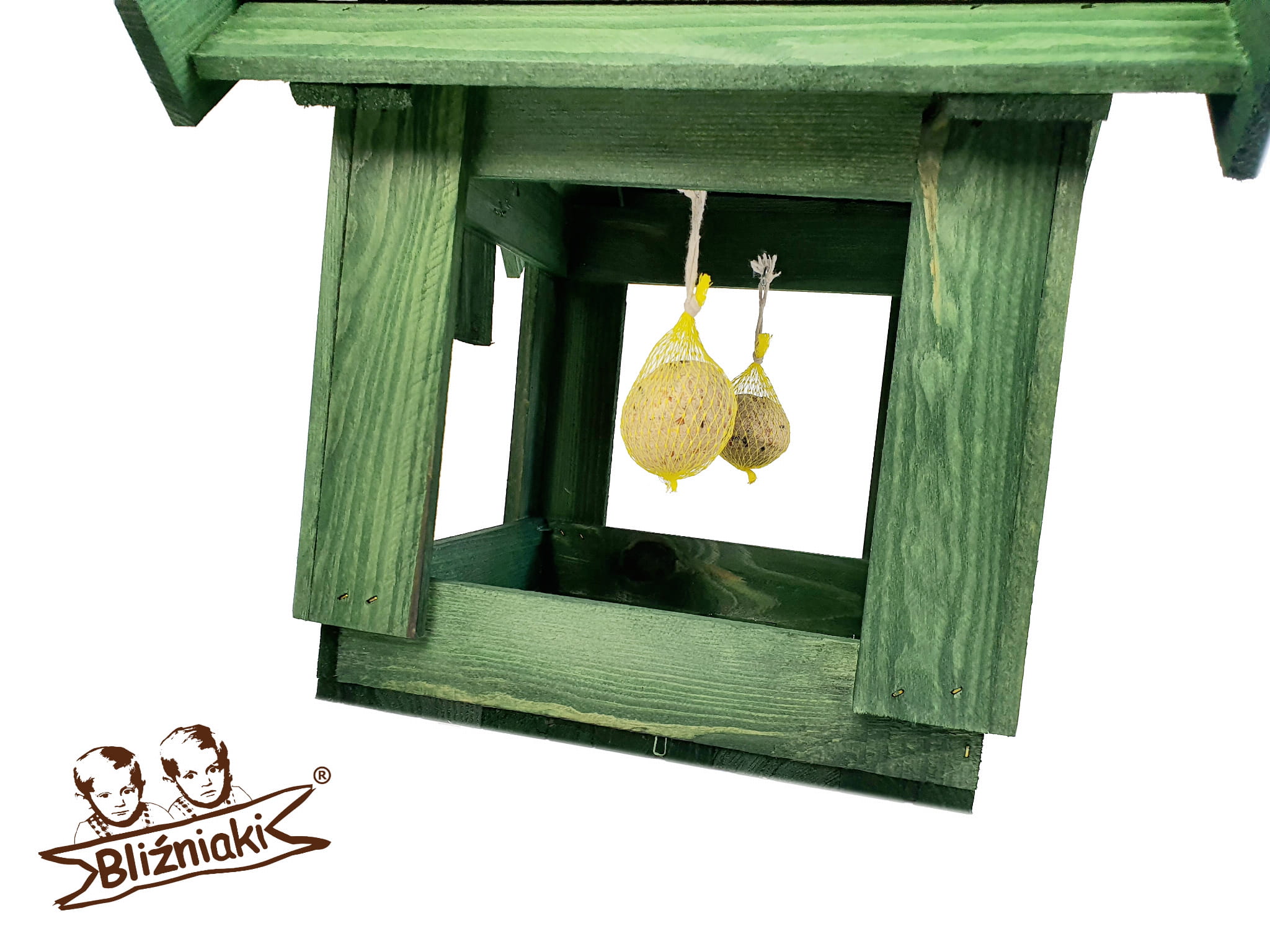 Karmnik w kolorze ZIELONYM jest zabezpieczony metodą impregnowania. Środek na bazie wody użyty do impregnacji jest w pełni ekologiczny i bezpieczny dla ludzi i zwierząt. Zabezpieczone w taki sposób drewno sprawia, że karmnik jest odporny na szkodliwe działanie wody oraz wilgoci, promieni UV, a także grzybów i pleśni, może być więc przechowywany przez cały rok na zewnątrz.
