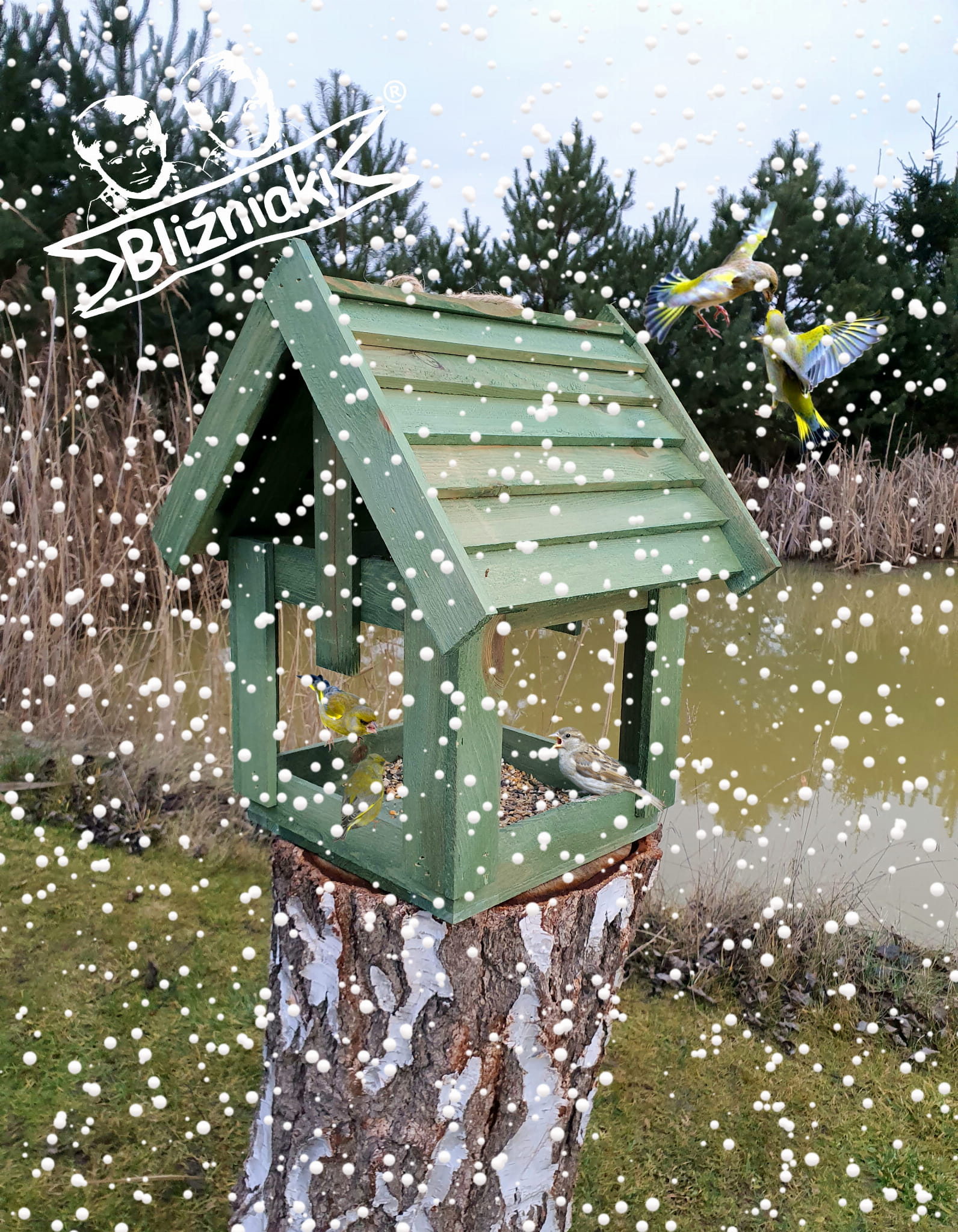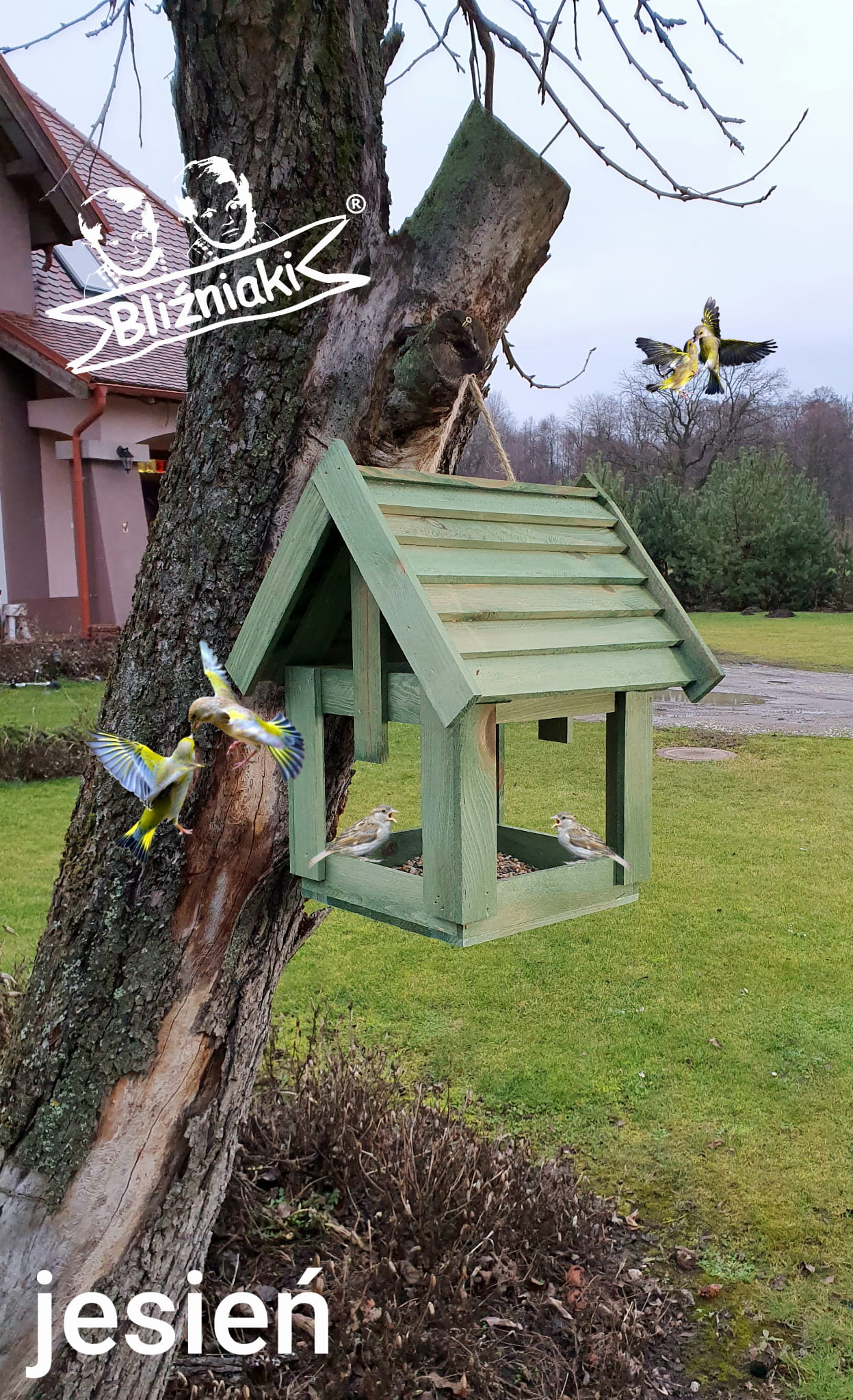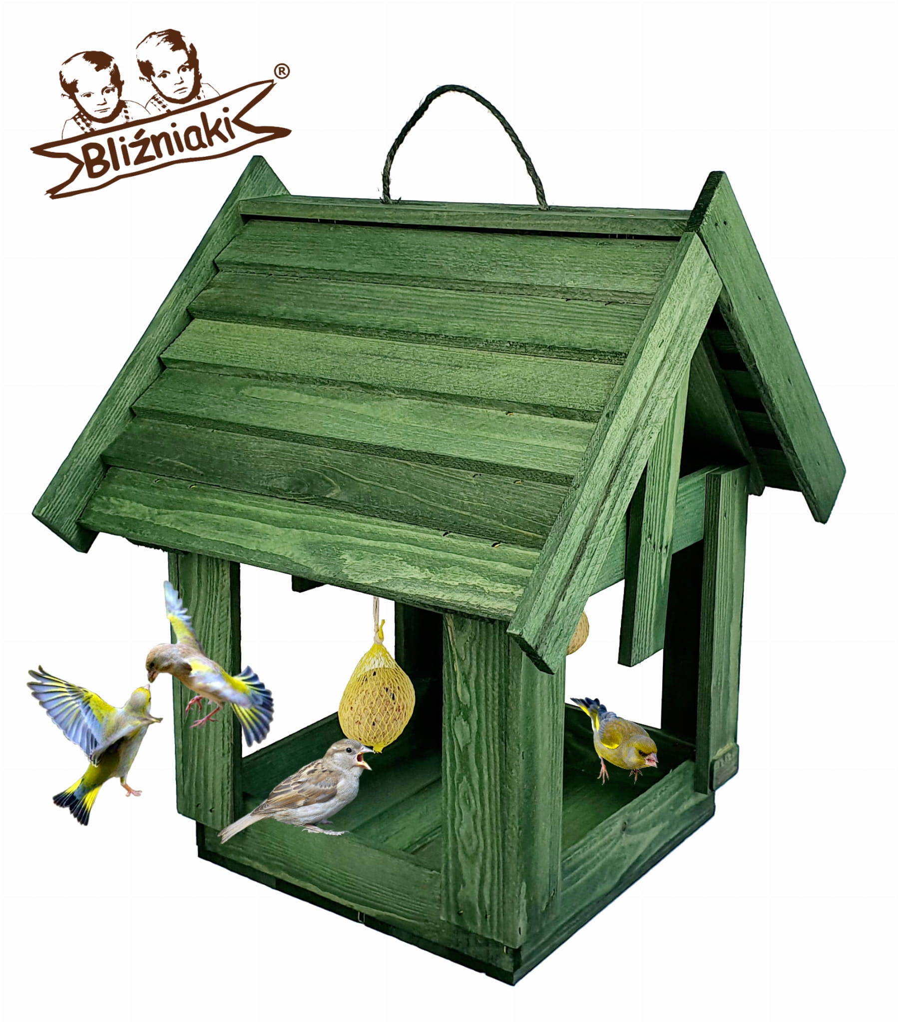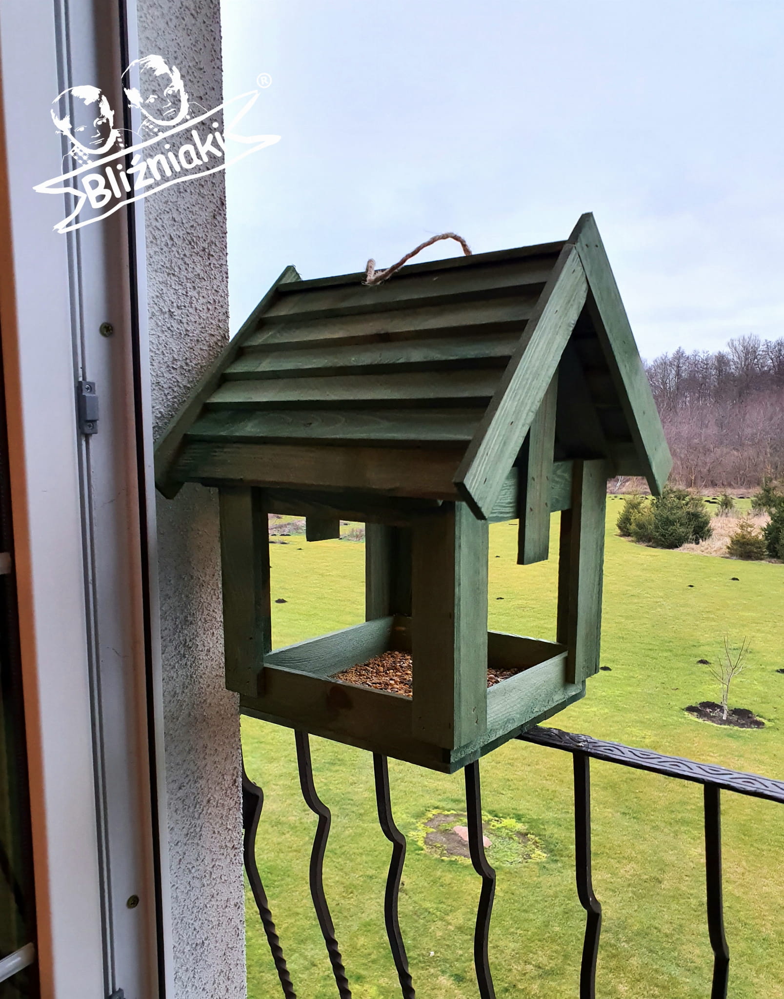 Karmnik w kolorze ZIELONYM jest zabezpieczony metodą impregnowania. Środek na bazie wody użyty do impregnacji jest w pełni ekologiczny i bezpieczny dla ludzi i zwierząt. Zabezpieczone w taki sposób drewno sprawia, że karmnik jest odporny na szkodliwe działanie wody oraz wilgoci, promieni UV, a także grzybów i pleśni, może być więc przechowywany przez cały rok na zewnątrz.