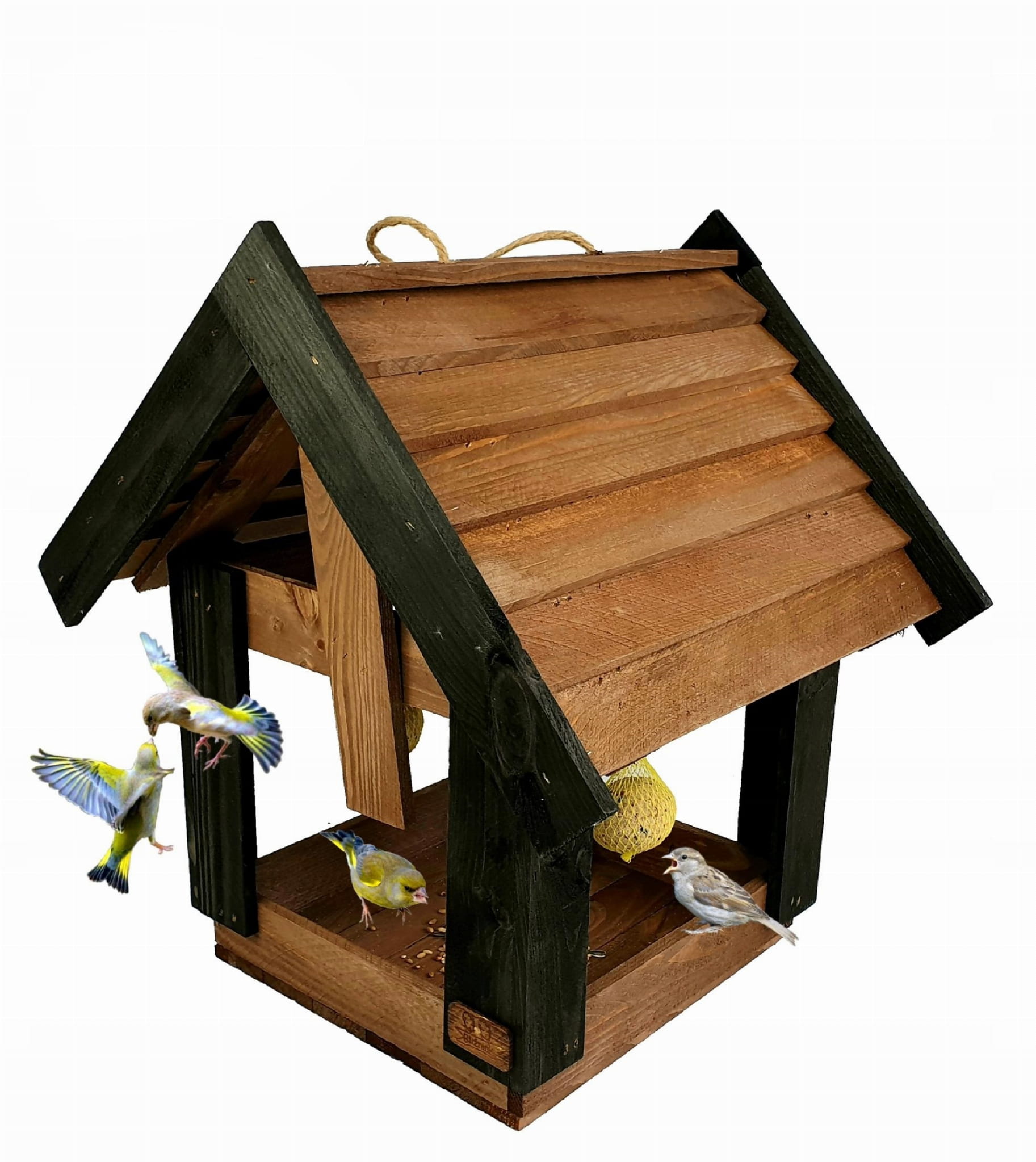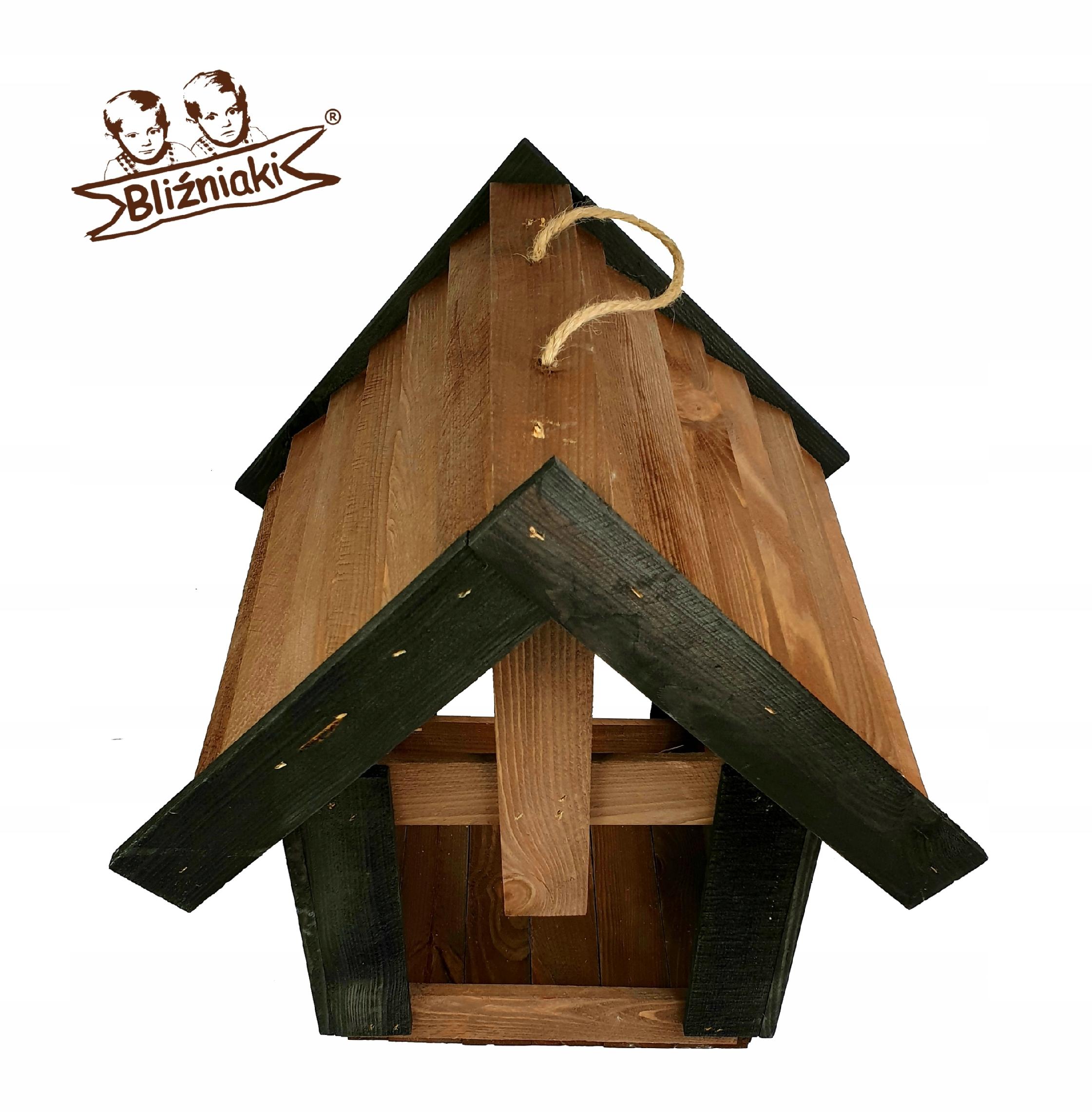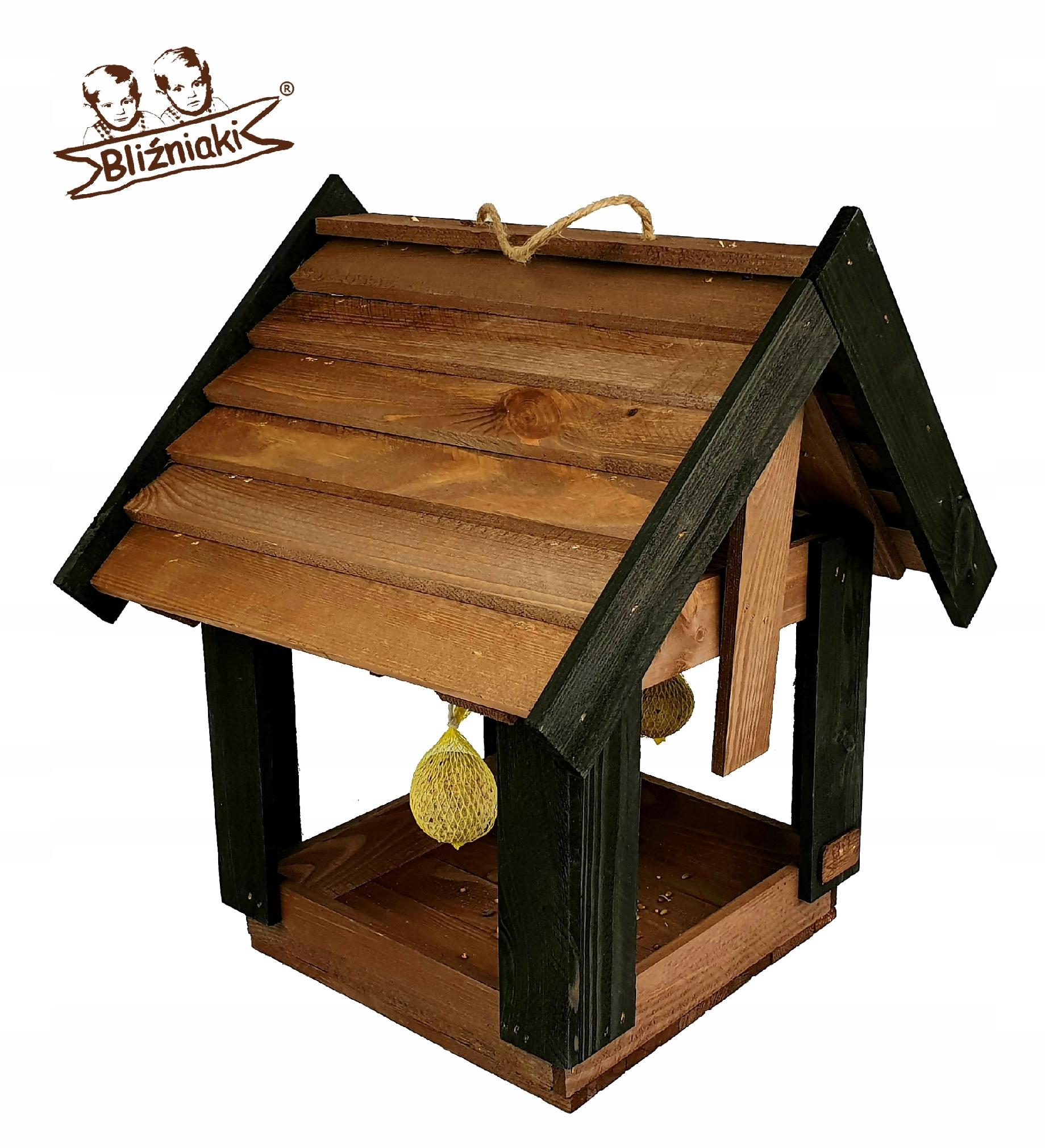 Karmnik Dla Ptaków Duży Wiszący Domek Drewniany Budka na Karmę dla Ptaków Ptasia Stołówka Wisząca (K200 O CZ)
