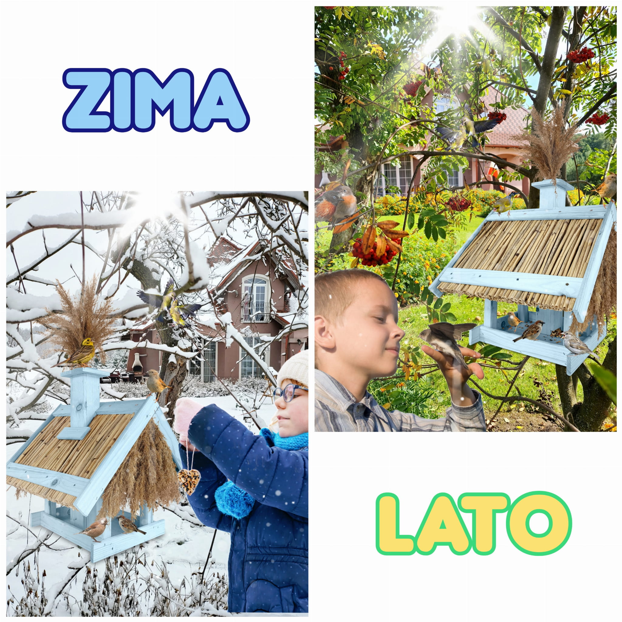 Nasz karmnik idealnie nadaje się do przydomowego ogrodu, na działkę, balkon lub okienny parapet, gdzie stanie się ptasią stołówką pozwalającą na swobodne pobieranie karmy przez cały rok.