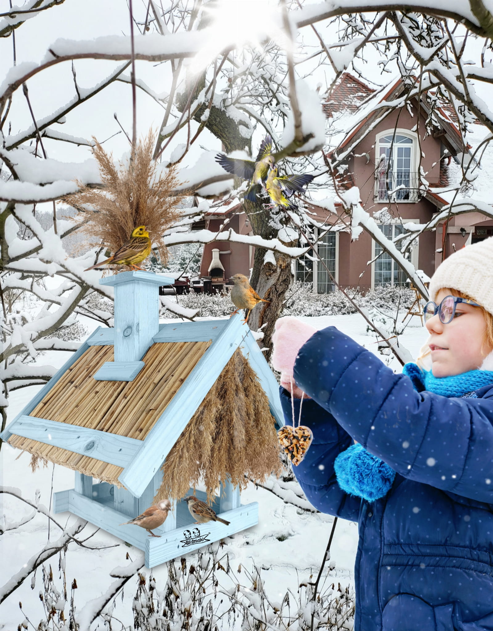 Zachwyć swoje dzieci i rodzinę, wybierając ten karmnik jako radosną i przyjazną dekorację. Zapewnij ptakom bezpieczne miejsce do pobierania pokarmu nawet podczas niesprzyjającej pogody.