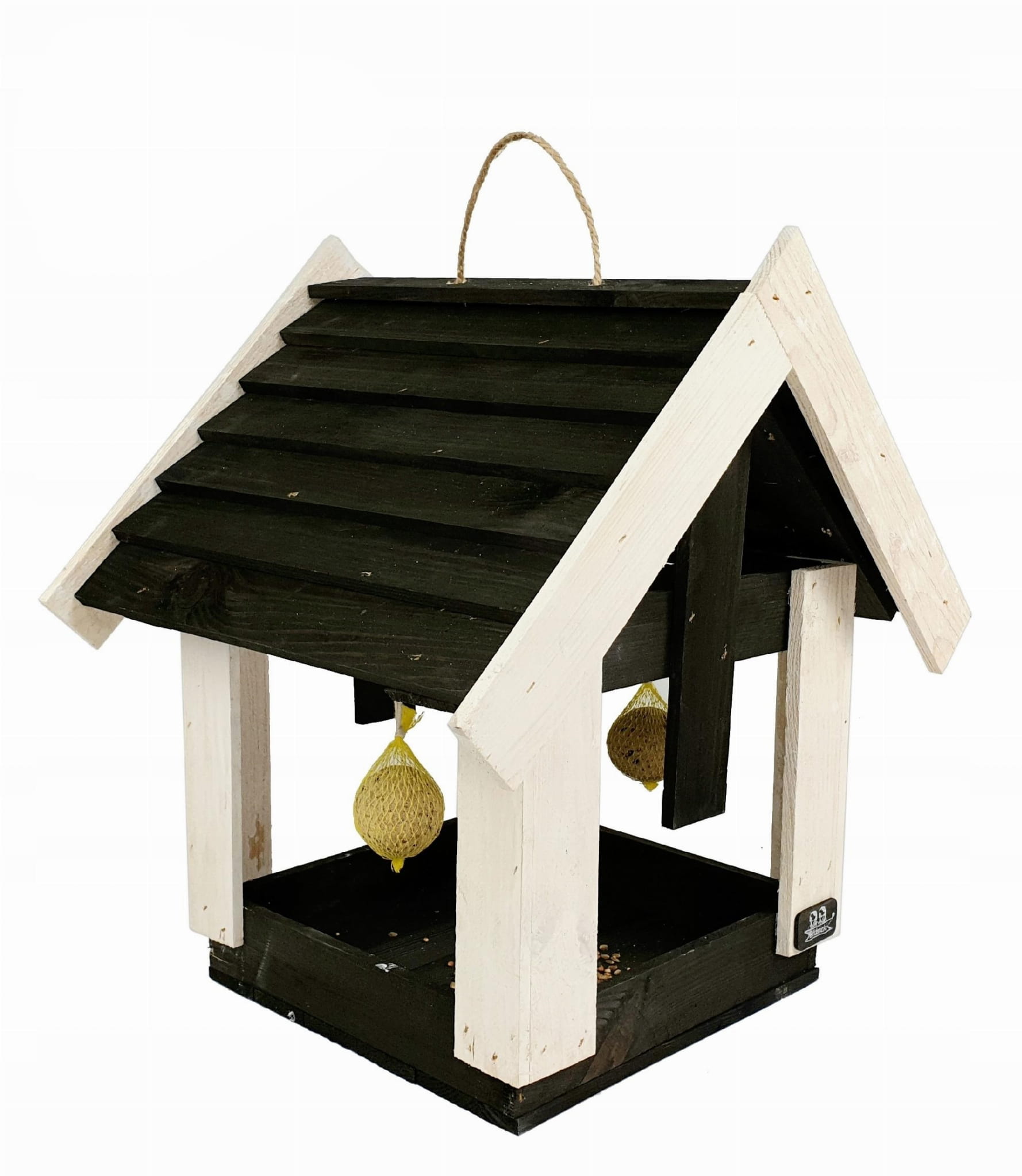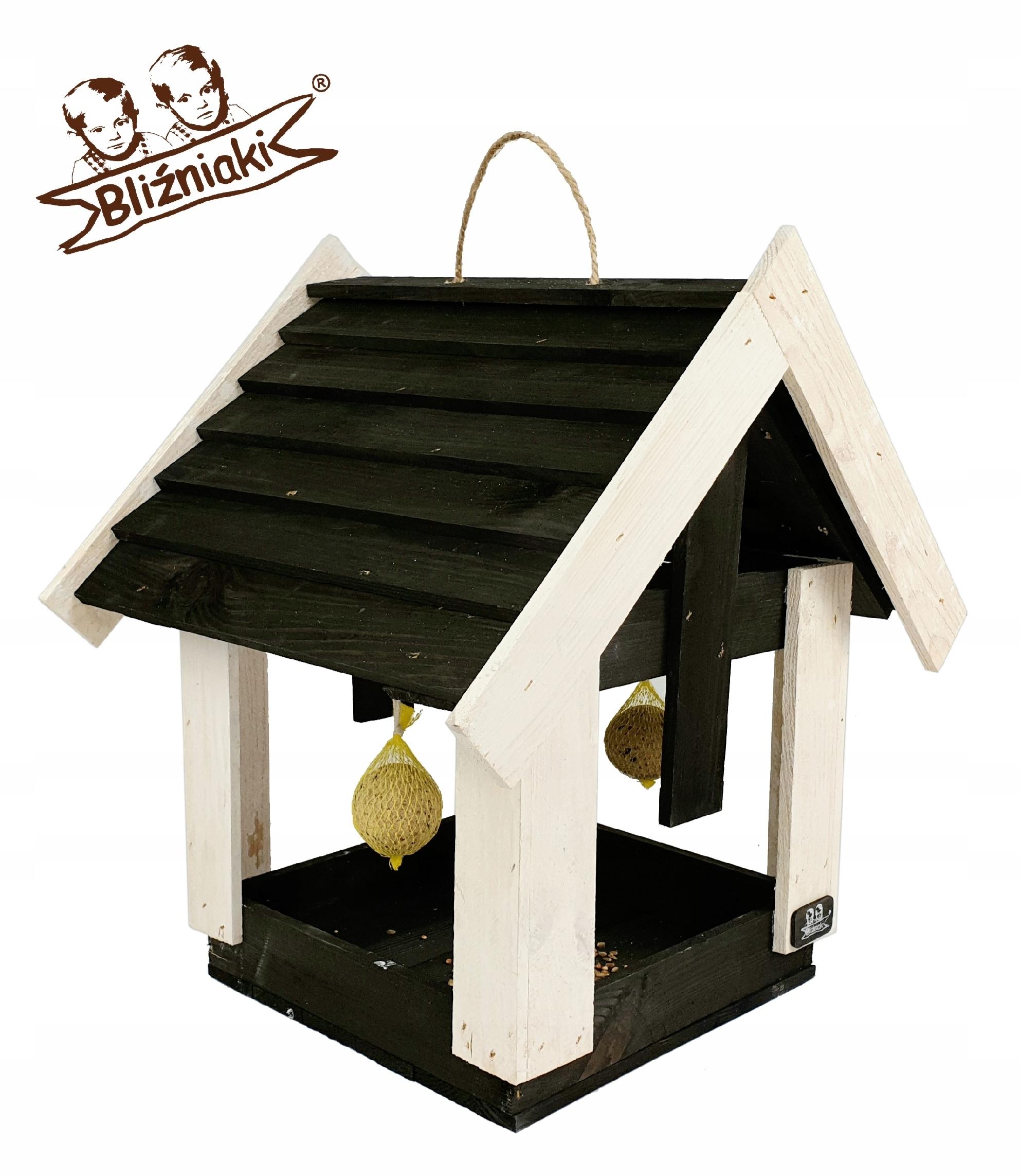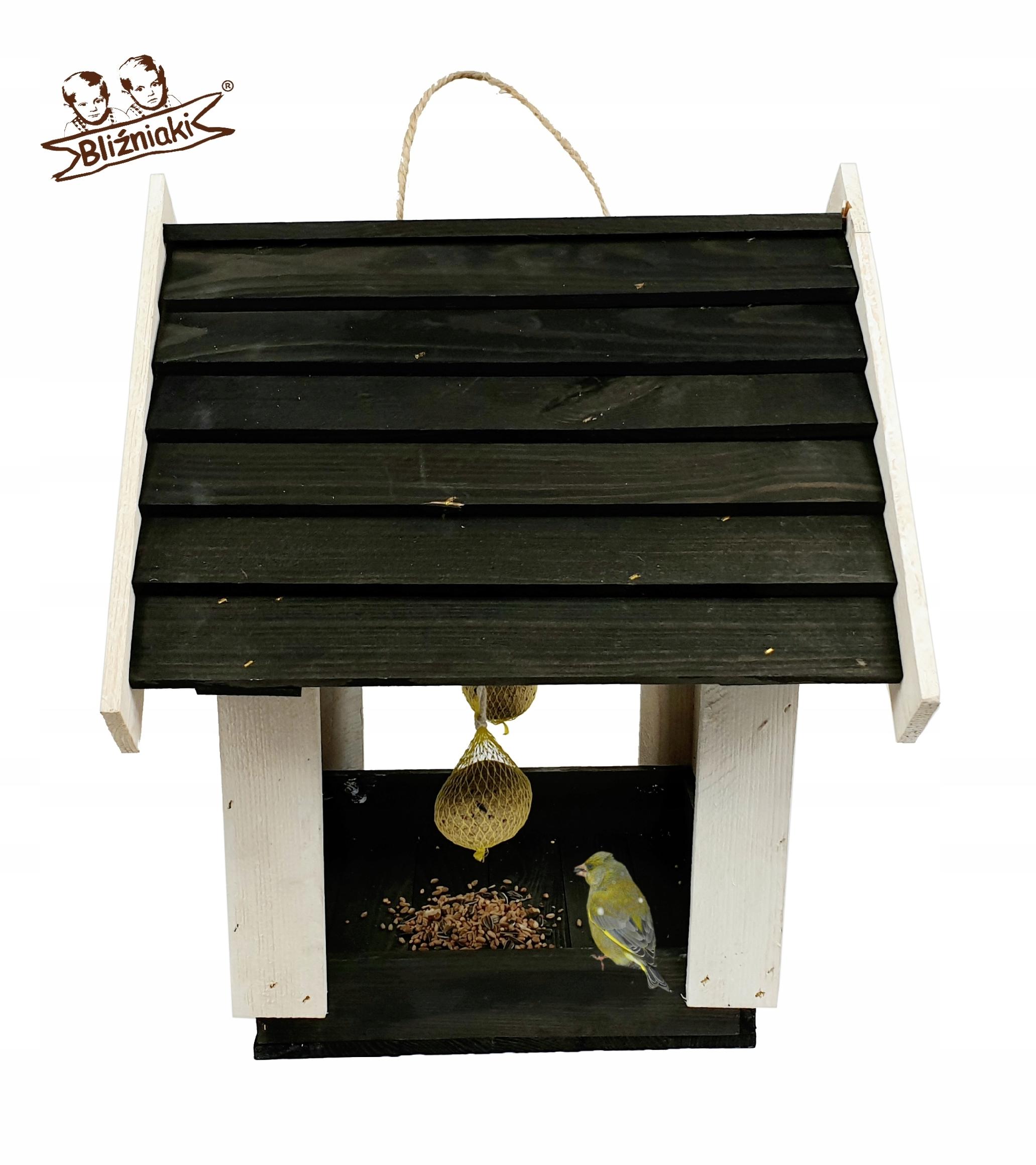 Karmnik Dla Ptaków Karmidło Ptasia Stołówka Drewniana Budka Dwukolorowa do Zawieszenia w Ogrodzie Parku na Działce (K200 CZ BI )
