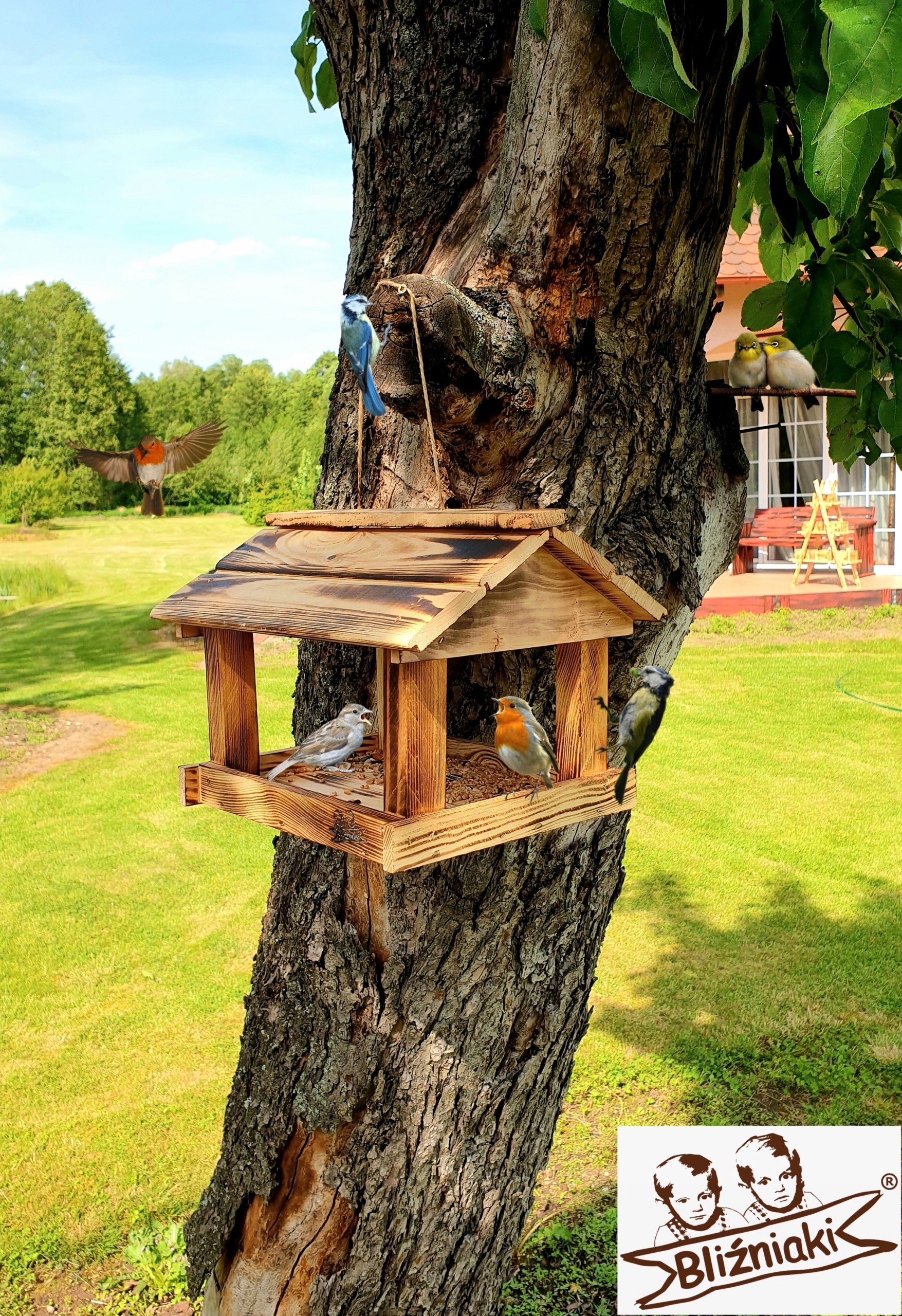 KARMNIK Z HACZYKIEM NA KARMĘ ZAWIESZANA BUDKA DLA PTAKÓW