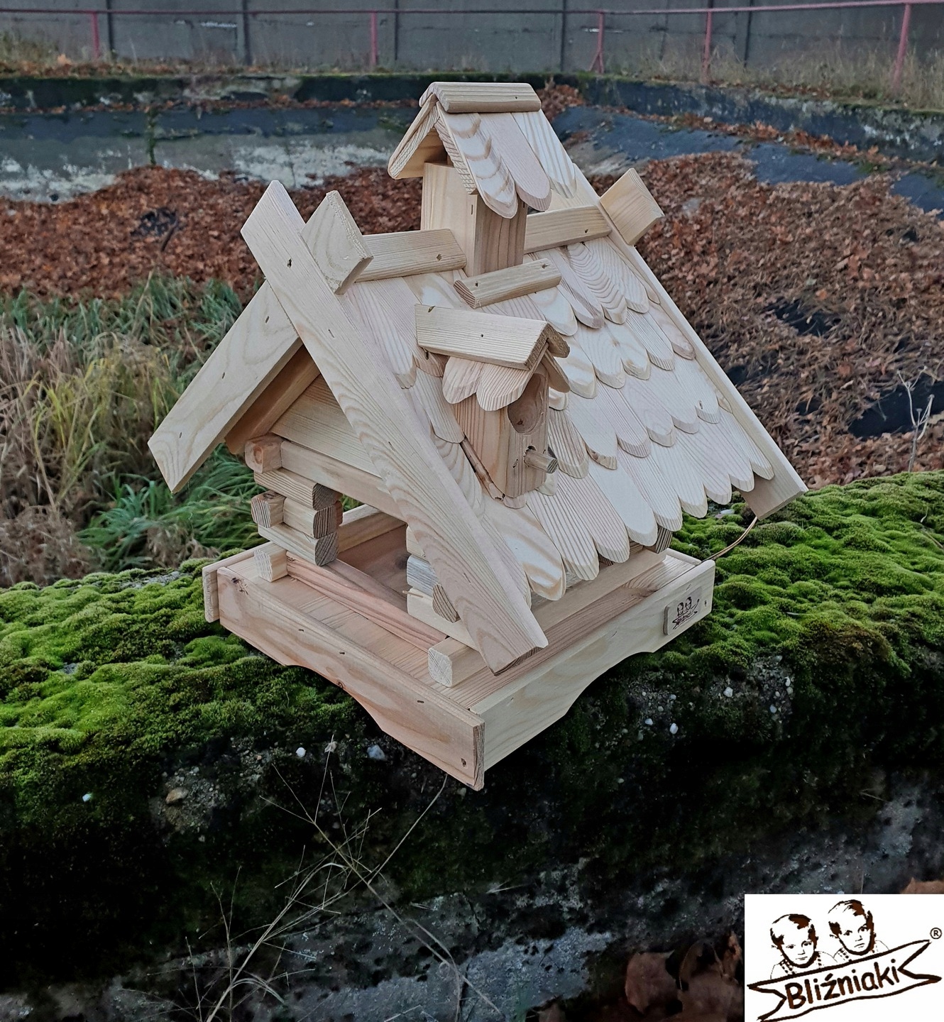 Wykonany z wysokiej jakości drewna, karmnik zachwyca estetyką oraz gwarantuje trwałość przez wiele sezonów zimowych. Ze wględu na swe wymiary idealnie nadaje się do ogrodu, na balkon lub okienny parapet.