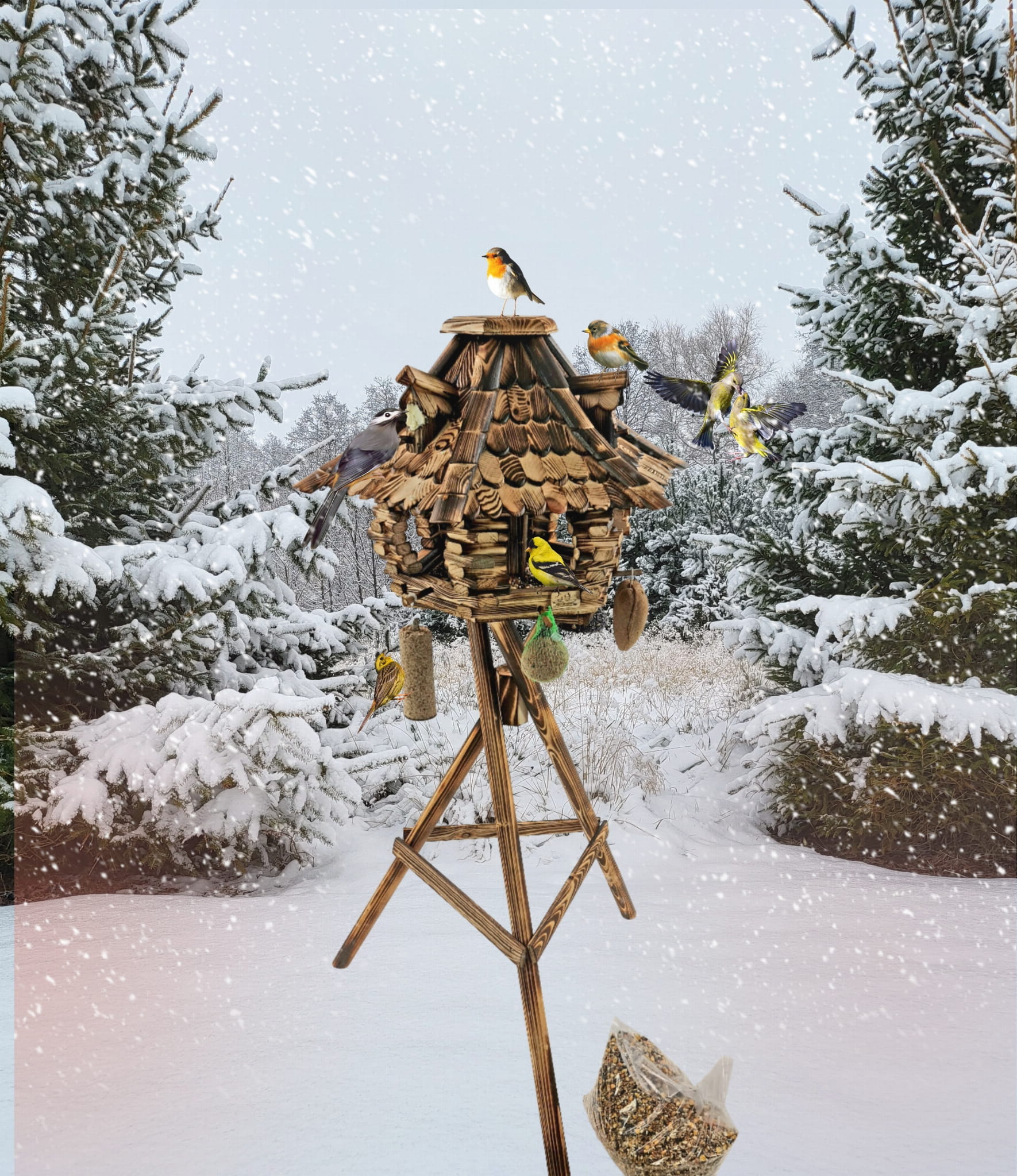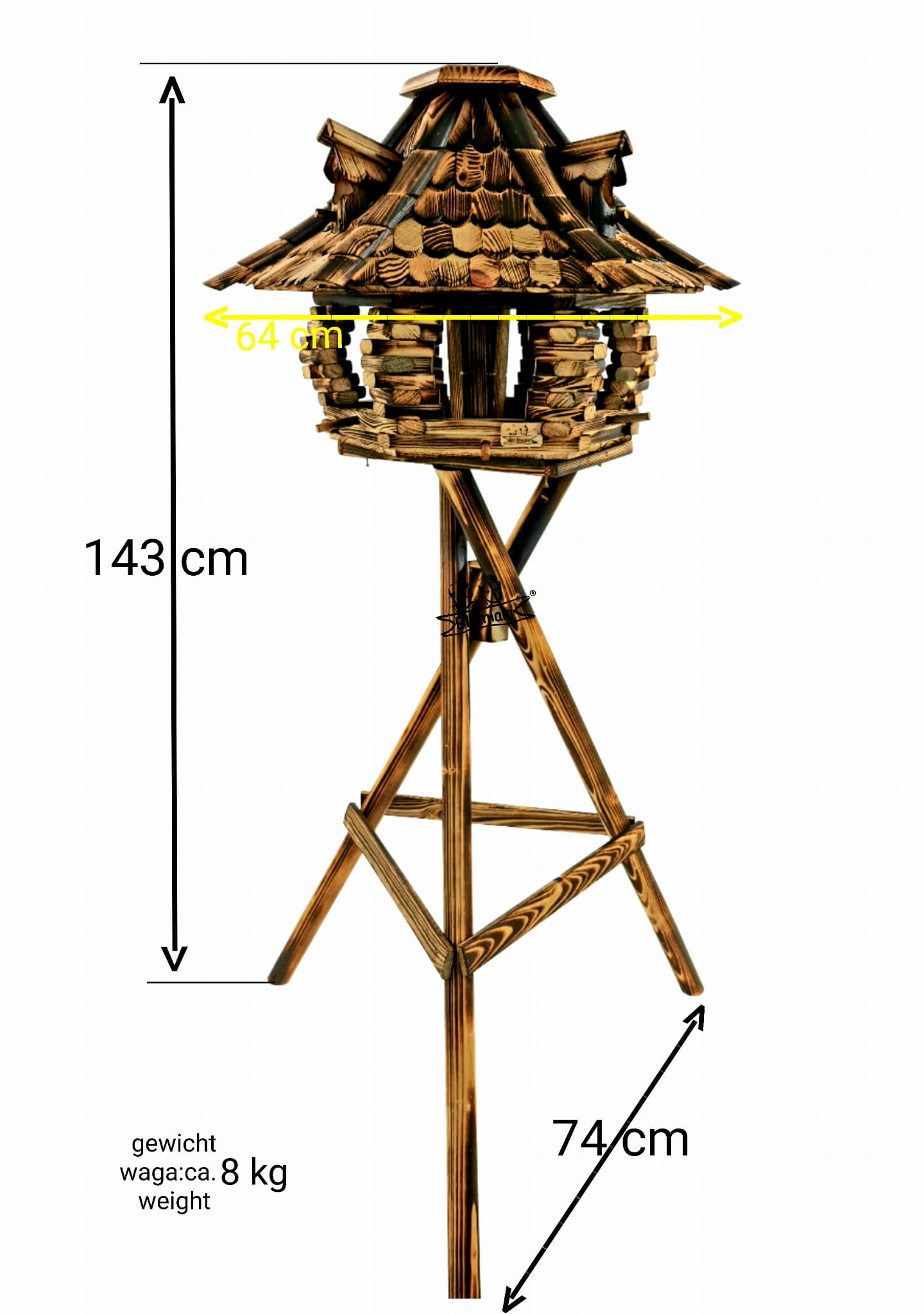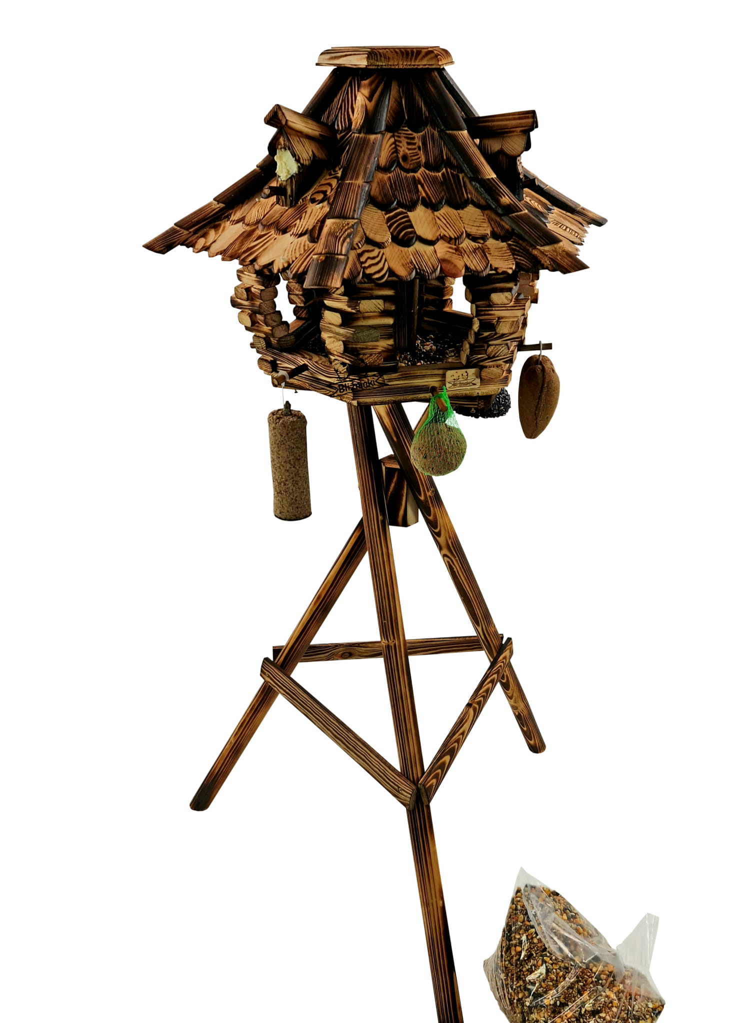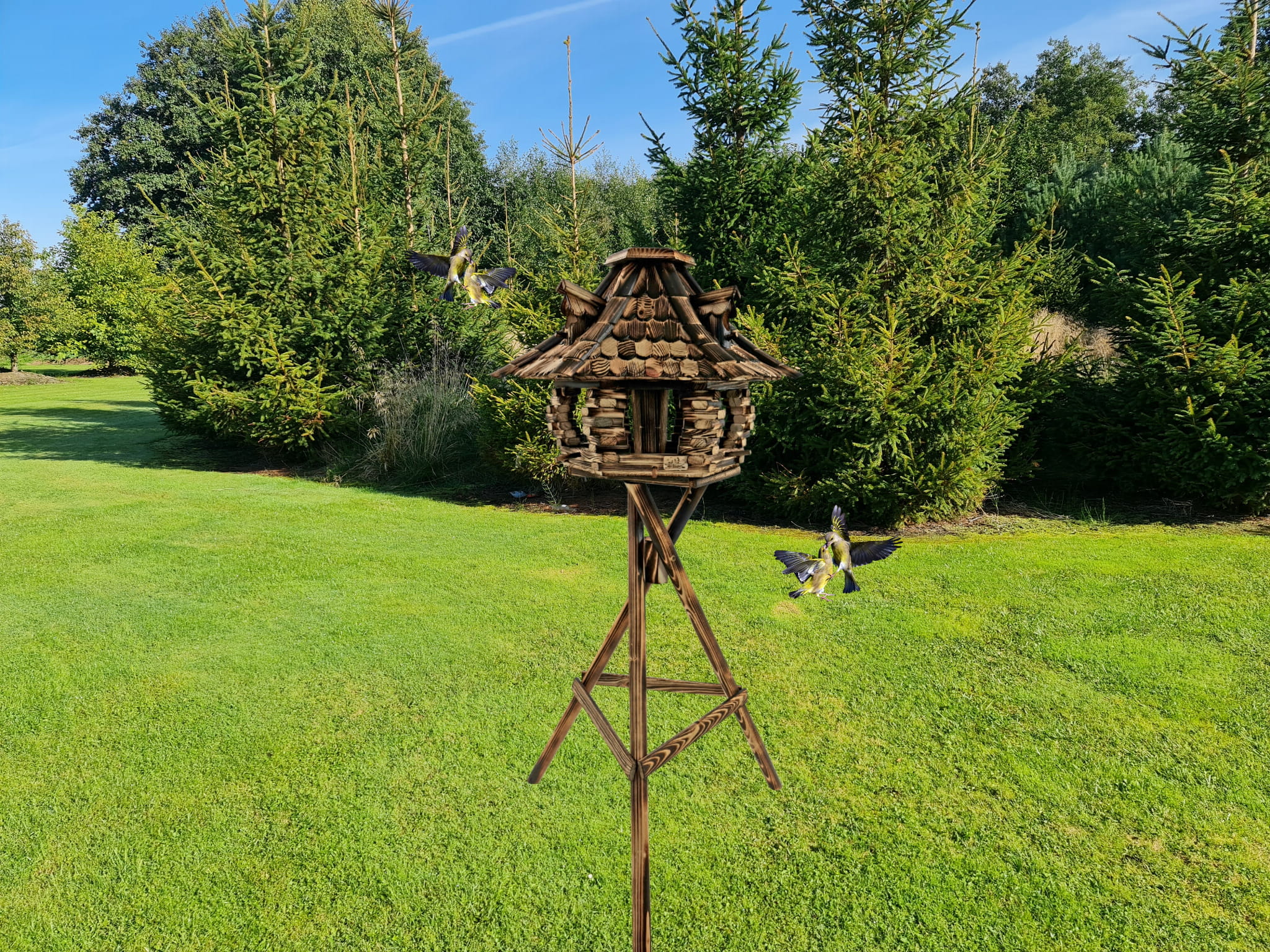 Przedmiotem oferty jest KARMNIK DLA PTAKÓW BUDKA LĘGOWA DREWNIANY DOMEK NA STOJAKU