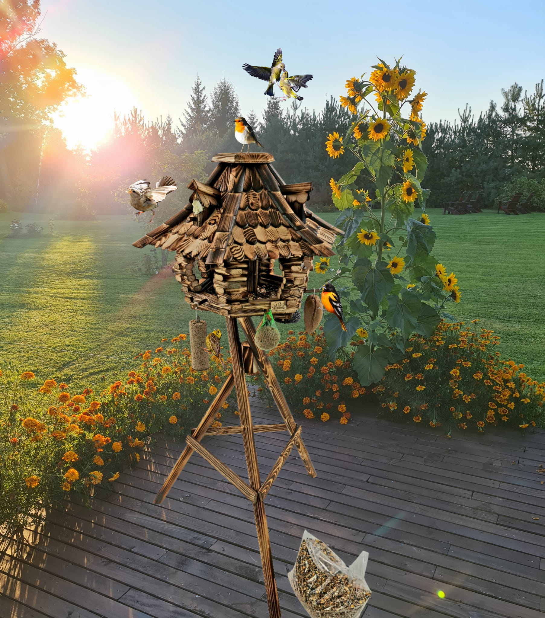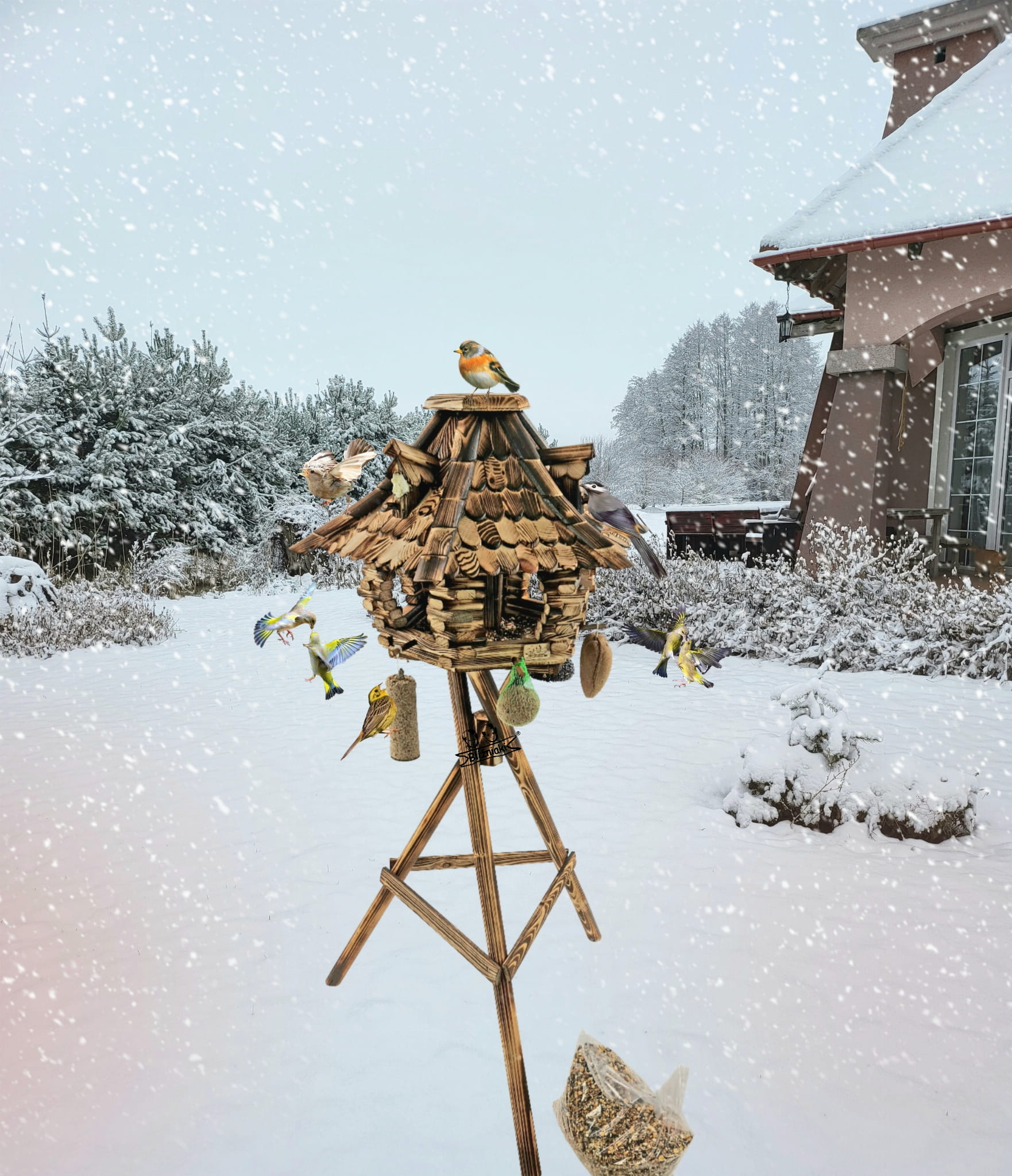 Jeśli chcesz cieszyć się urokiem ptasiego świata i sprawić, by Twój ogród stał się miejscem, gdzie natura i człowiek współistnieją w pełnej symbiozie, proponujemy wyjątkowy drewniany karmnik, który nie tylko ułatwi przetrwanie, ale również zapewni radość obserwacji różnorodnych gatunków ptaków.