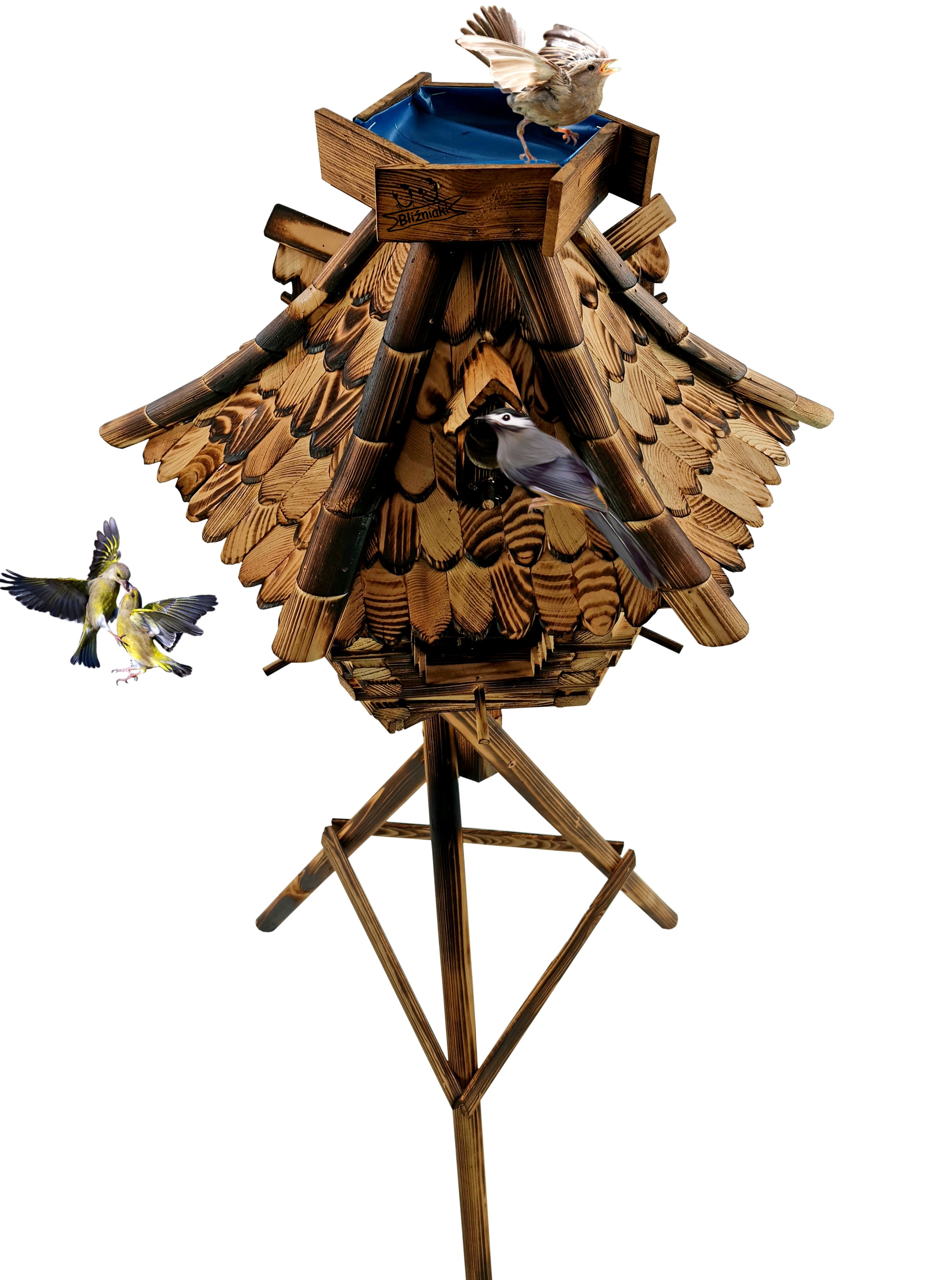 - Jest to nie tylko karmnik dla ptaków, ale również budka lęgowa.