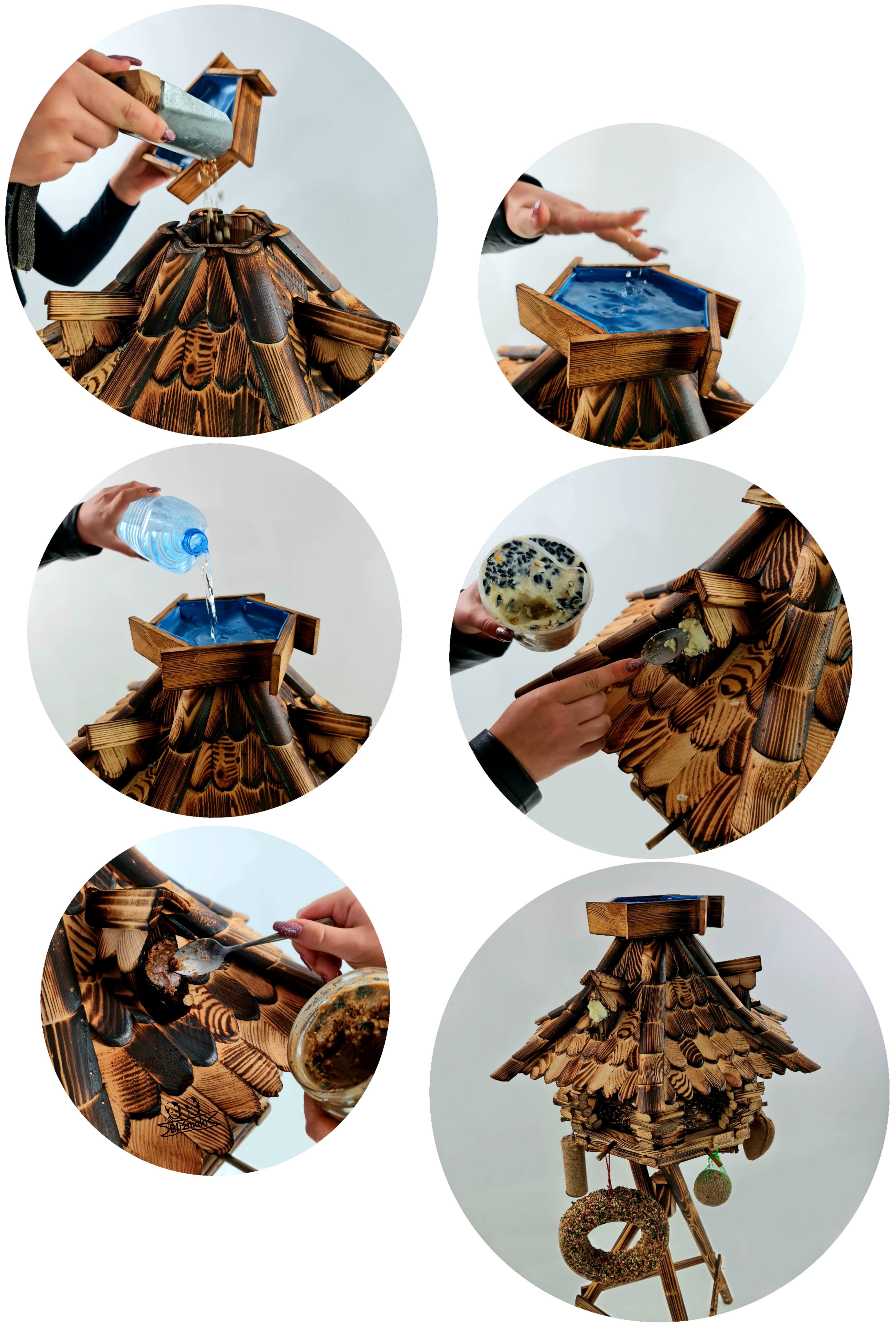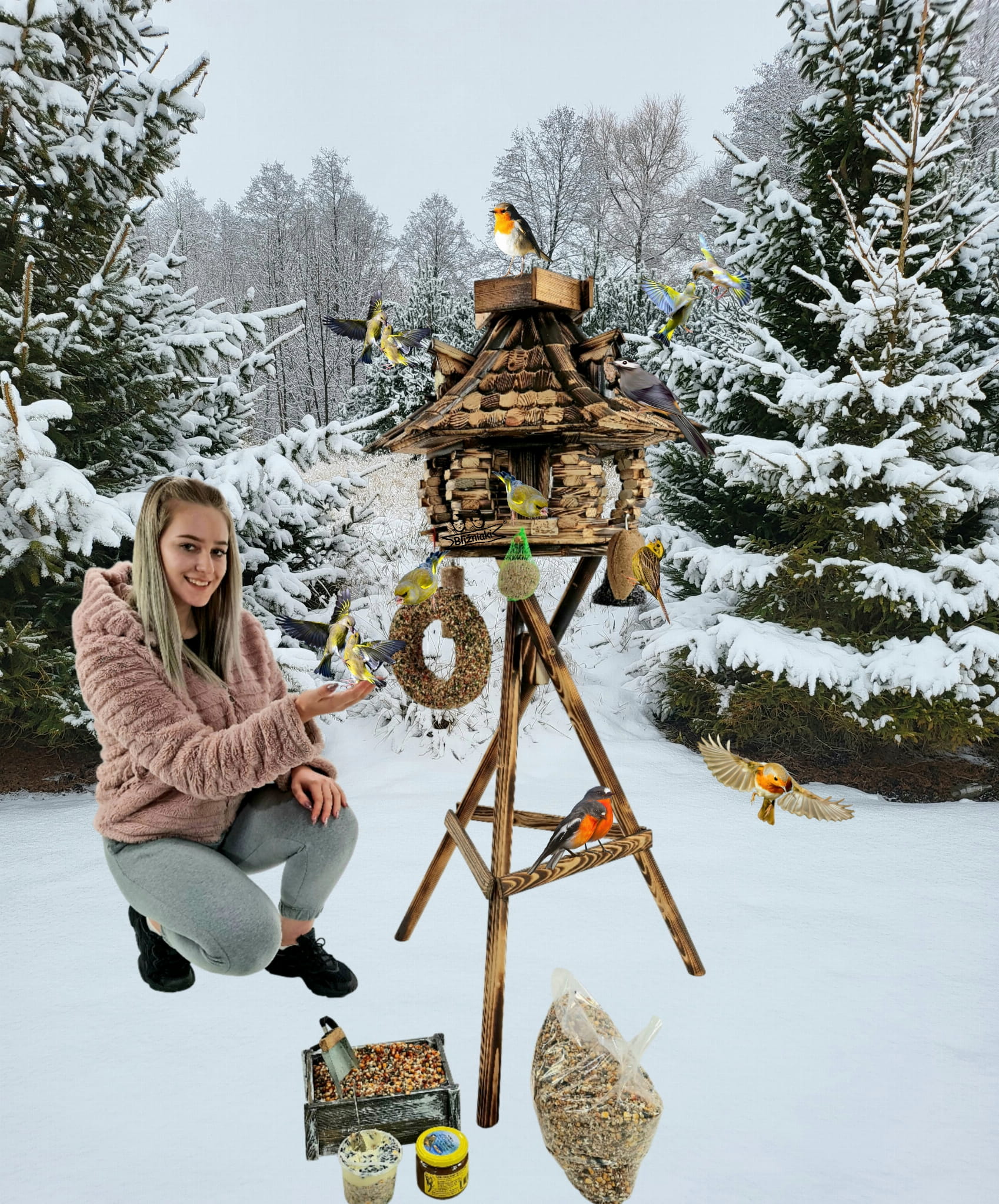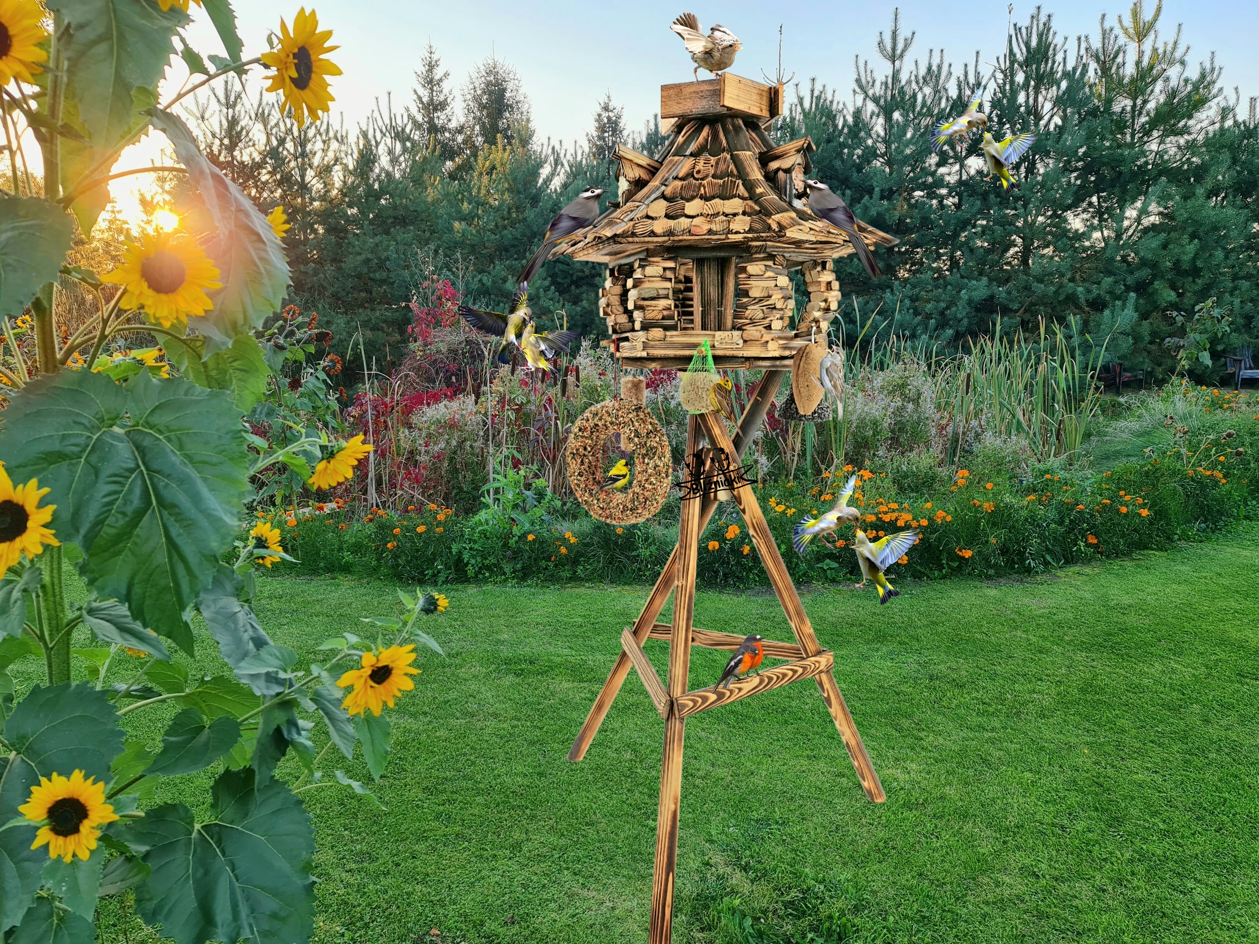 - Jest to nie tylko karmnik, ale również budka lęgowa dla ptaków.