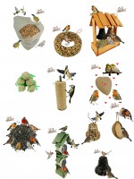 Zestaw składa się z dwóch elementów, które można łatwo łączyć ze sobą oraz rozmontowywać. Istnieje możliwość zawieszenia karmnika dzięki wbudowanemu w jego dach sznurkowi.