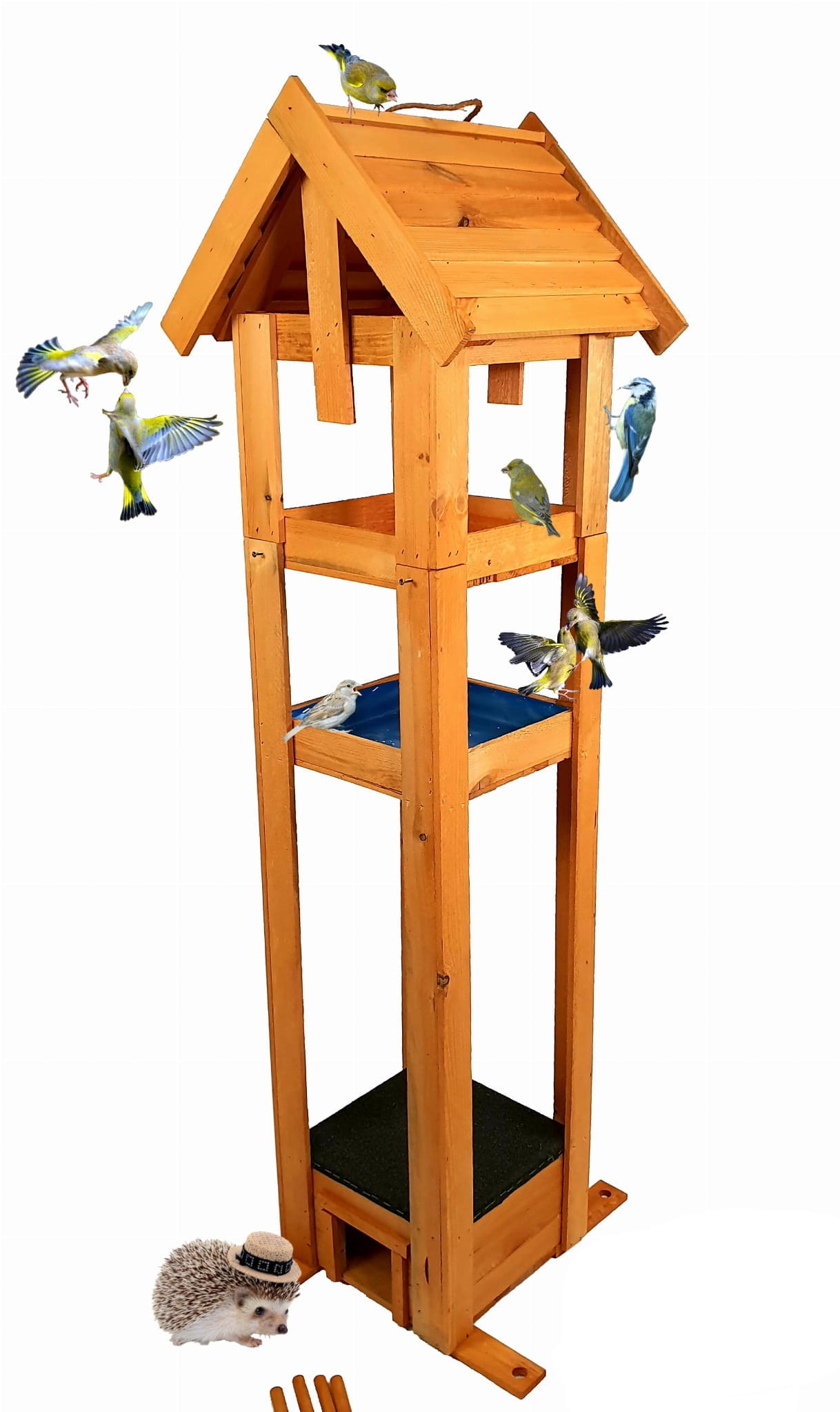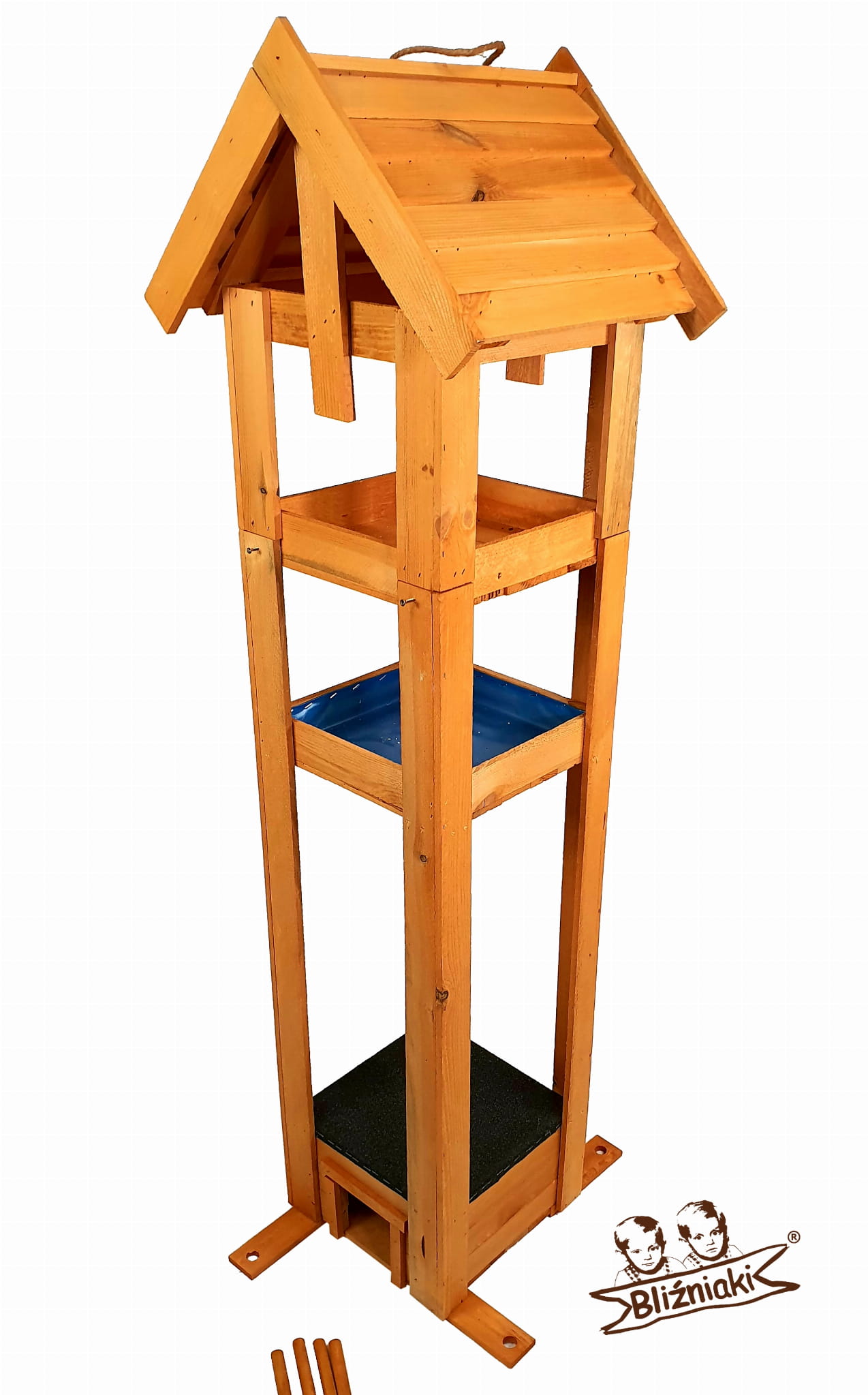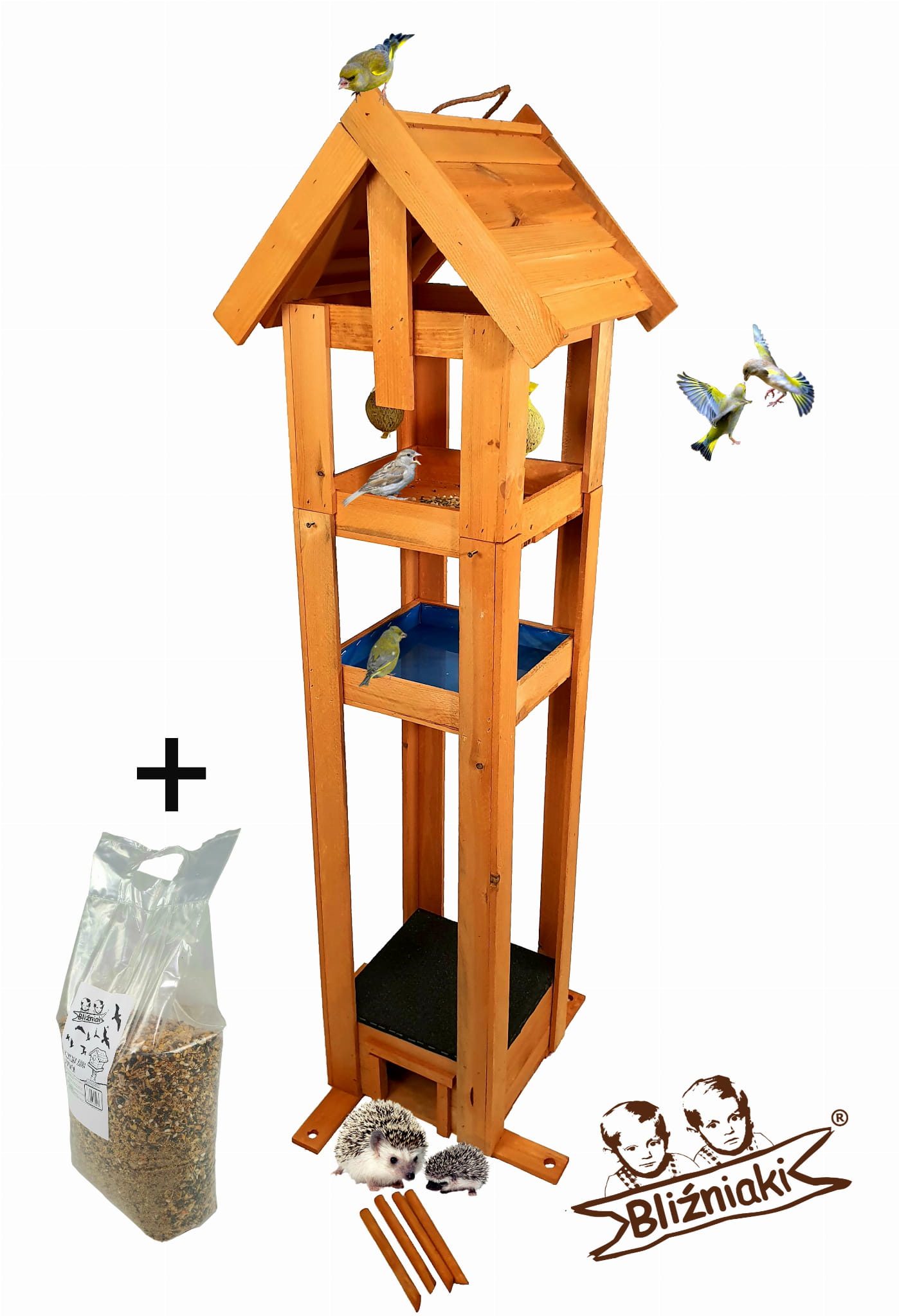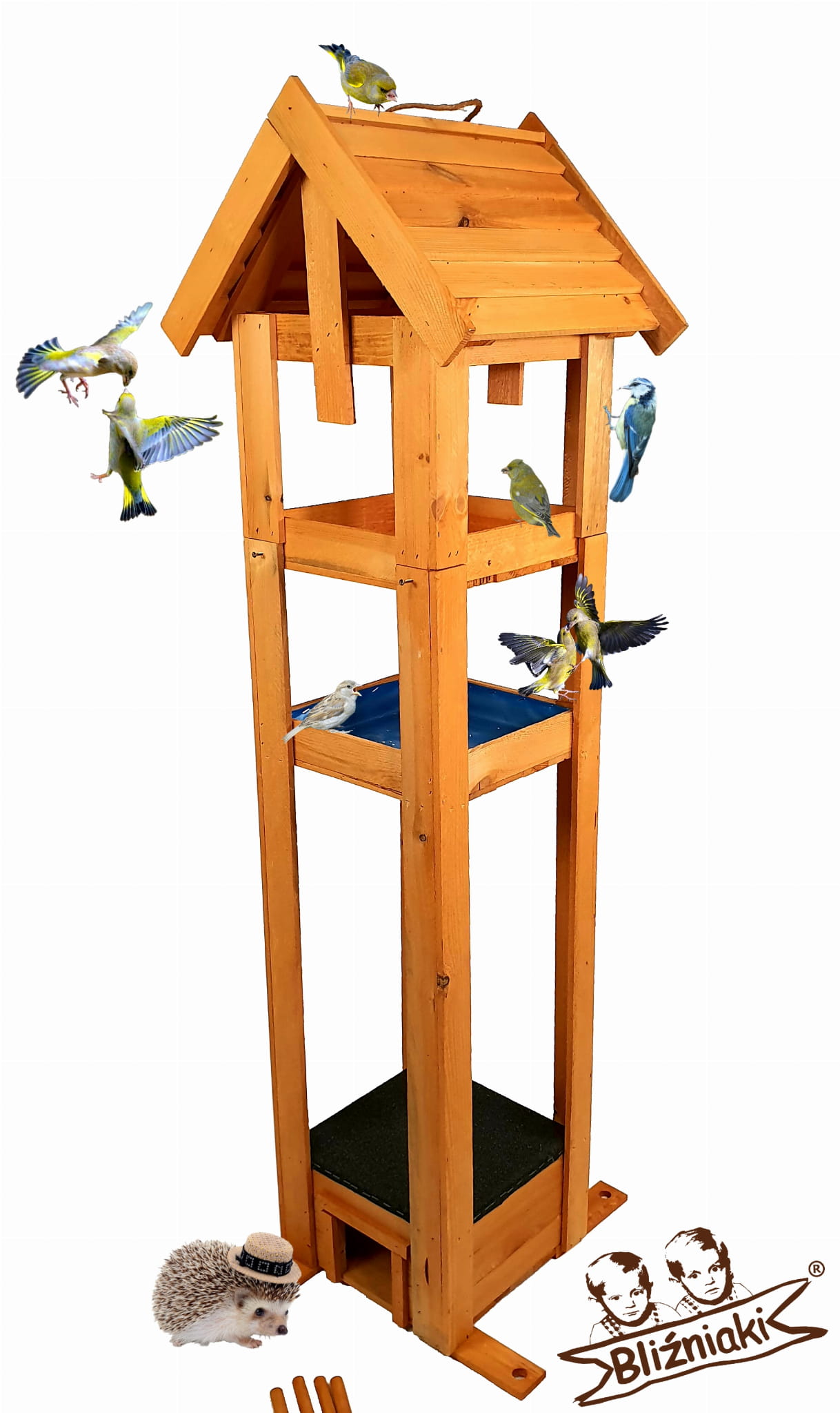 Kupując nasz wielofunkcyjny zestaw otrzymujesz: duży karmnik, który możesz zawiesić w dowolnym miejscu, poidło dla ptaków oraz budkę lęgową dla jeży. Trzy produkty w jednej cenie. Całość zabezpieczona została metodą impregnacji.