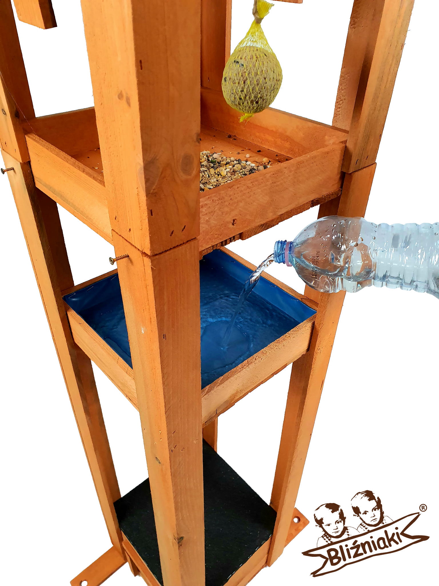 - Pod karmnikiem umieszczone jest poidło dla ptaków zabezpieczone folią.