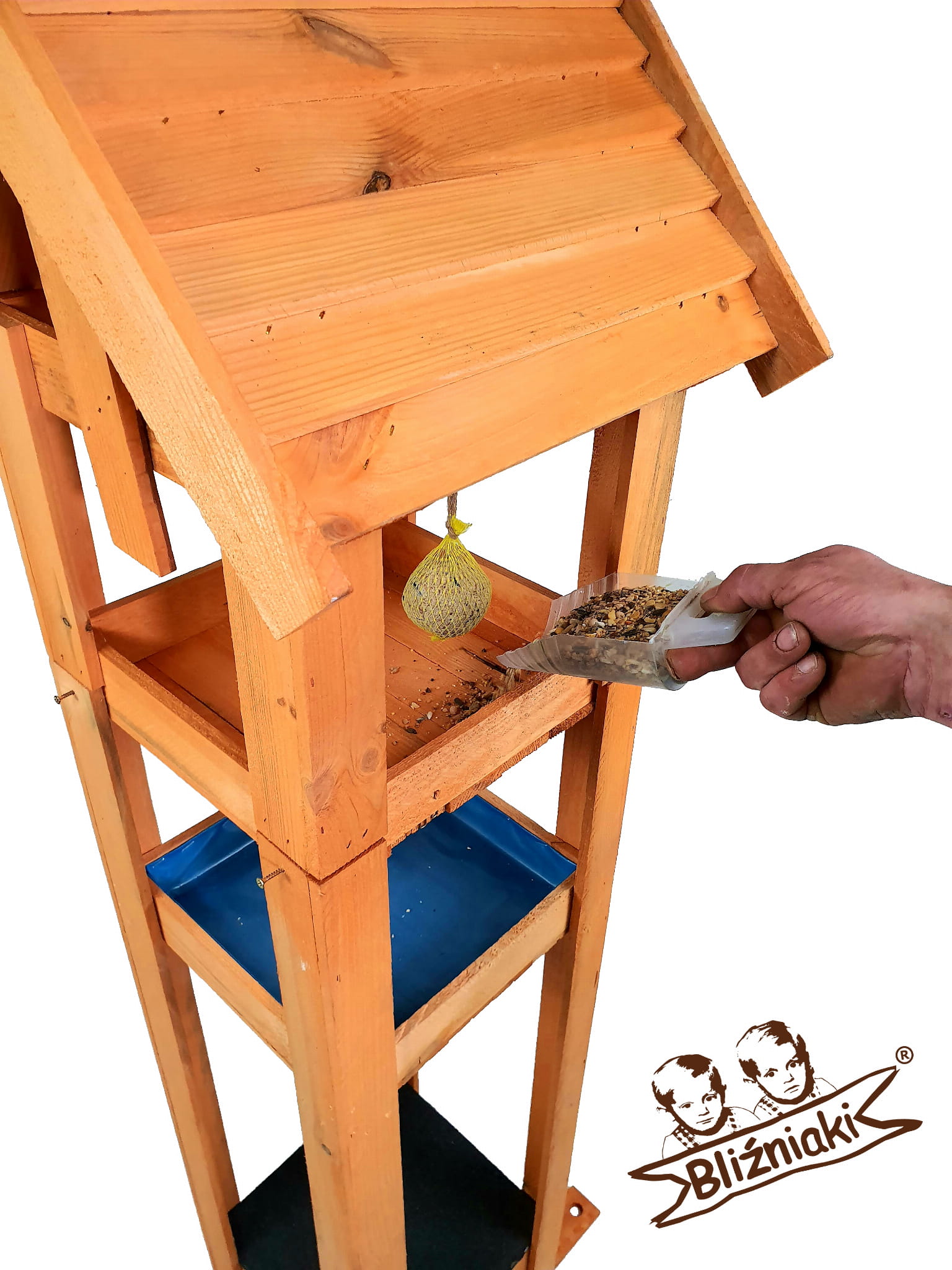 Istnieje możliwość zakupu karmnika w zestawie z karmą dla ptaków- 5kg najczystszej mieszanki ziaren. Idealne całoroczne pożywienie. (Przedstawiona oferta dotyczy samego karmnika bez karmy).