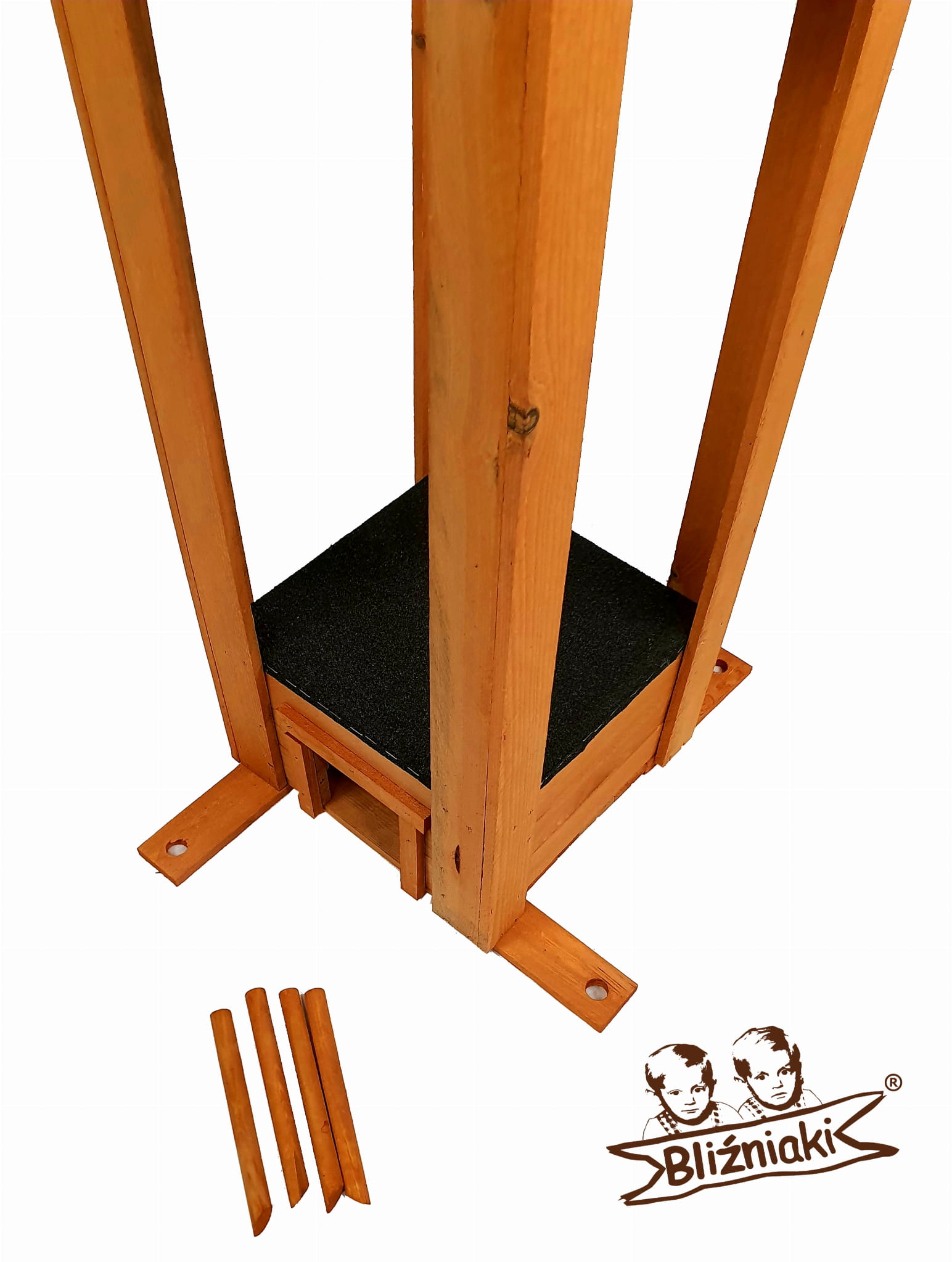 Zestaw jest wykonany w dużą precyzją i dbałością o szczegóły. Jest bardzo solidny, ale w celu zabezpieczenia przed podmuchami wiatru należy, przymocować go do gruntu przy pomocy kotw, które dodajemy w zestawie.
