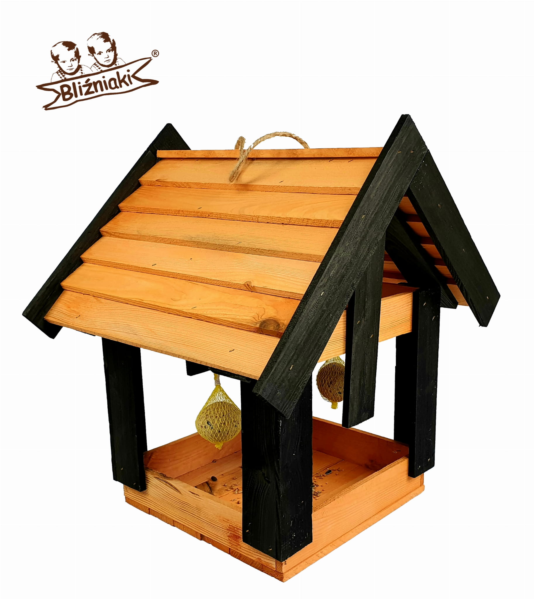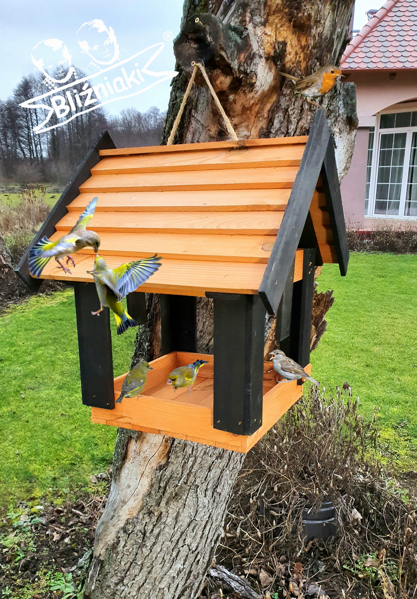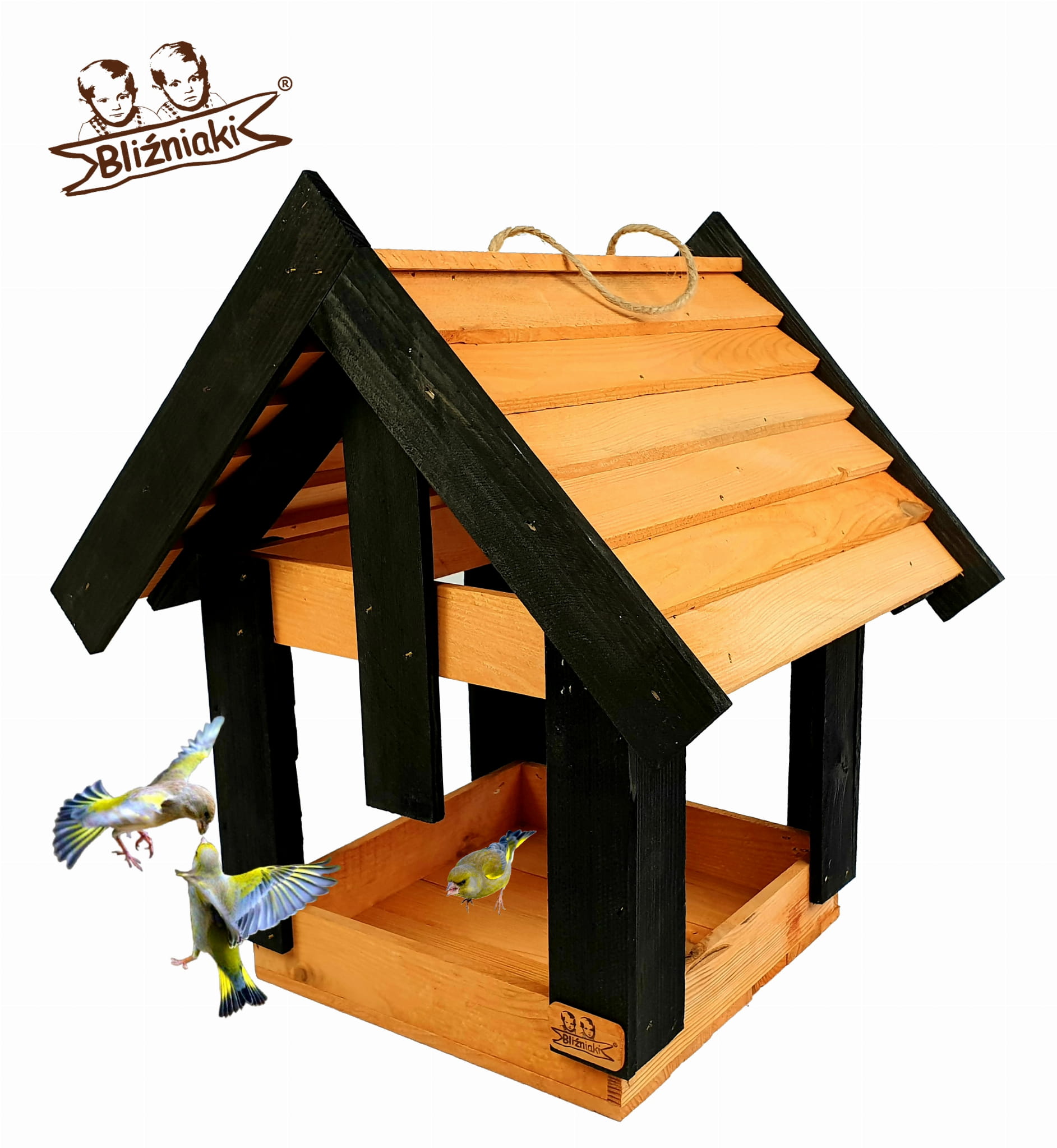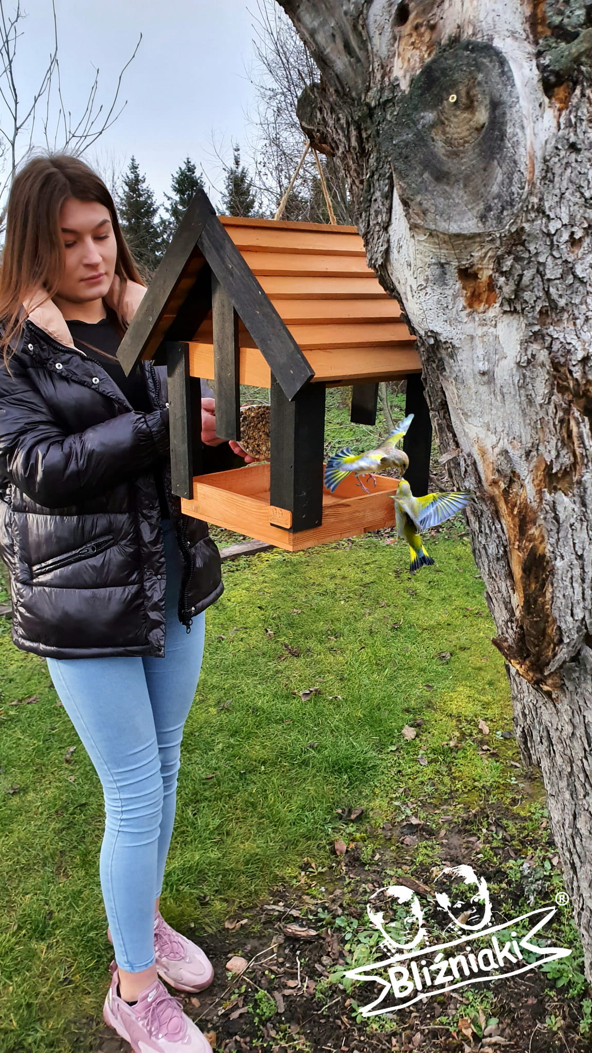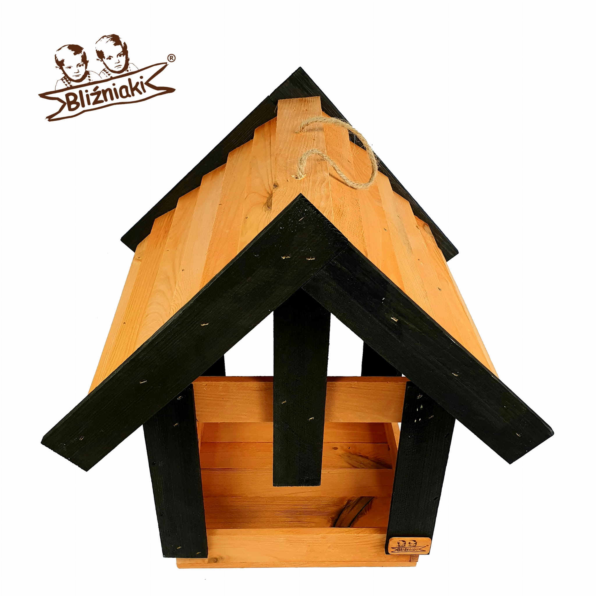 Karmnik Dla Ptaków Stołówka dla Ziarnojadów Wisząca Drewniana Budka Dwukolorowa Obszerny Domek na Pokarm dla Ptaków (K200 B CZ)
