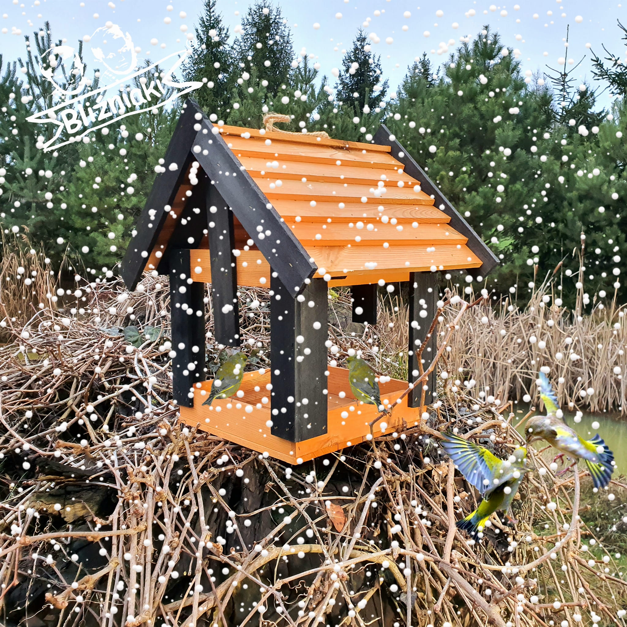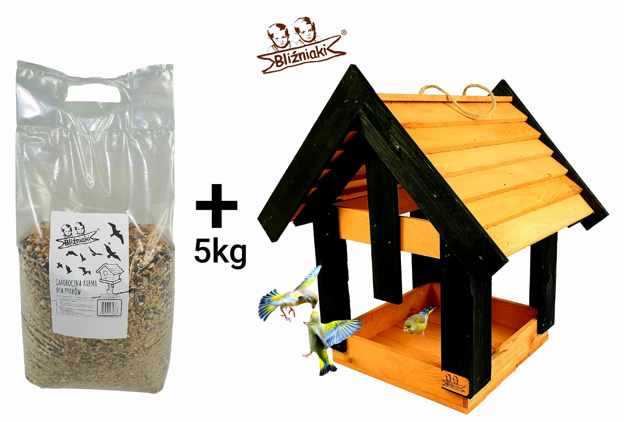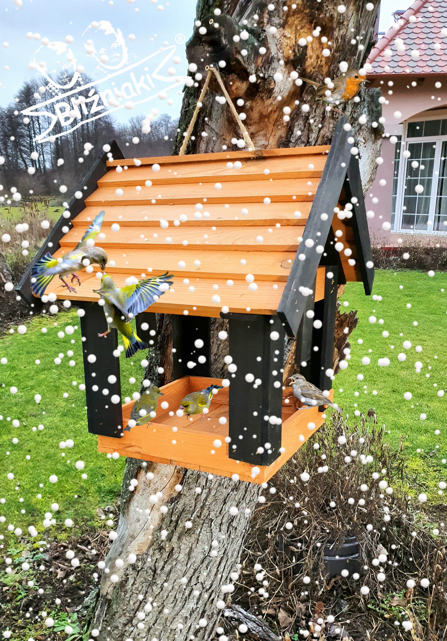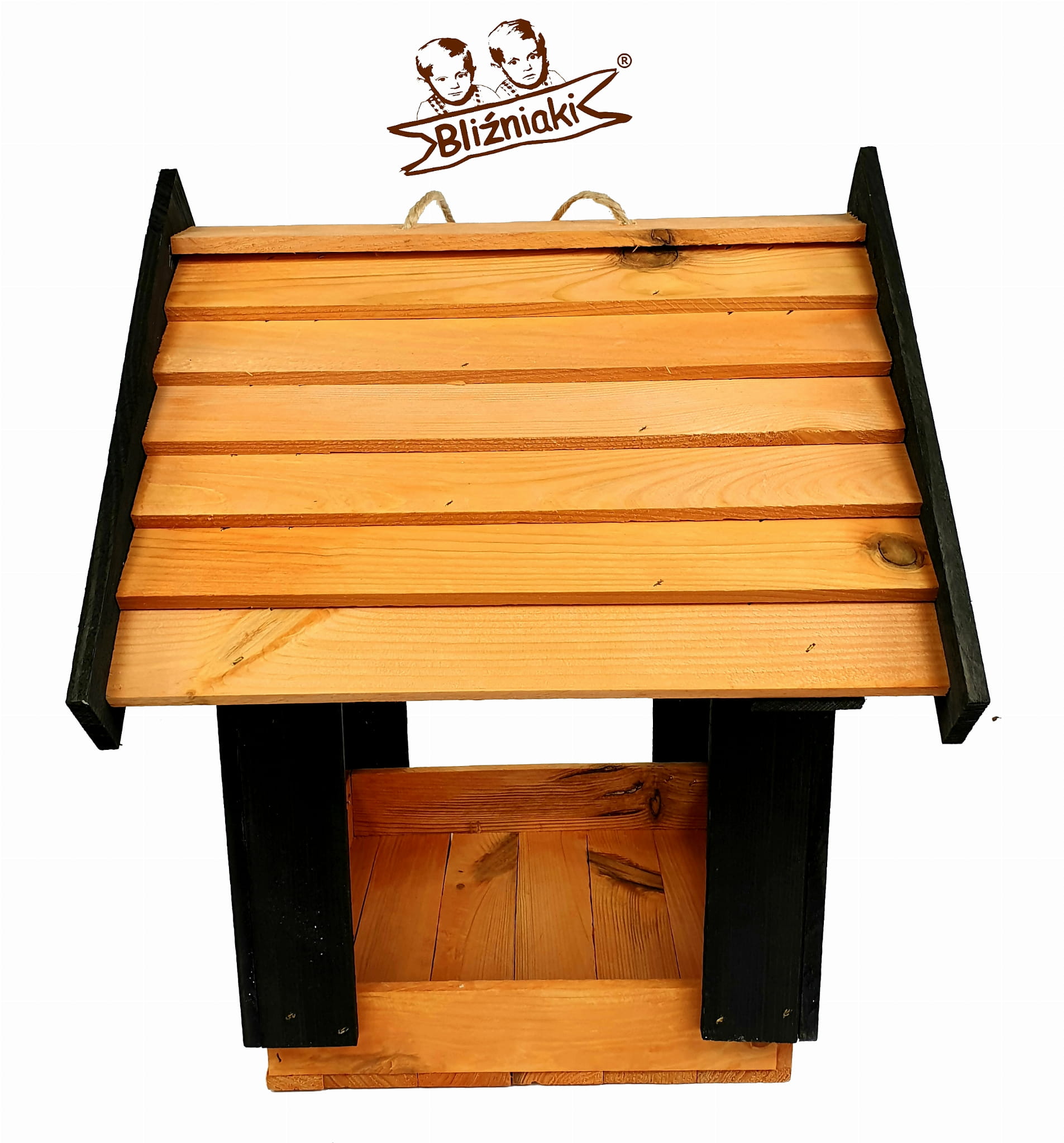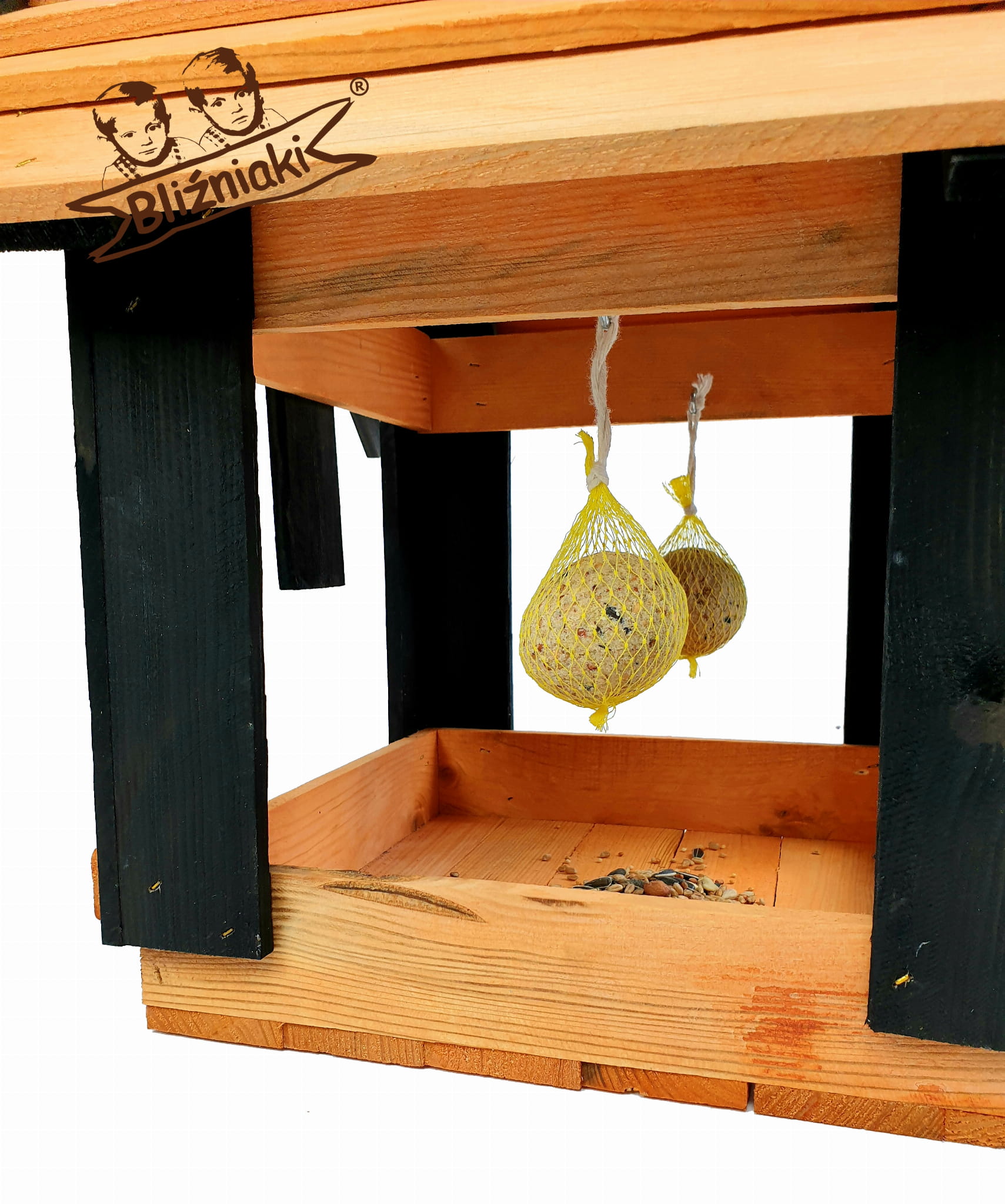 Karmnik Dla Ptaków Stołówka dla Ziarnojadów Wisząca Drewniana Budka Dwukolorowa Obszerny Domek na Pokarm dla Ptaków (K200 B CZ)