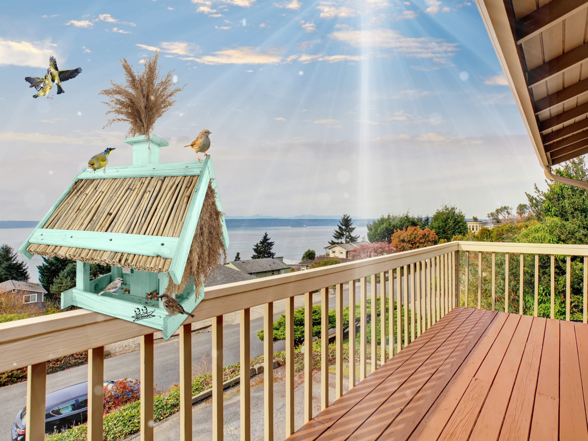 Nasz karmnik idealnie nadaje się do przydomowego ogrodu, na działkę, balkon lub okienny parapet, gdzie stanie się ptasią stołówką pozwalającą na swobodne pobieranie karmy przez cały rok.