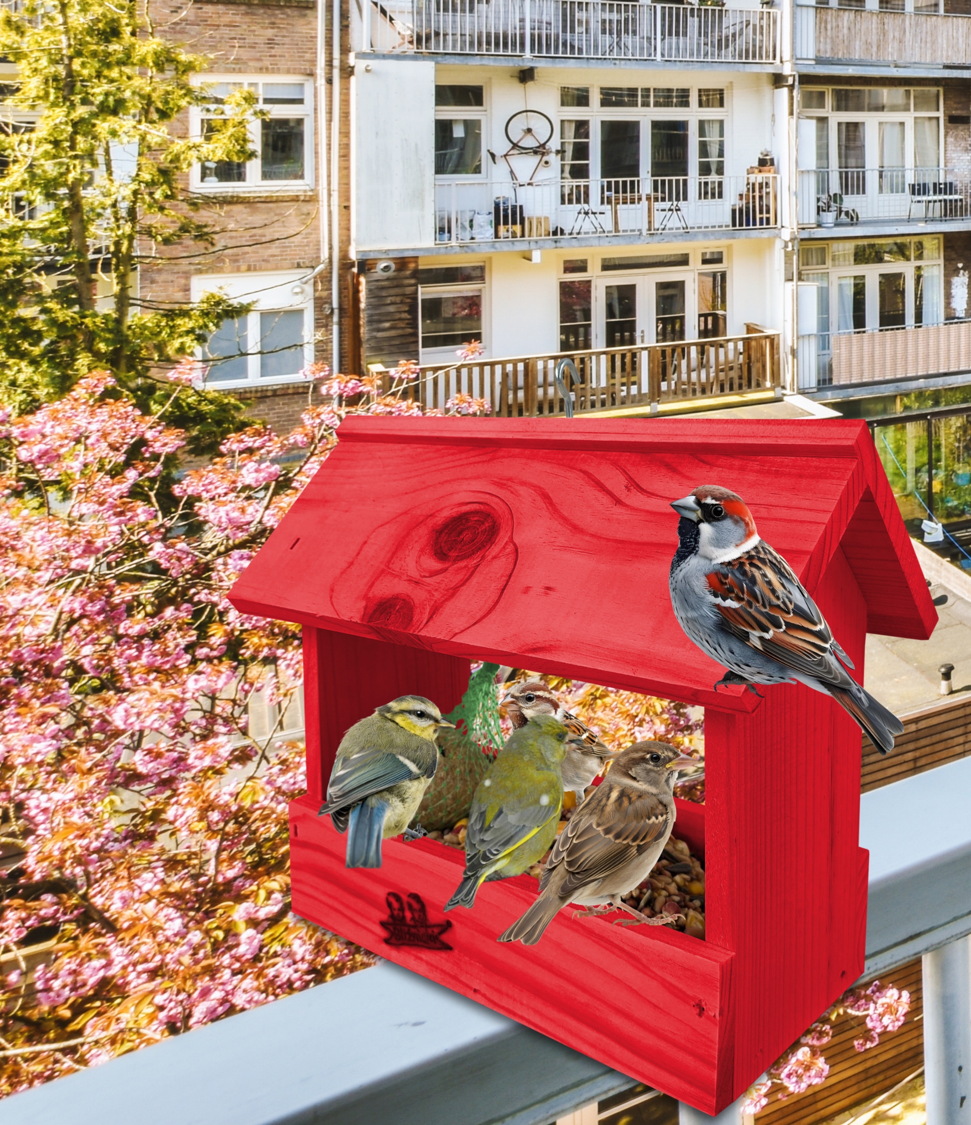 Przedmiotem sprzedaży jest ozdobny drewniany karmnik dla ptaków budka domek na balkon K204 CB w kolorze czerwonym