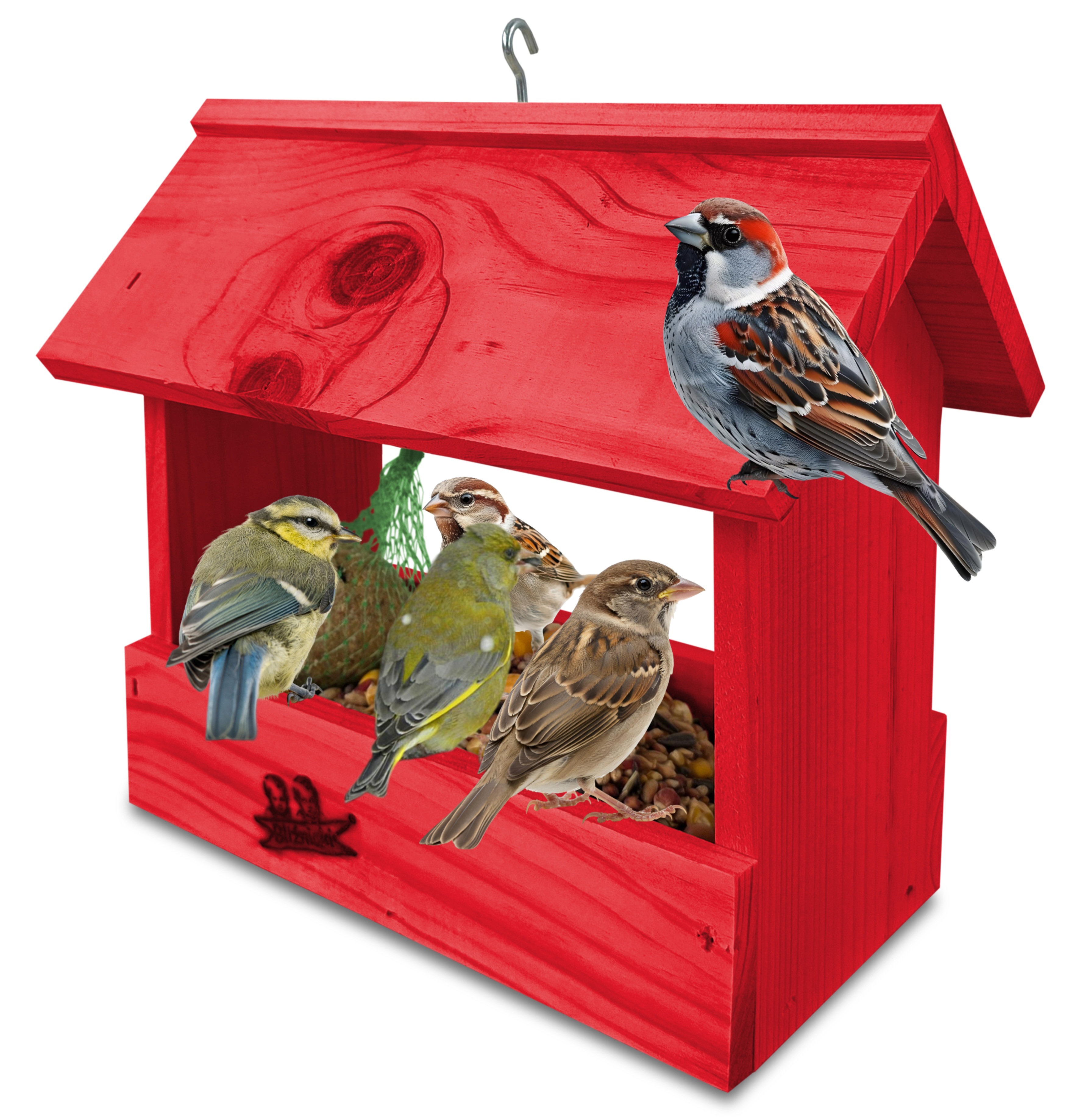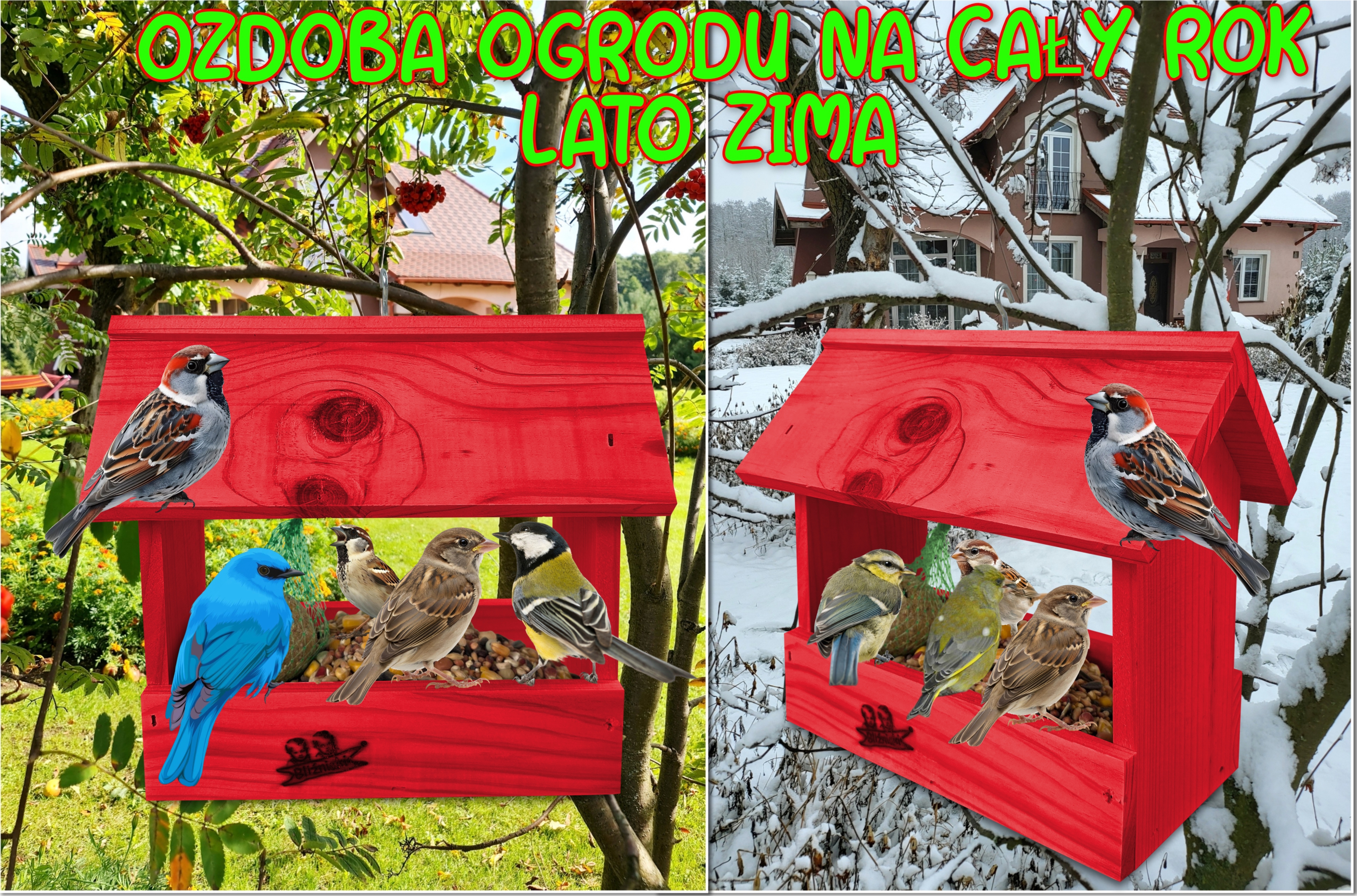 - Karmnik wykonany jest w całości z drewna iglastego, KOLOR CZERWONY