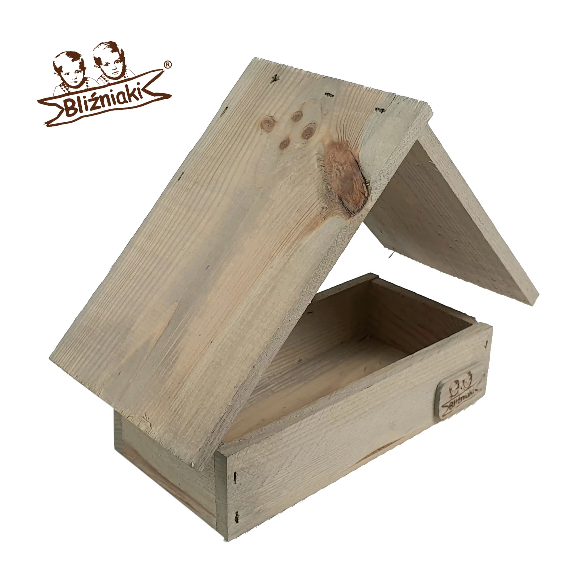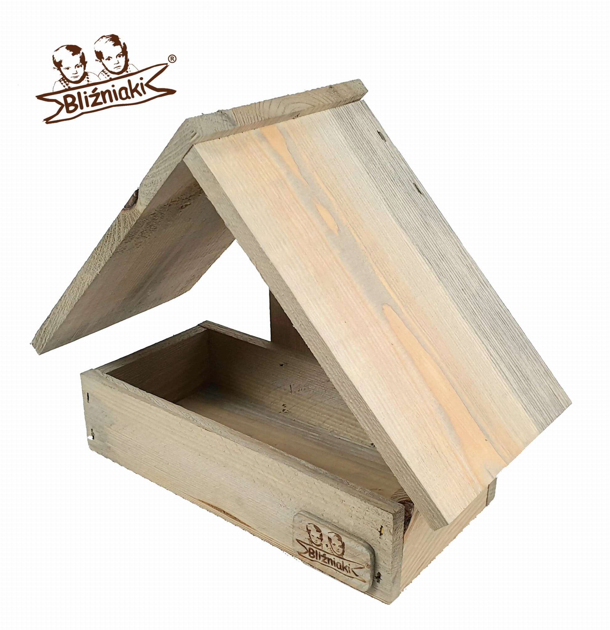 DREWNIANY KARMNIK ZE SKRZYNKĄ NA KARMĘ BUDKA DLA PTAKÓW