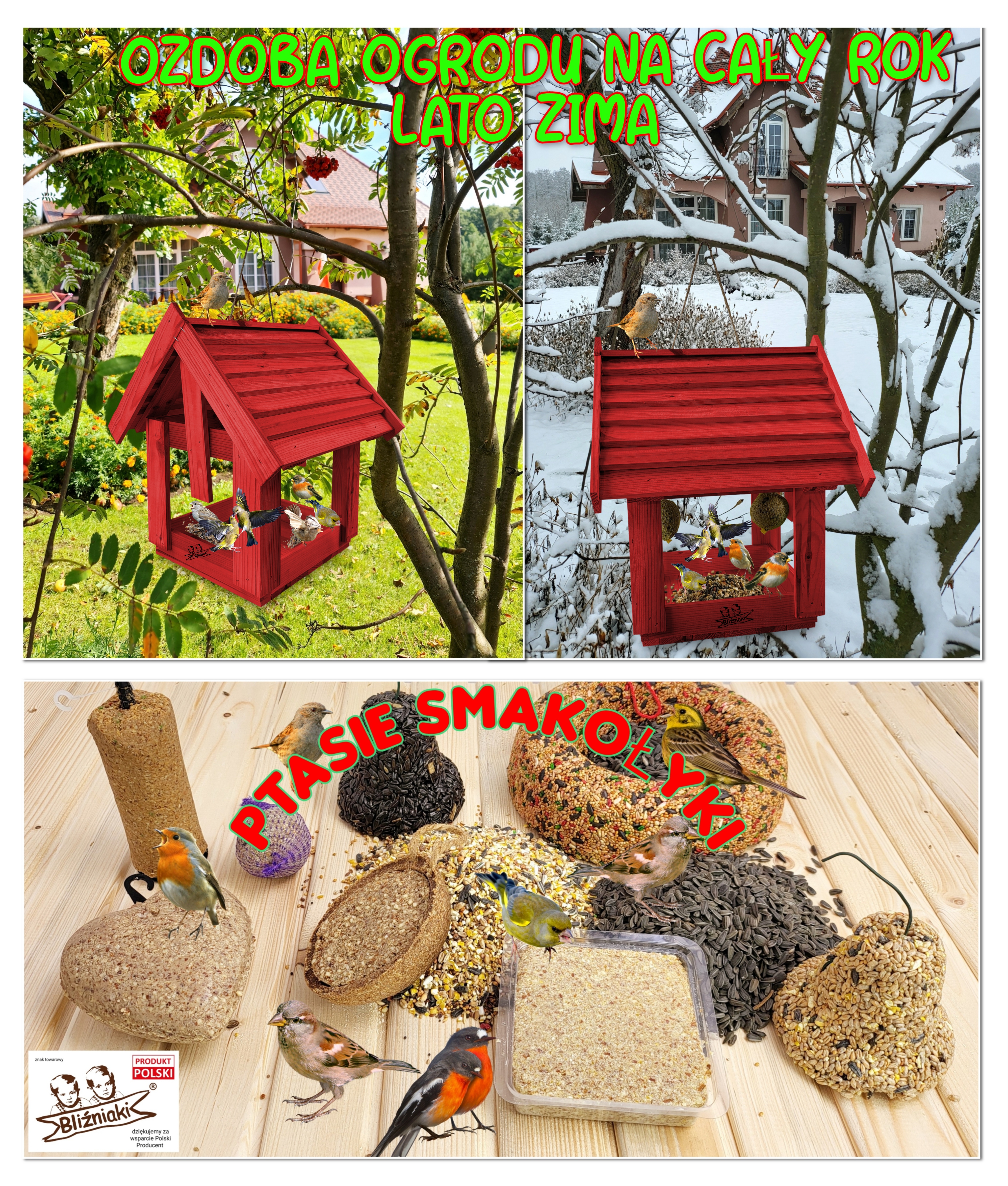 DUŻY KARMNIK Z HACZYKIEM NA KARMĘ ZAWIESZANY DOMEK DLA PTAKÓW