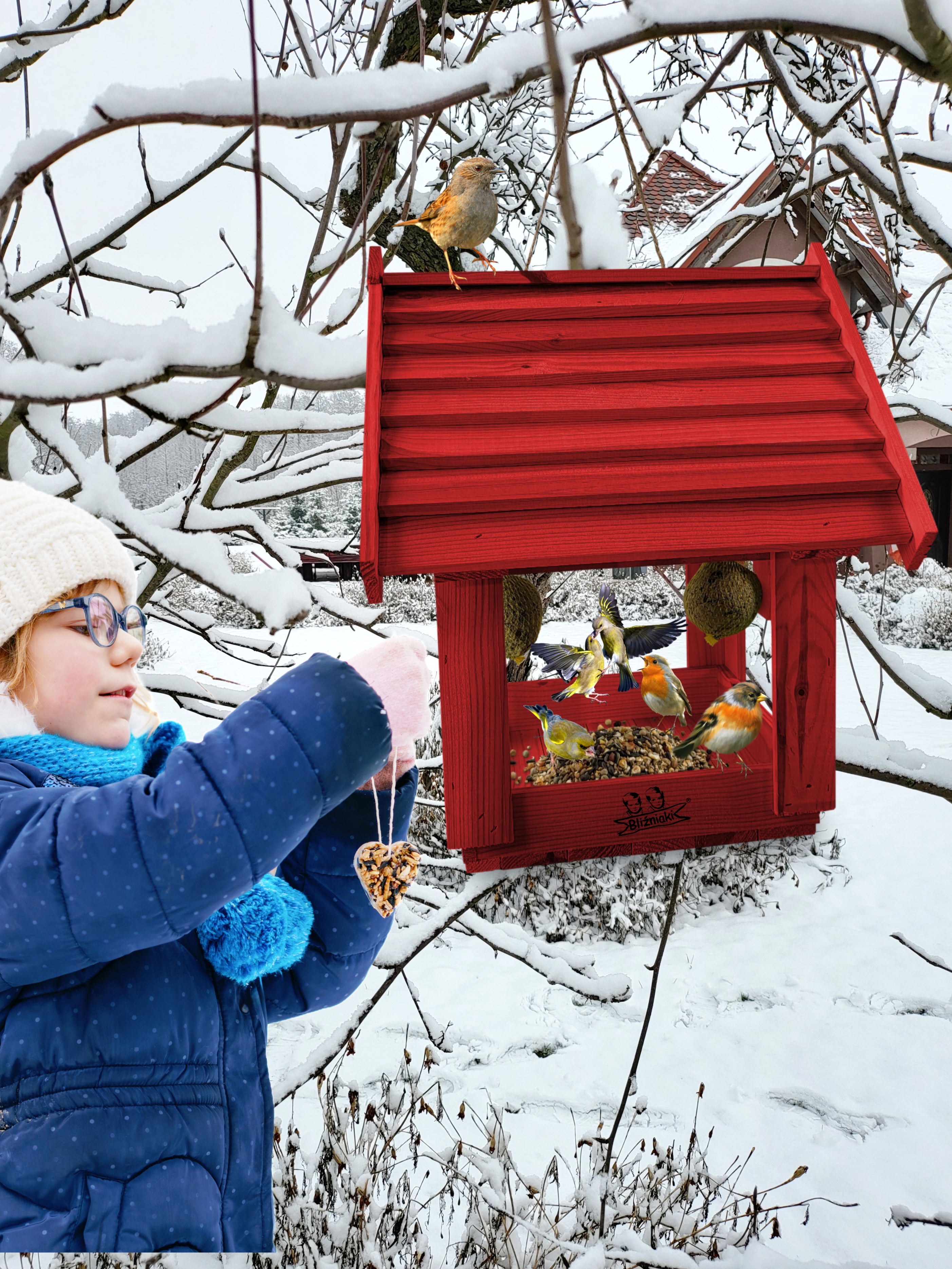Karmnik w kolorze CZERWONYM jest zabezpieczony metodą impregnowania. Środek na bazie wody użyty do impregnacji jest w pełni ekologiczny i bezpieczny dla ludzi i zwierząt. Zabezpieczone w taki sposób drewno sprawia, że karmnik jest odporny na szkodliwe działanie wody oraz wilgoci, promieni UV, a także grzybów i pleśni, może być więc przechowywany przez cały rok na zewnątrz.