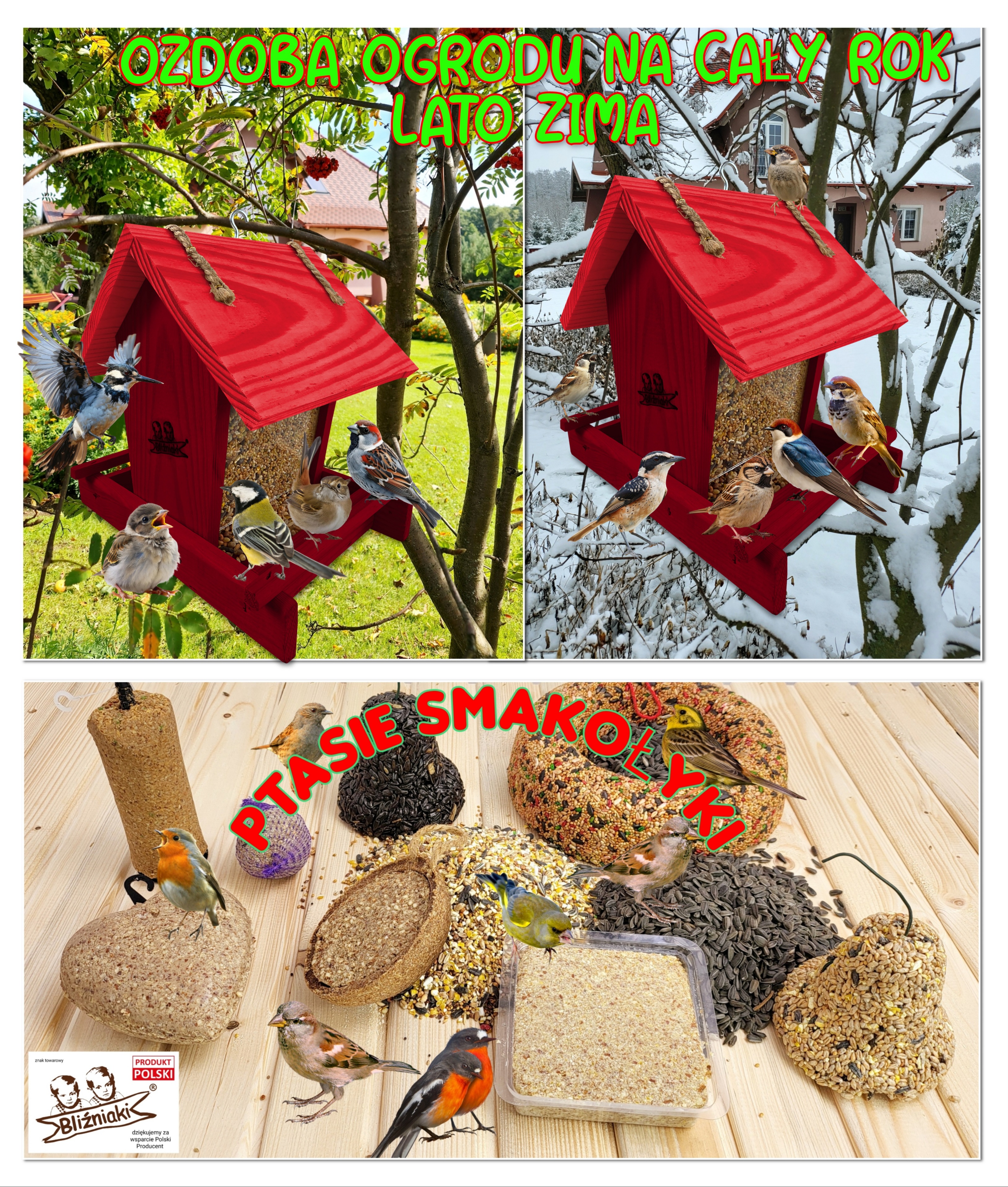 Wraz ze zbliżającym się okresem jesienno-zimowym nadchodzi trudny czas dla wszystkich gatunków ptaków, które w tym czasie nie migrują. Główny ich problem wiąże się z niedostatkiem pożywienia łatwego do zdobycia. Wszyscy powinniśmy myśleć pro-ekologicznie, dbać o bezpieczeństwo tych małych, ale bardzo pożytecznych zwierząt i zwiększyć ich szanse na przetrwanie śniegu i mrozu. Kupując karmnik z naszej aukcji i umieszczając w nim ptasi pokarm masz pewność, że przyczynisz się do utrzymania życia w Twojej okolicy.