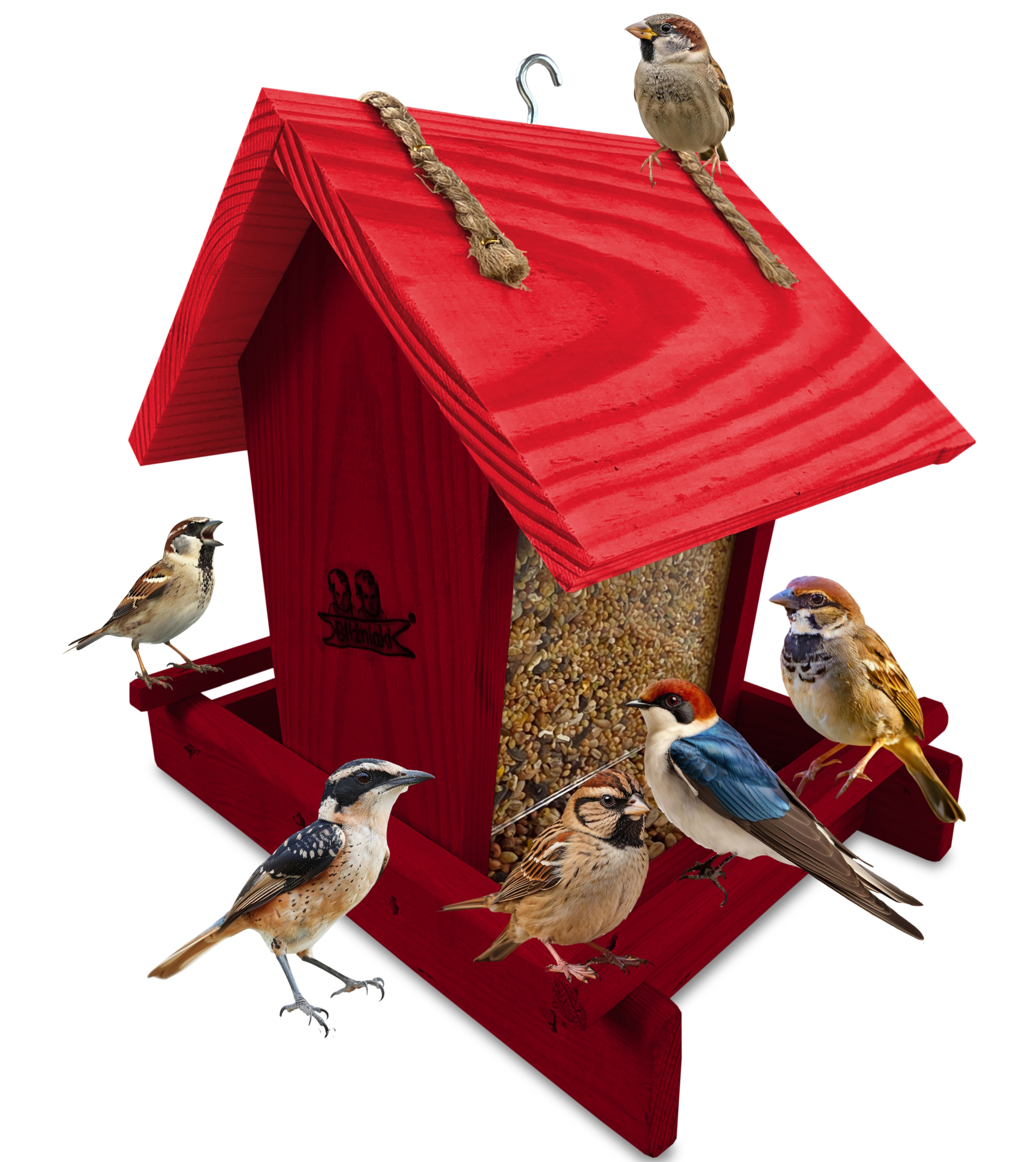 - Jego unikalna konstrukcja umożliwia stały dostęp ptaków do pokarmu, a ziarno wewnątrz nie ulega zabrudzeniu i zawilgoceniu.