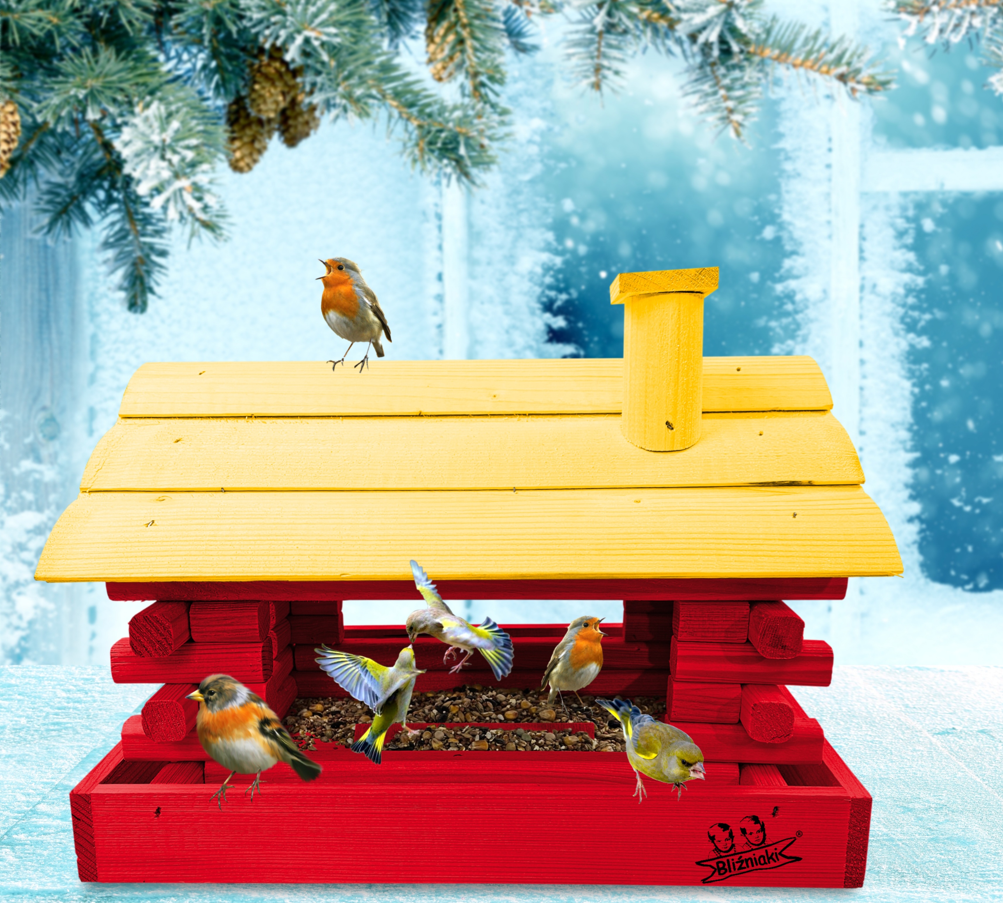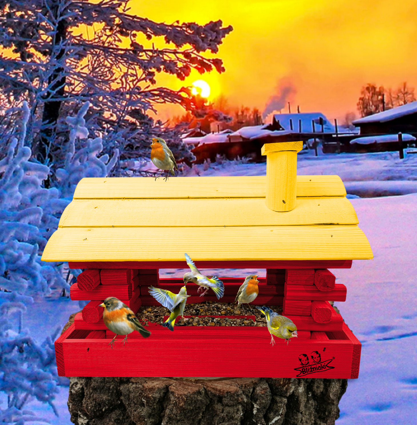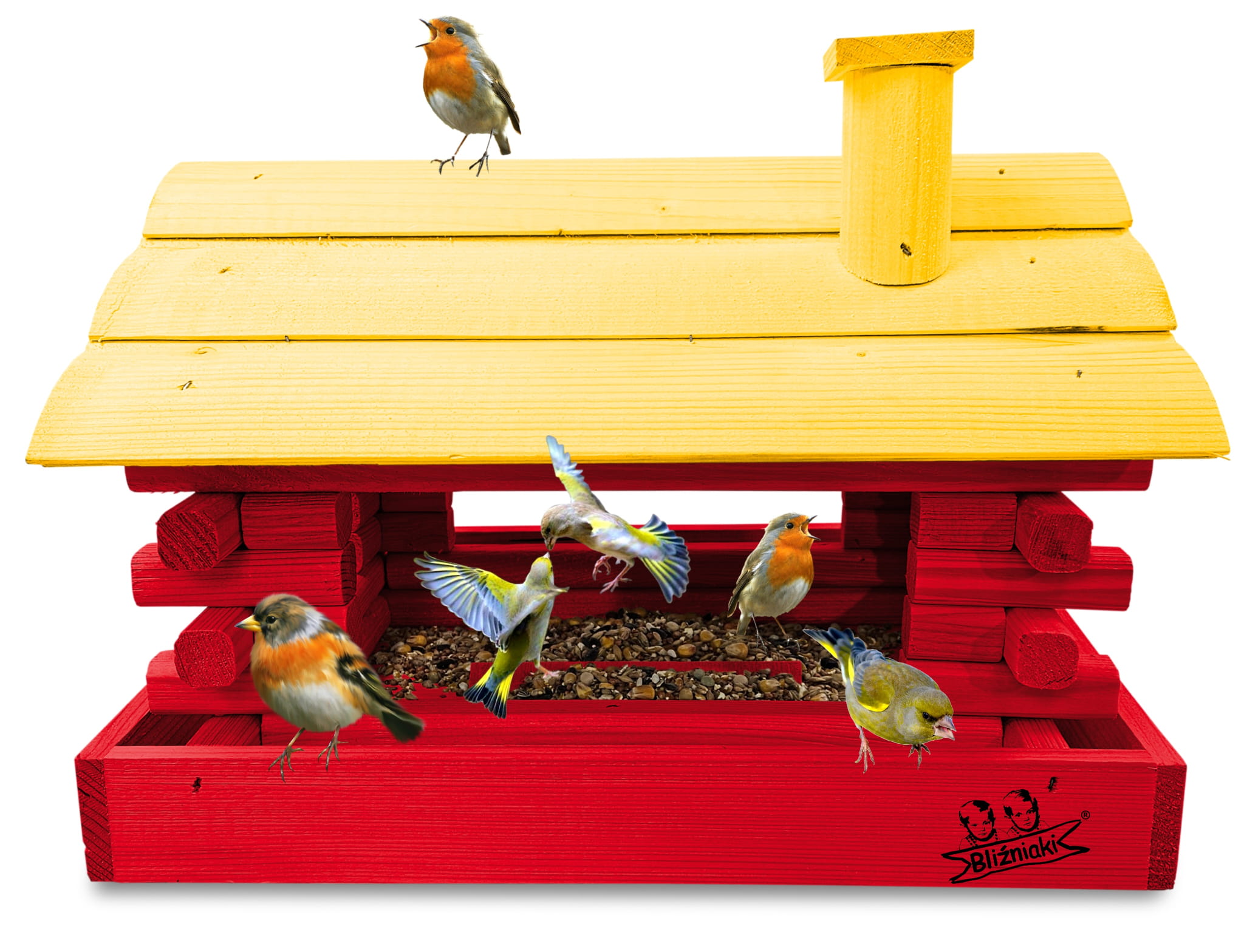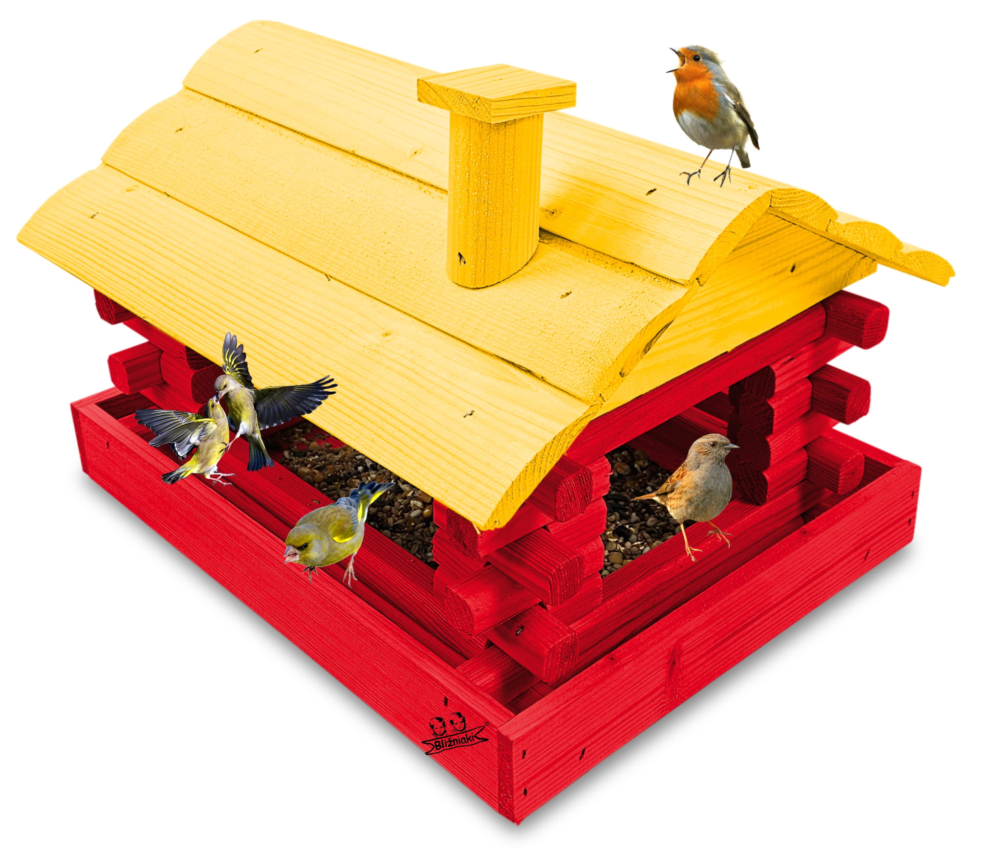Karmnik wykonany z trwałego drewna, o starannym wykończeniu, przypomina klasyczny domek z kominem. Zapewnia ptakom bezpieczne i przytulne miejsce do odpoczynku oraz dostępu do pożywienia w zimniejszych miesiącach.