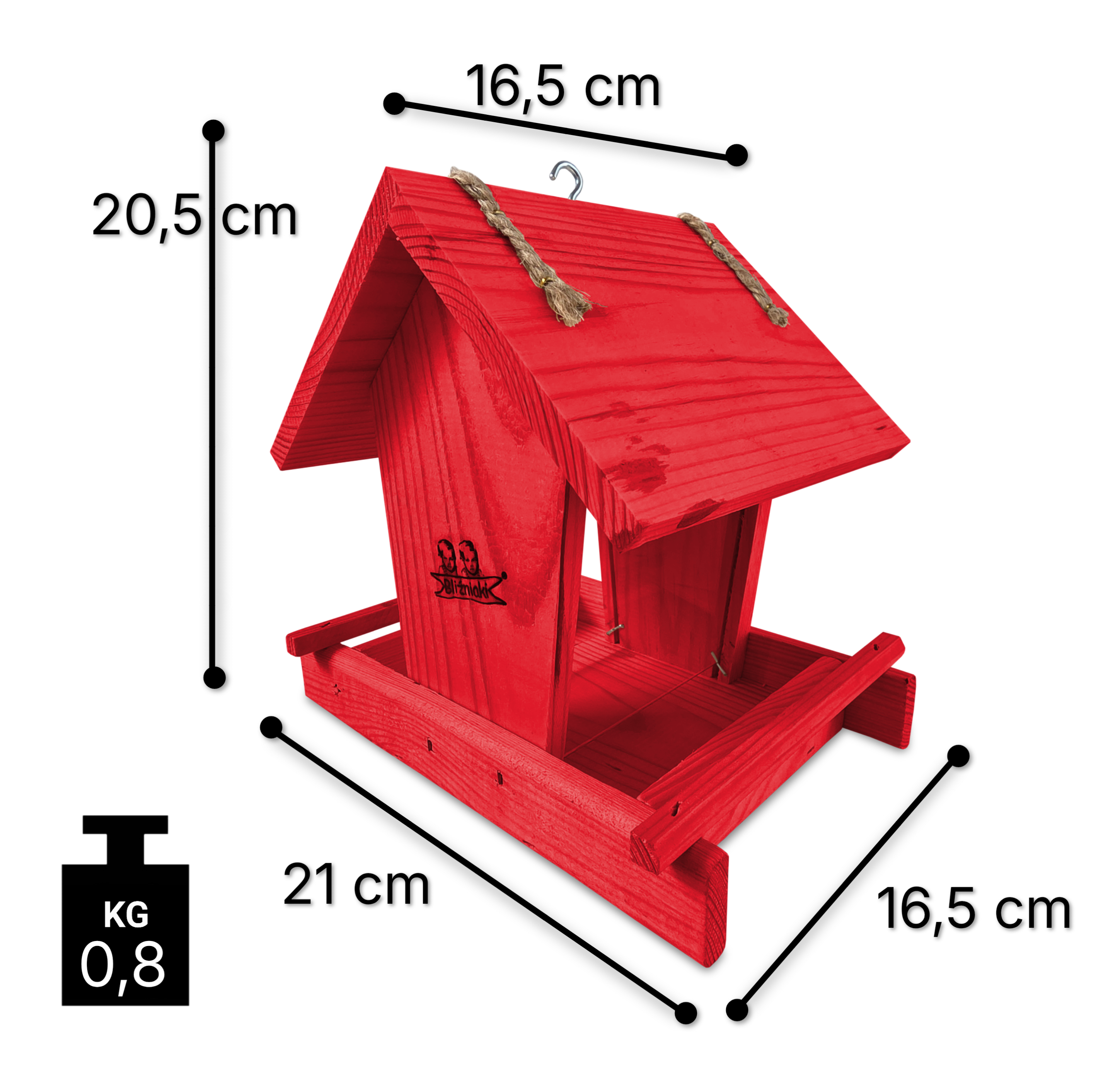 - Karmnik wykonany jest w całości z drewna iglastego, KOLOR CZERWONY