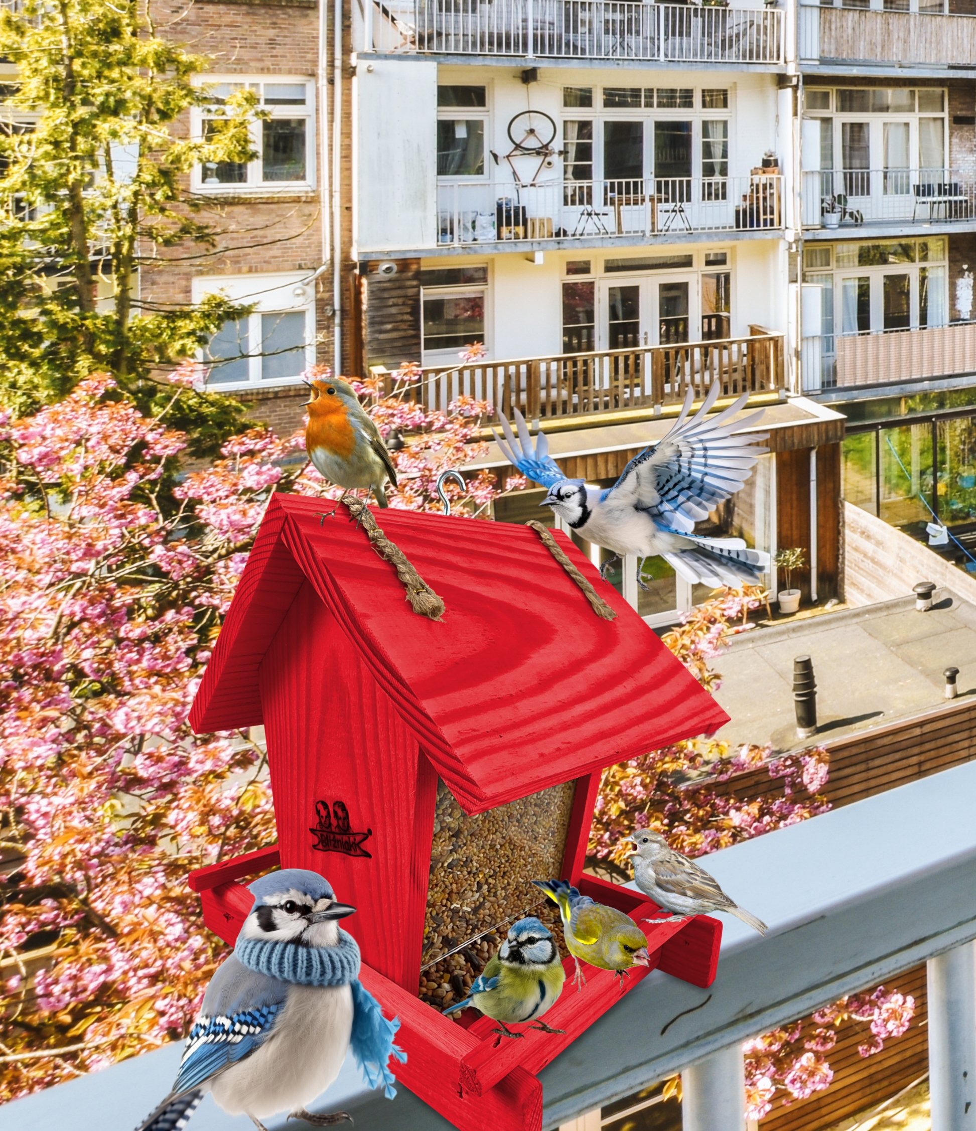 Karmnik posiada haczyk, umożliwiający zawieszenie go na balkonie, drzewie, pod dachem altany. Dzięki temu przylatujące do niego ptaki nie staną się łatwym kąskiem dla kotów i innych zwierząt. Dzięki małym gabarytom, z łatwością można wkomponować go w elementy architektury ogrodowej, na balkonie czy nawet parapecie.