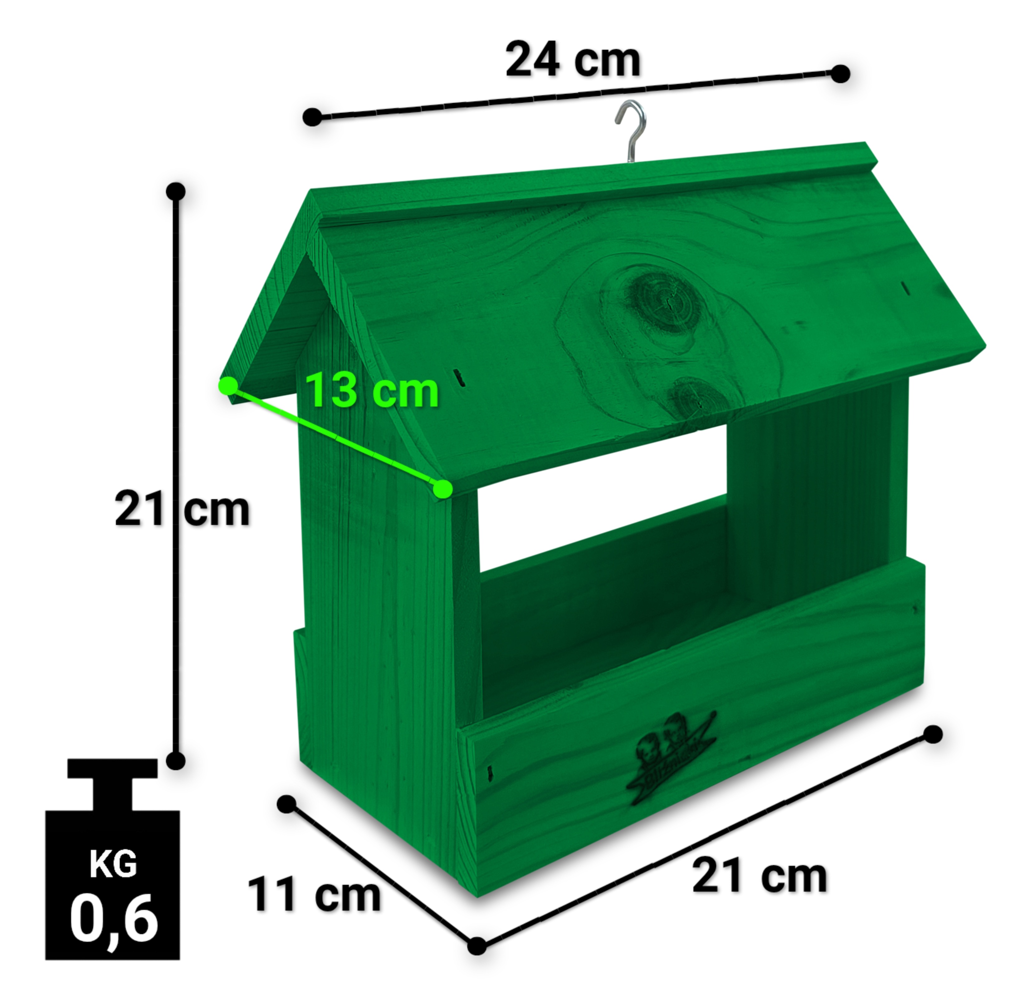 - Karmnik wykonany jest w całości z drewna iglastego, KOLOR CIEMNA ZIELEŃ