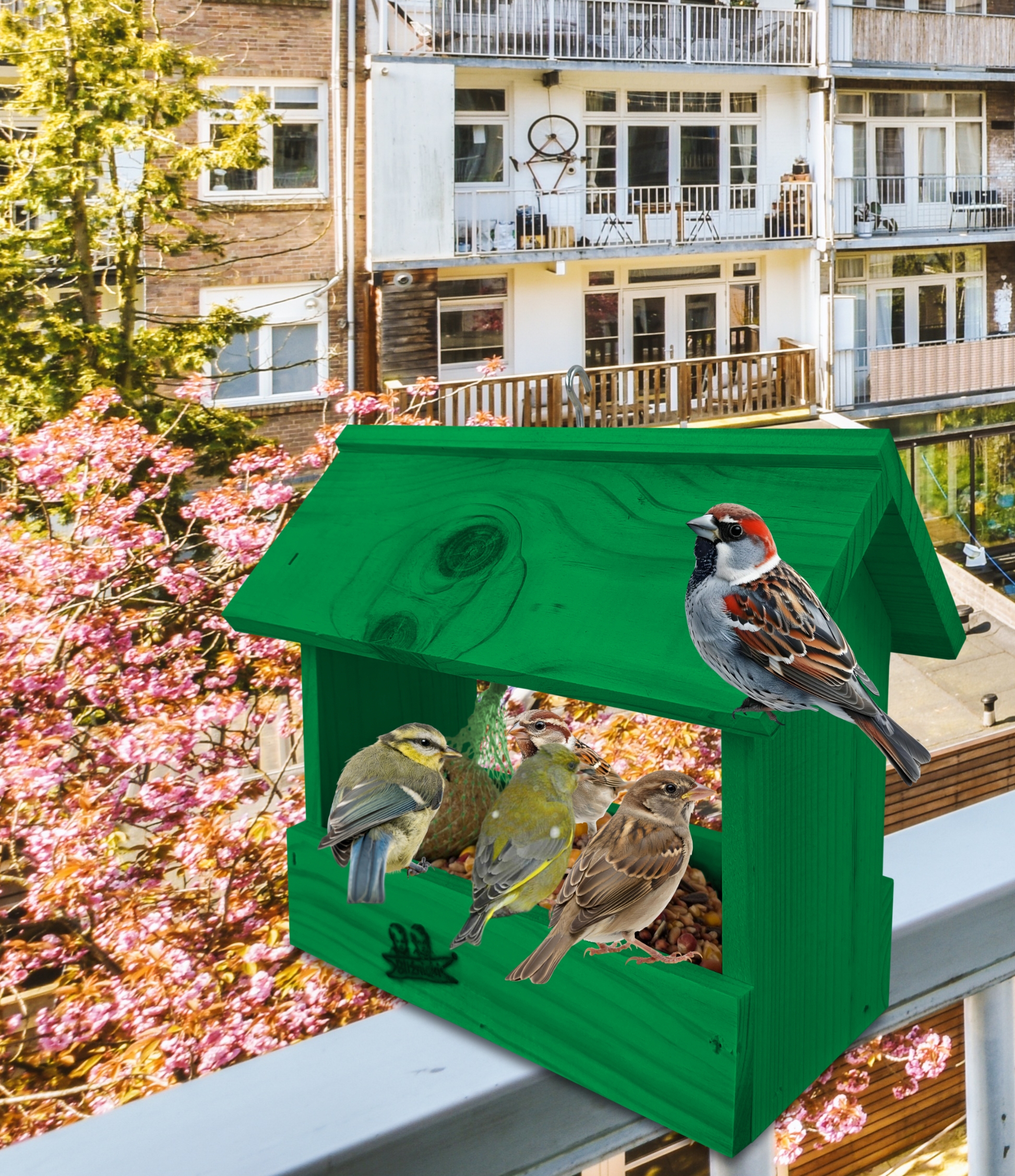 Karmnik posiada haczyk, umożliwiający zawieszenie go na balkonie, drzewie, pod dachem altany. Dzięki temu przylatujące do niego ptaki nie staną się łatwym kąskiem dla kotów i innych zwierząt. Dzięki małym gabarytom, z łatwością można wkomponować go w elementy architektury ogrodowej, na balkonie czy nawet parapecie.