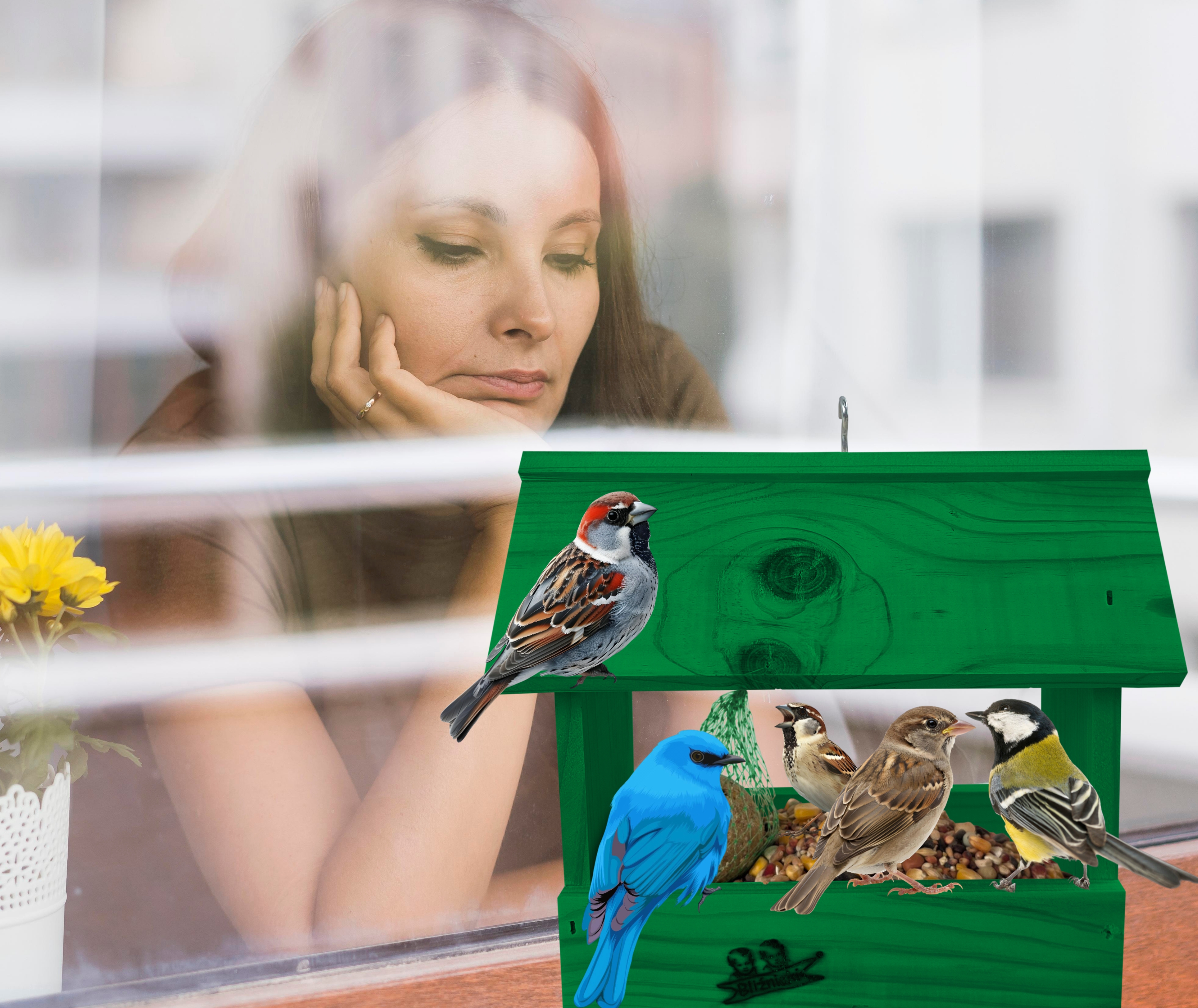 Przedmiotem sprzedaży jest ozdobny drewniany karmnik dla ptaków budka domek na balkon K204 K w kolorze ciemnozielonym