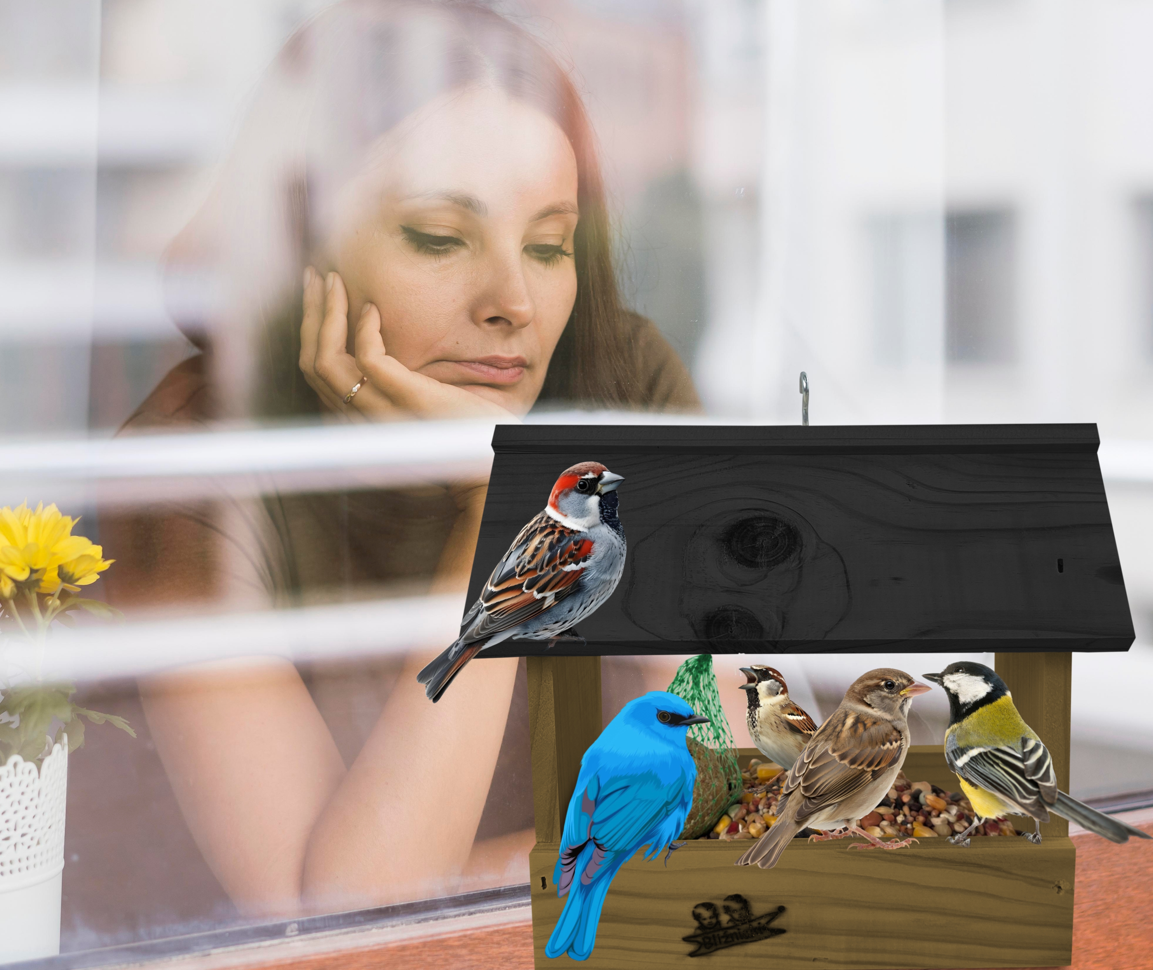 Karmnik drewniany dla dzikich ptaków z haczykiem domek schronienie dla sikorek na okno na balkon K204 DEB CZ