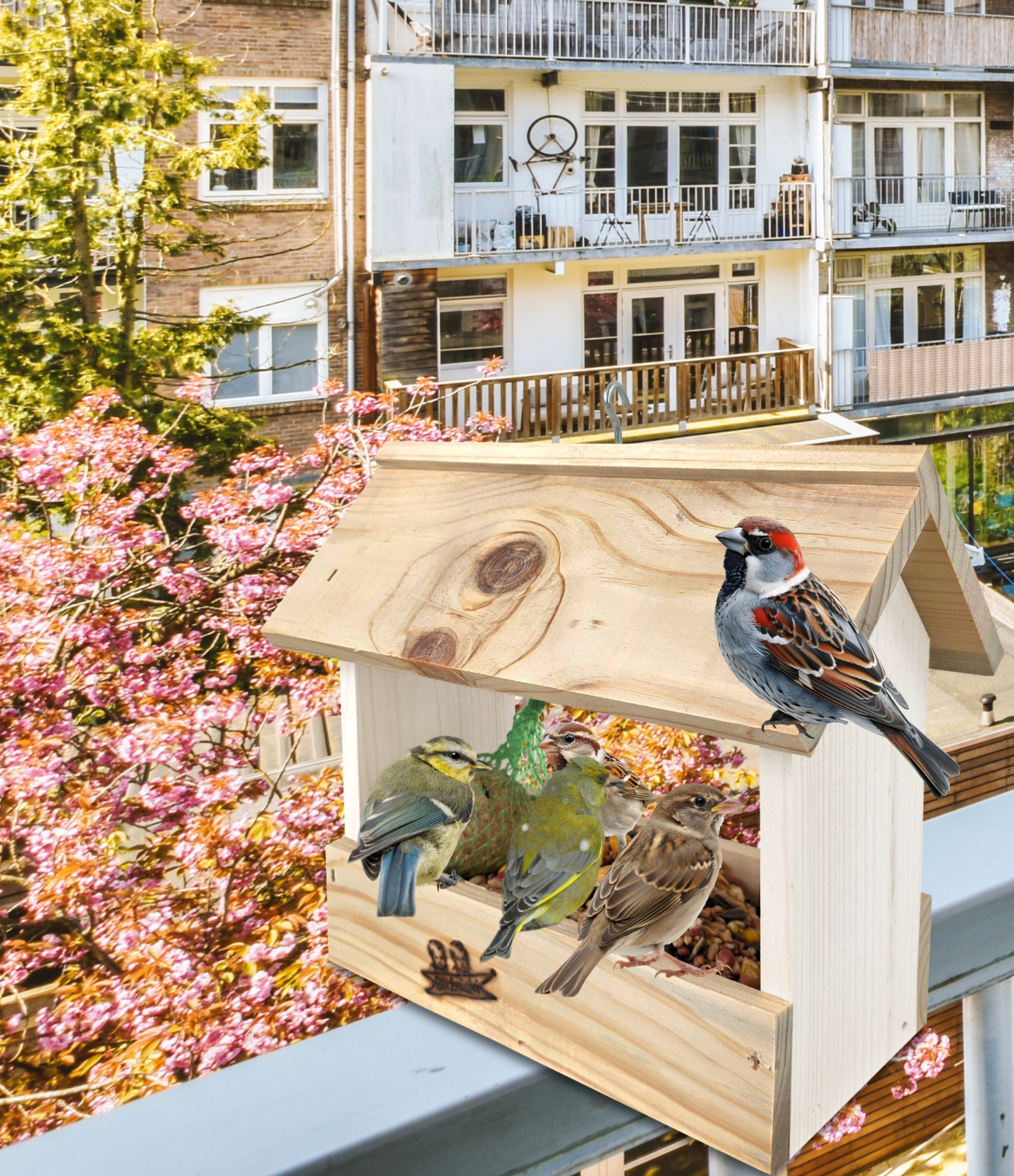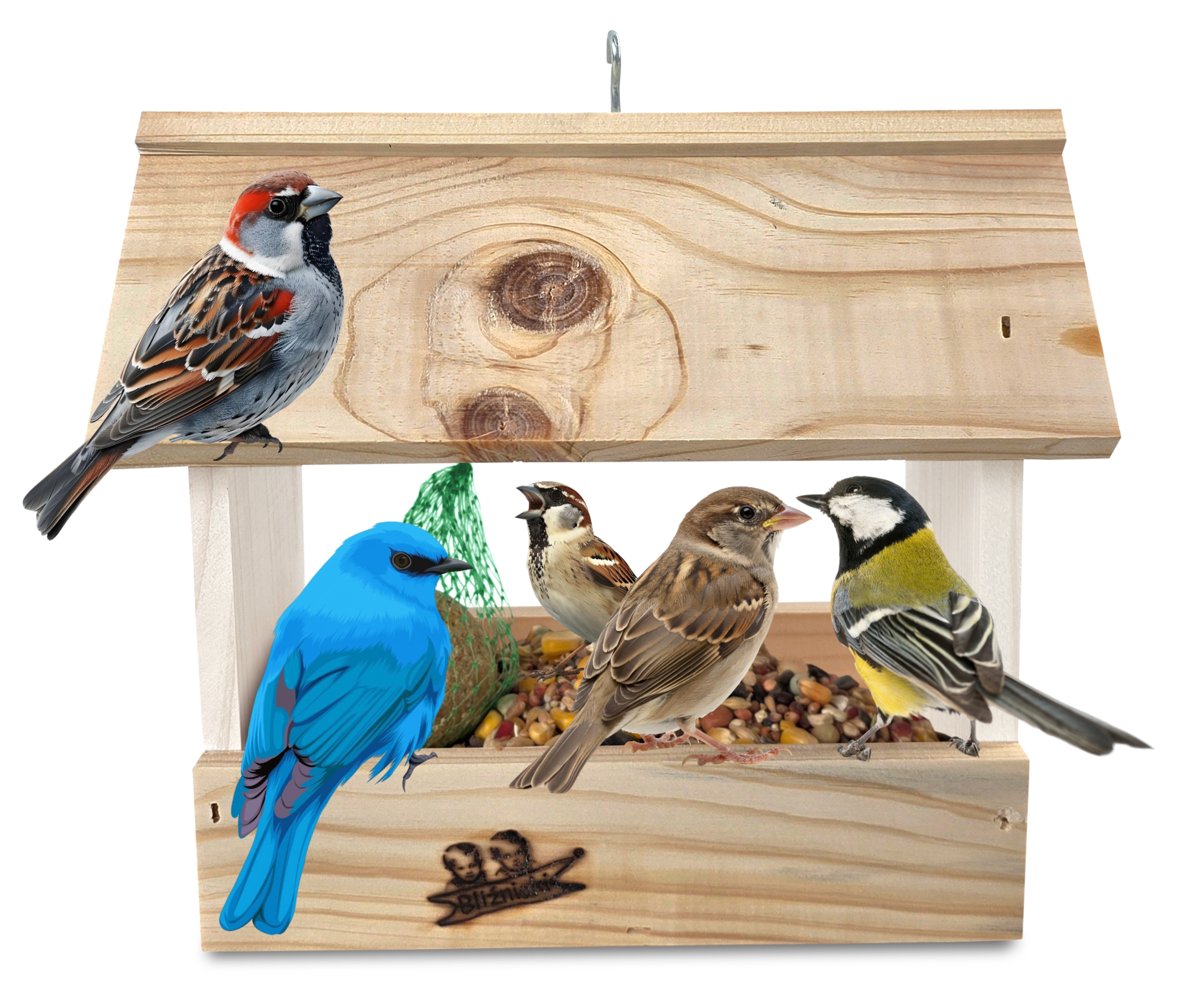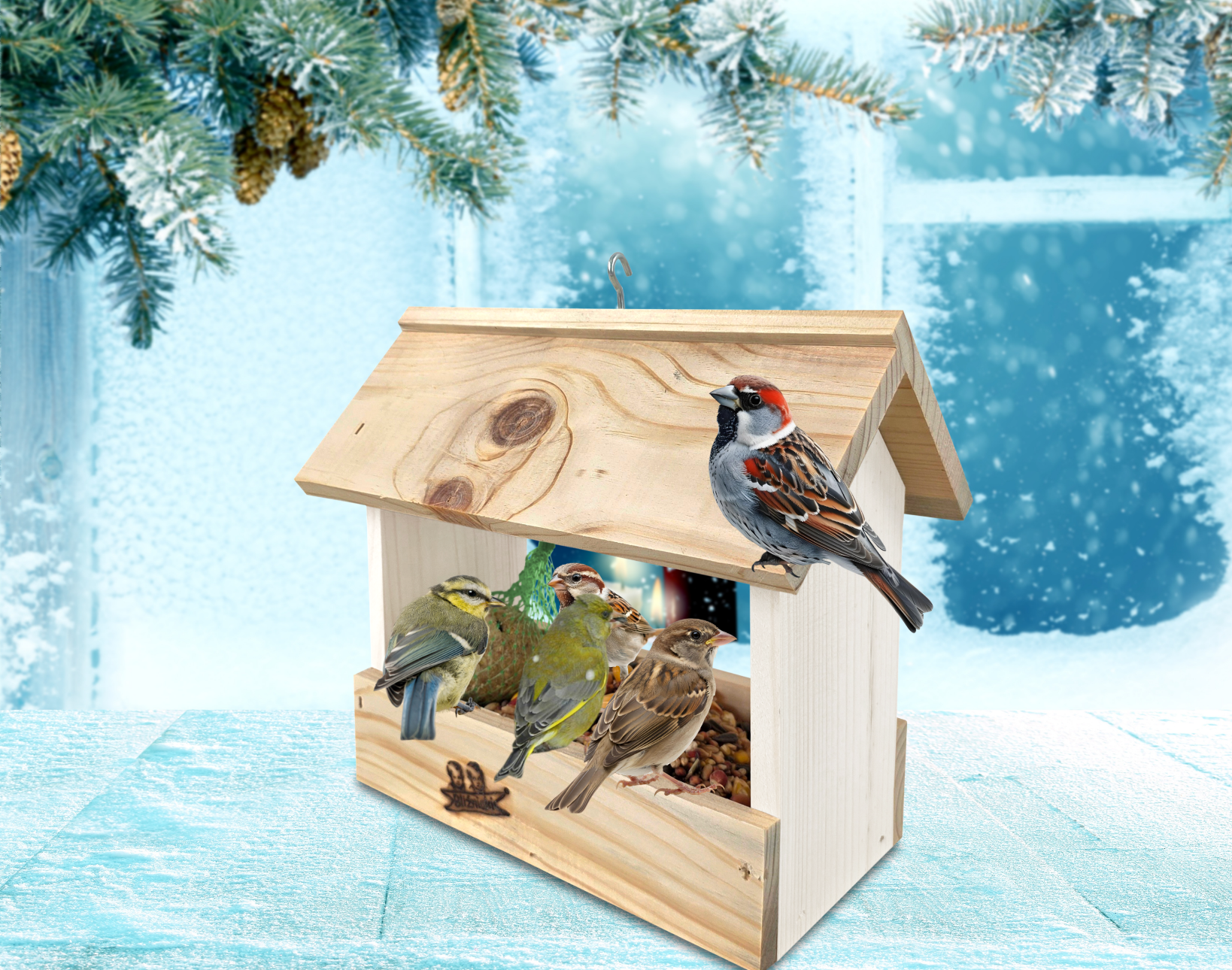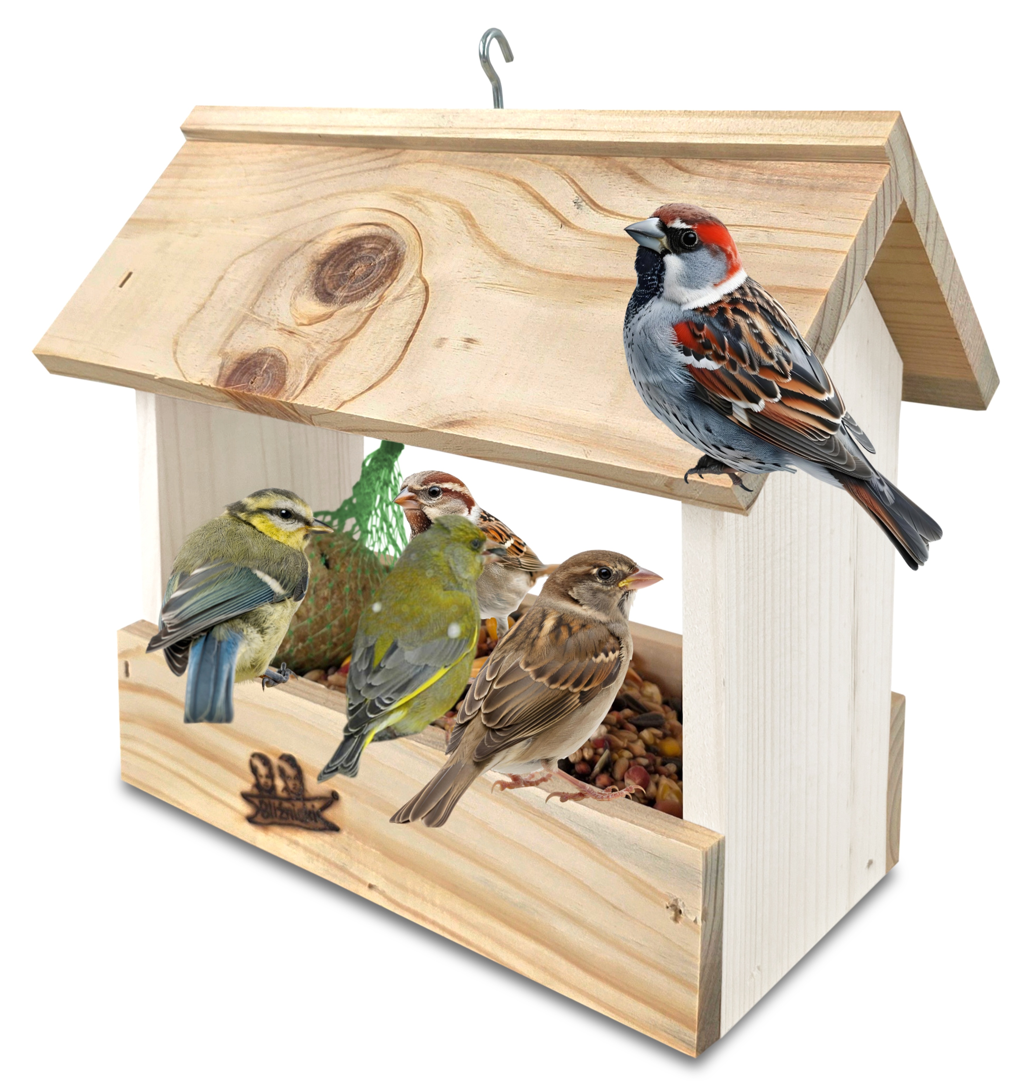 Karmnik drewniany dla dzikich ptaków z haczykiem domek schronienie dla sikorek na okno na balkon K204a BI N