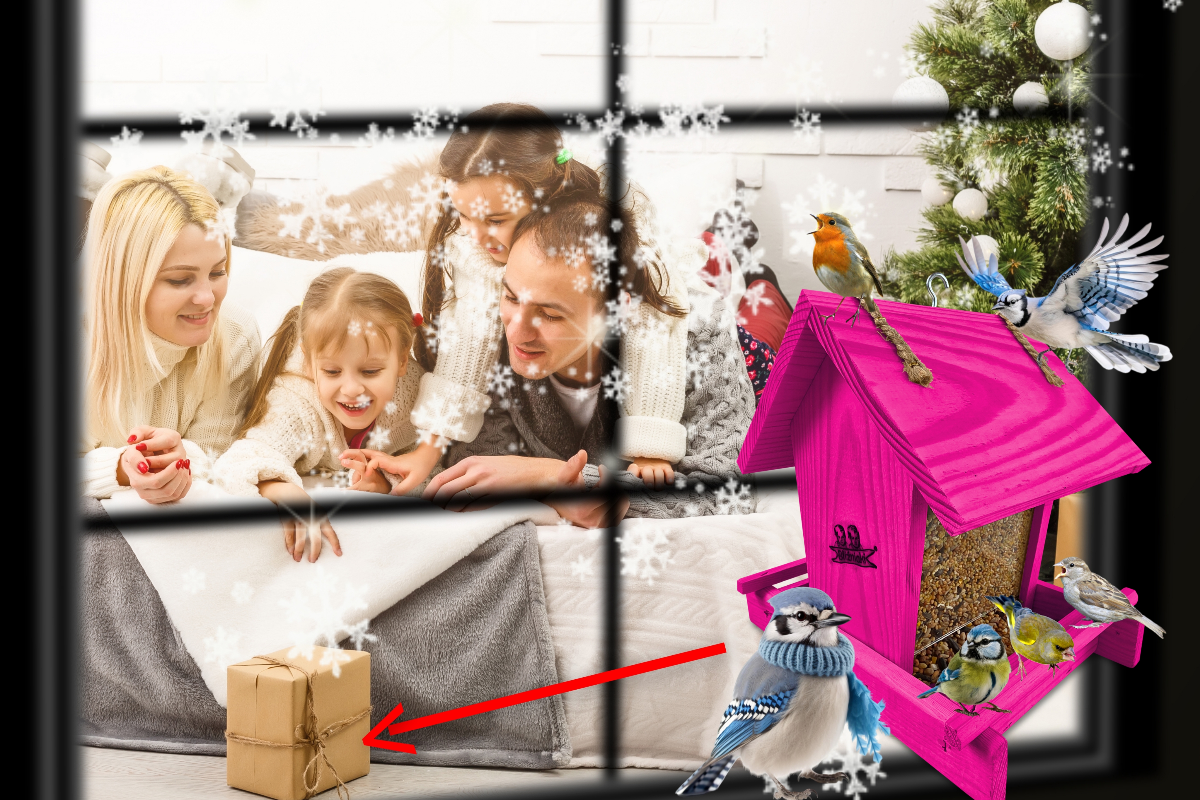 - Karmnik wykonany jest w całości z drewna iglastego, KOLOR CIEMNY RÓŻ