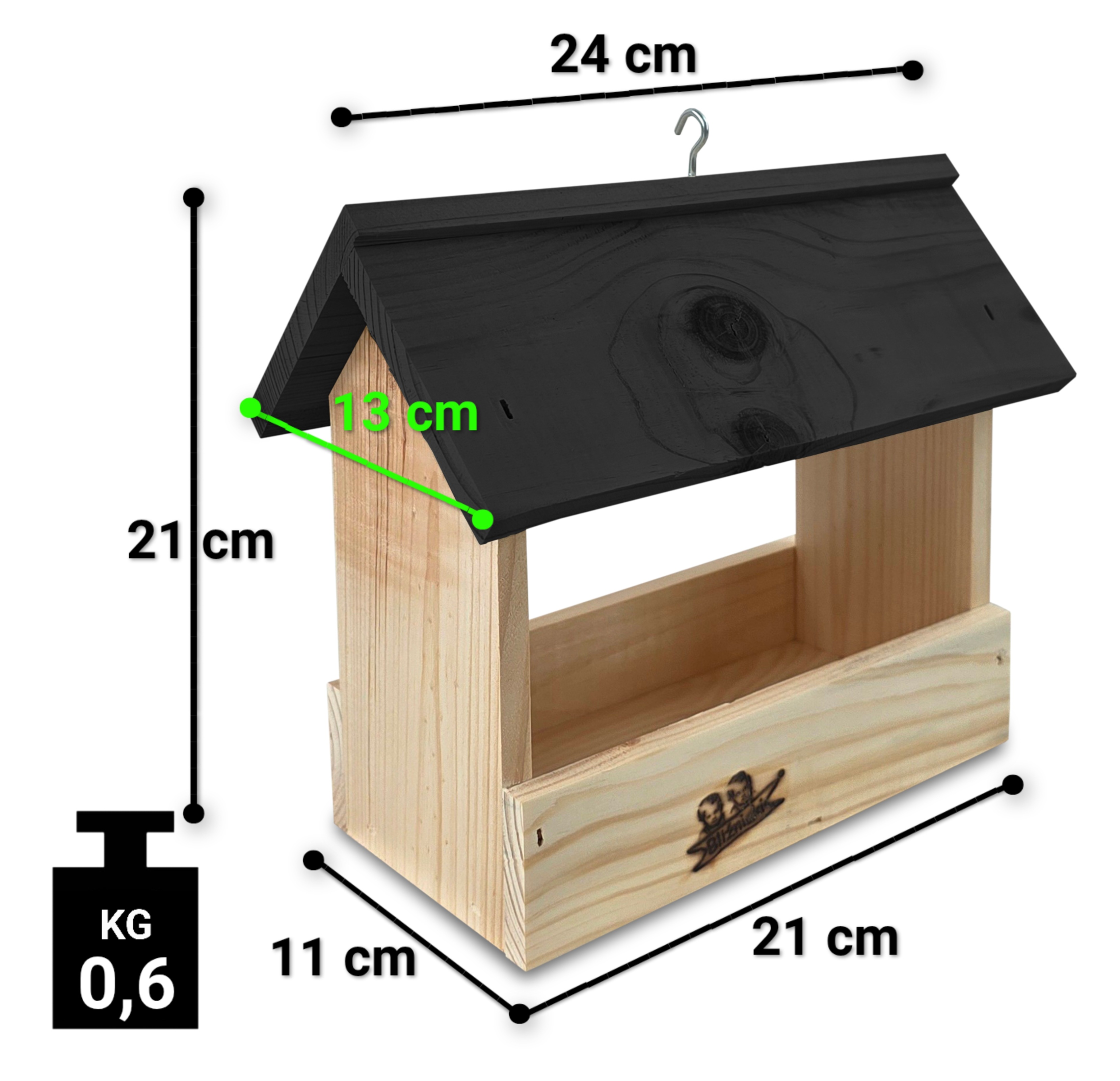 - Karmnik wykonany jest w całości z drewna iglastego, KOLOR NATURALNE DREWNO Z CZARNYM DACHEM