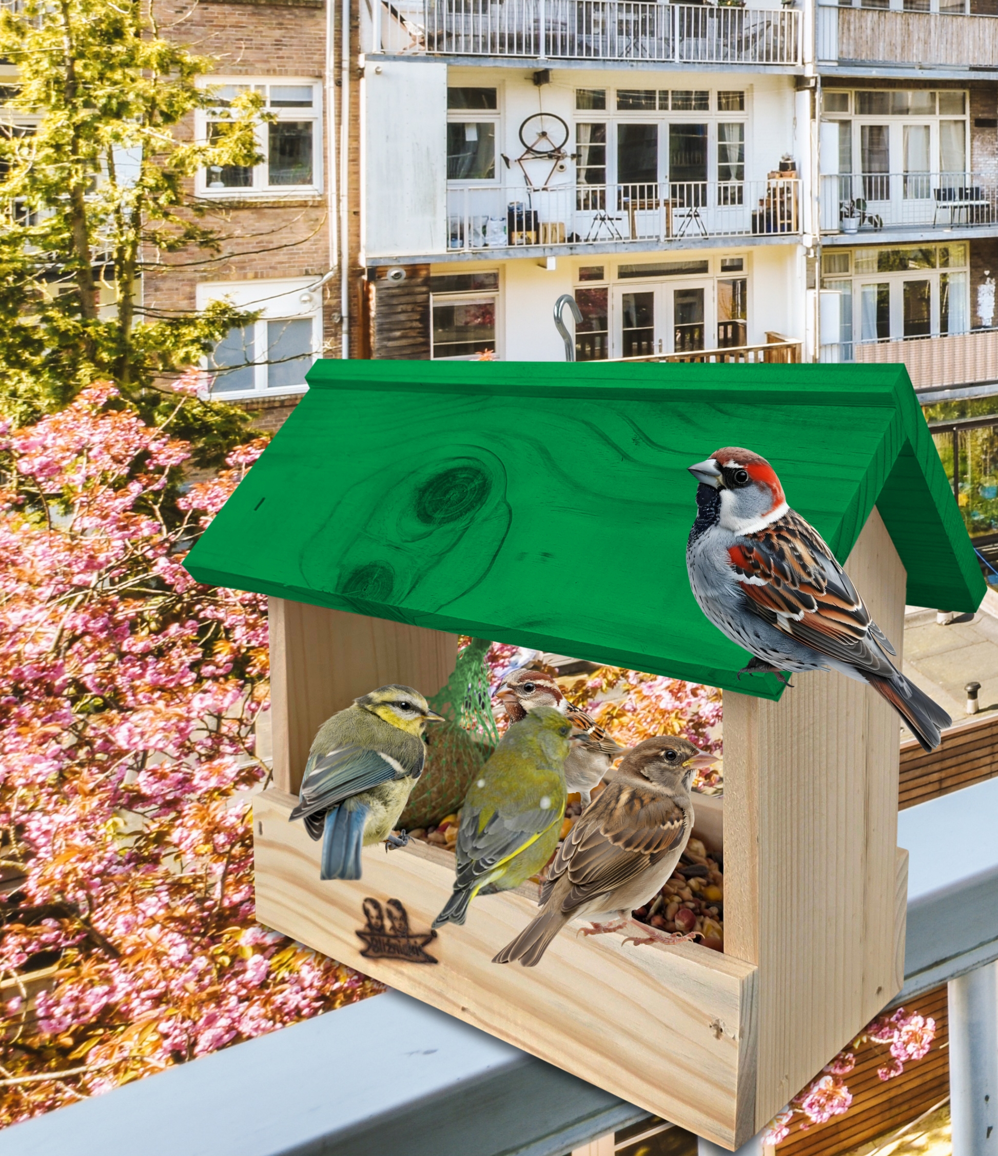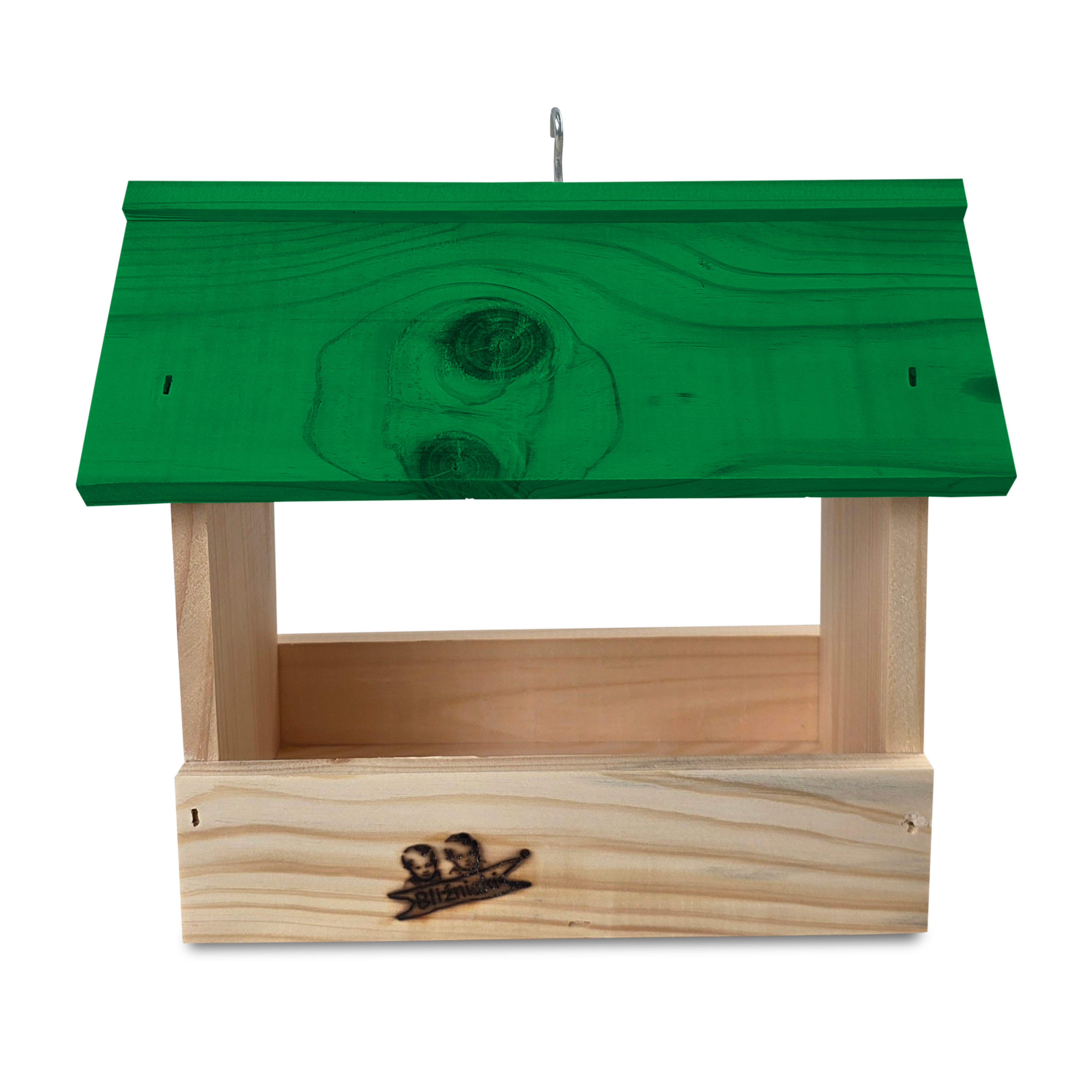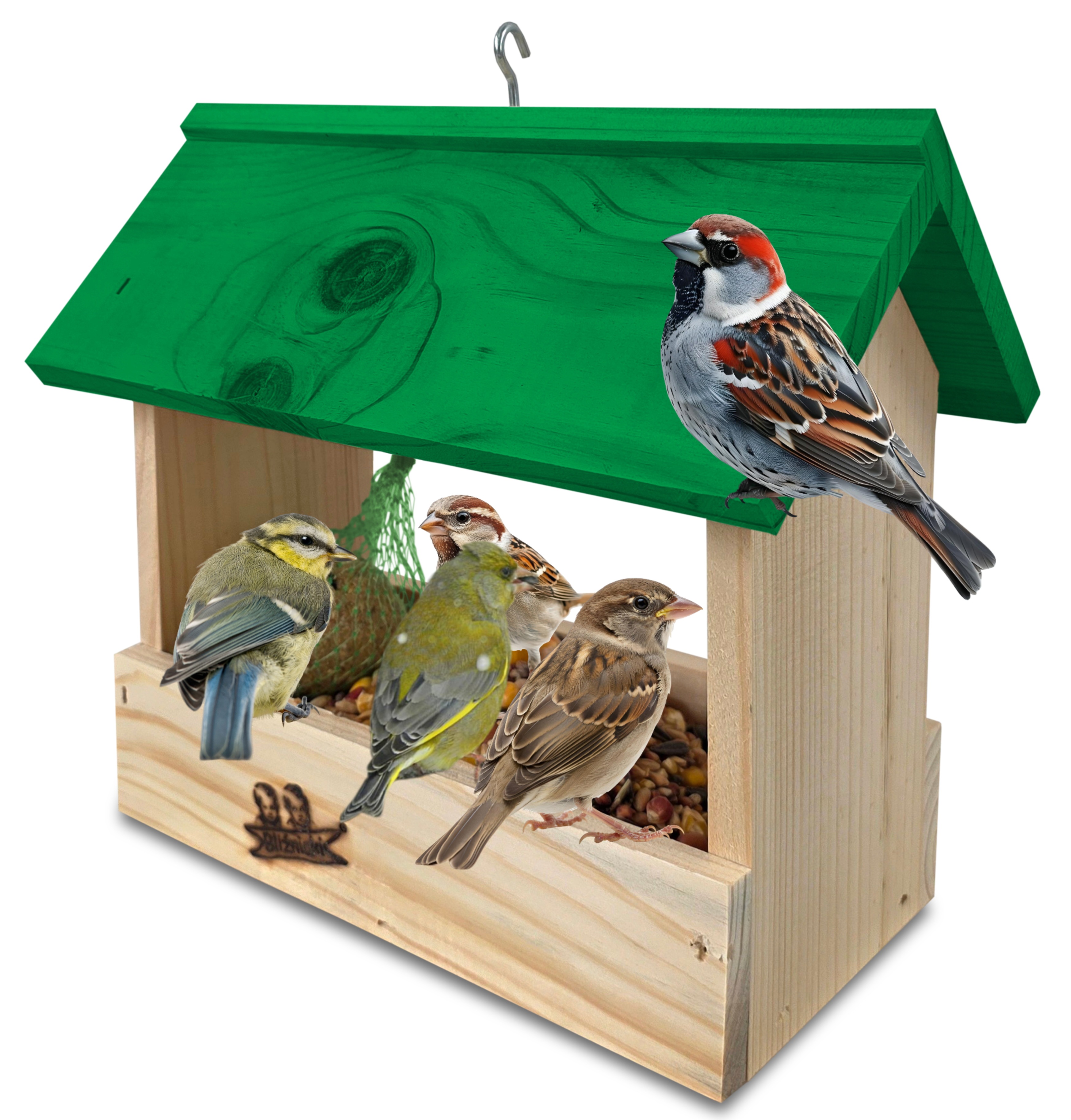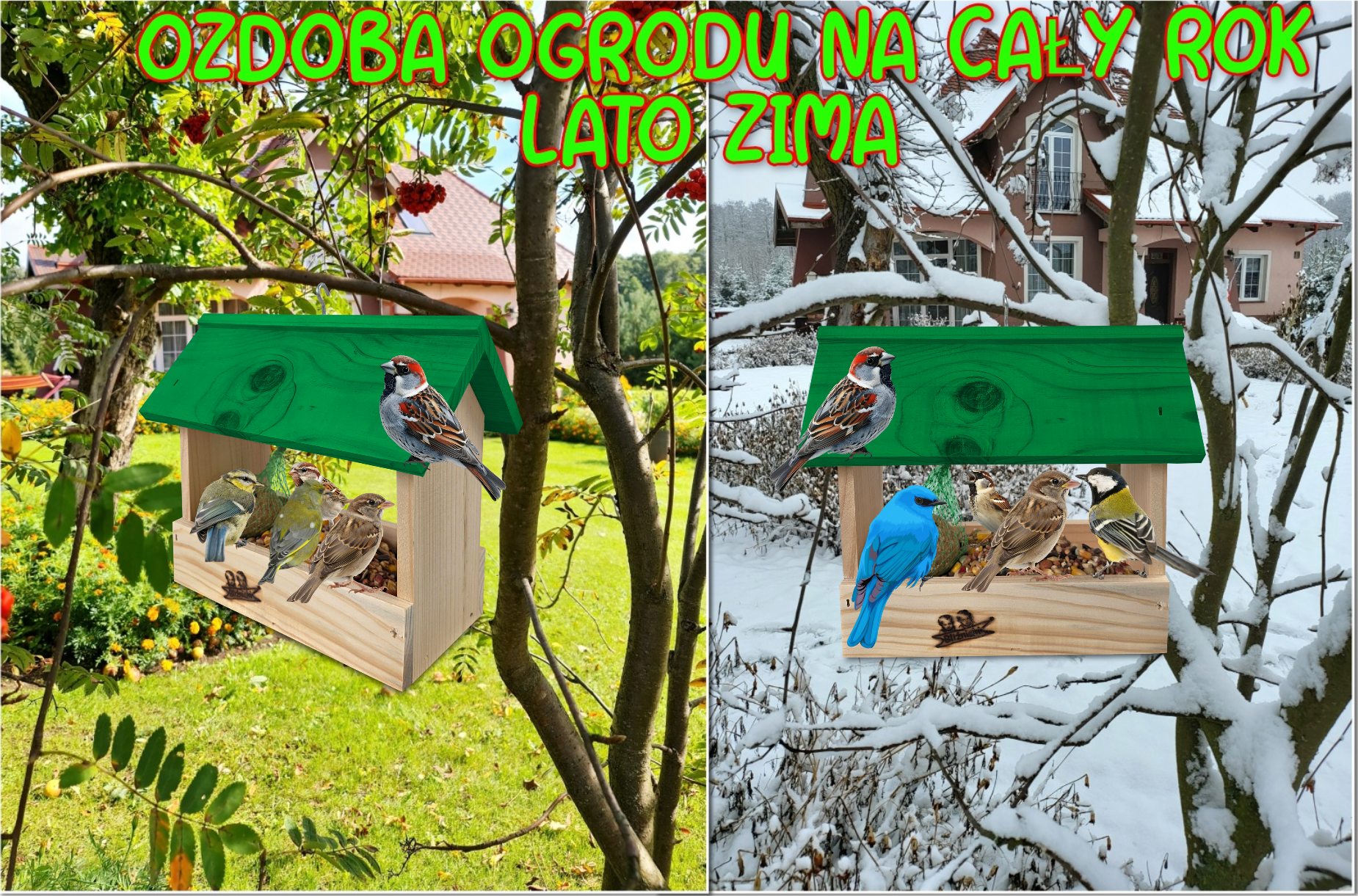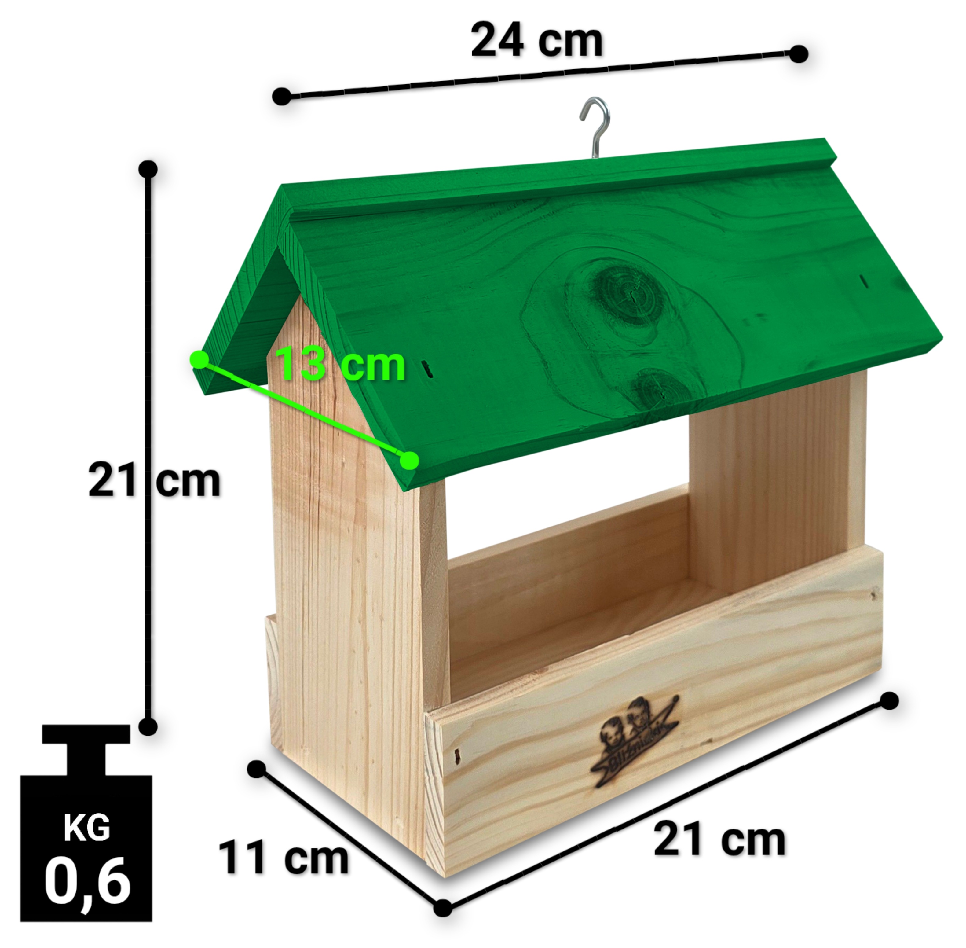 - Karmnik wykonany jest w całości z drewna iglastego, KOLOR NATURALNE DREWNO Z ZIELONYM DACHEM
