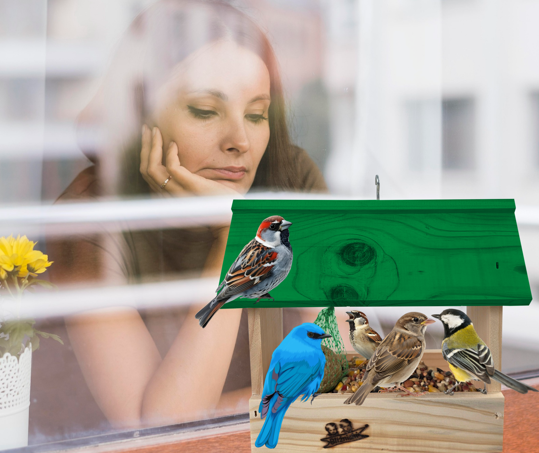 Karmnik drewniany dla ptaków na zimę na parapet na taras do ogrodu budka drewniana dekoracyjna K204 N K