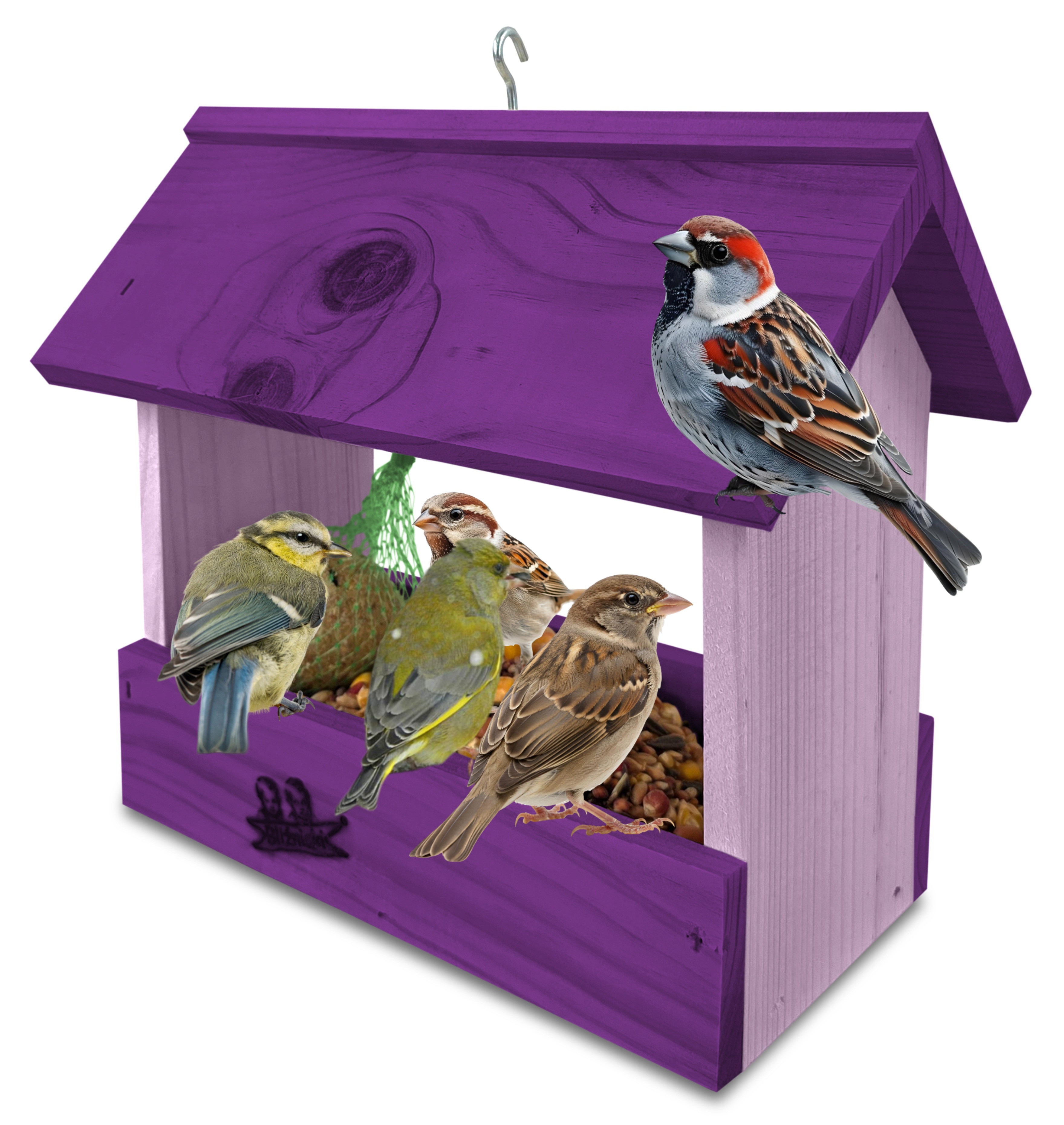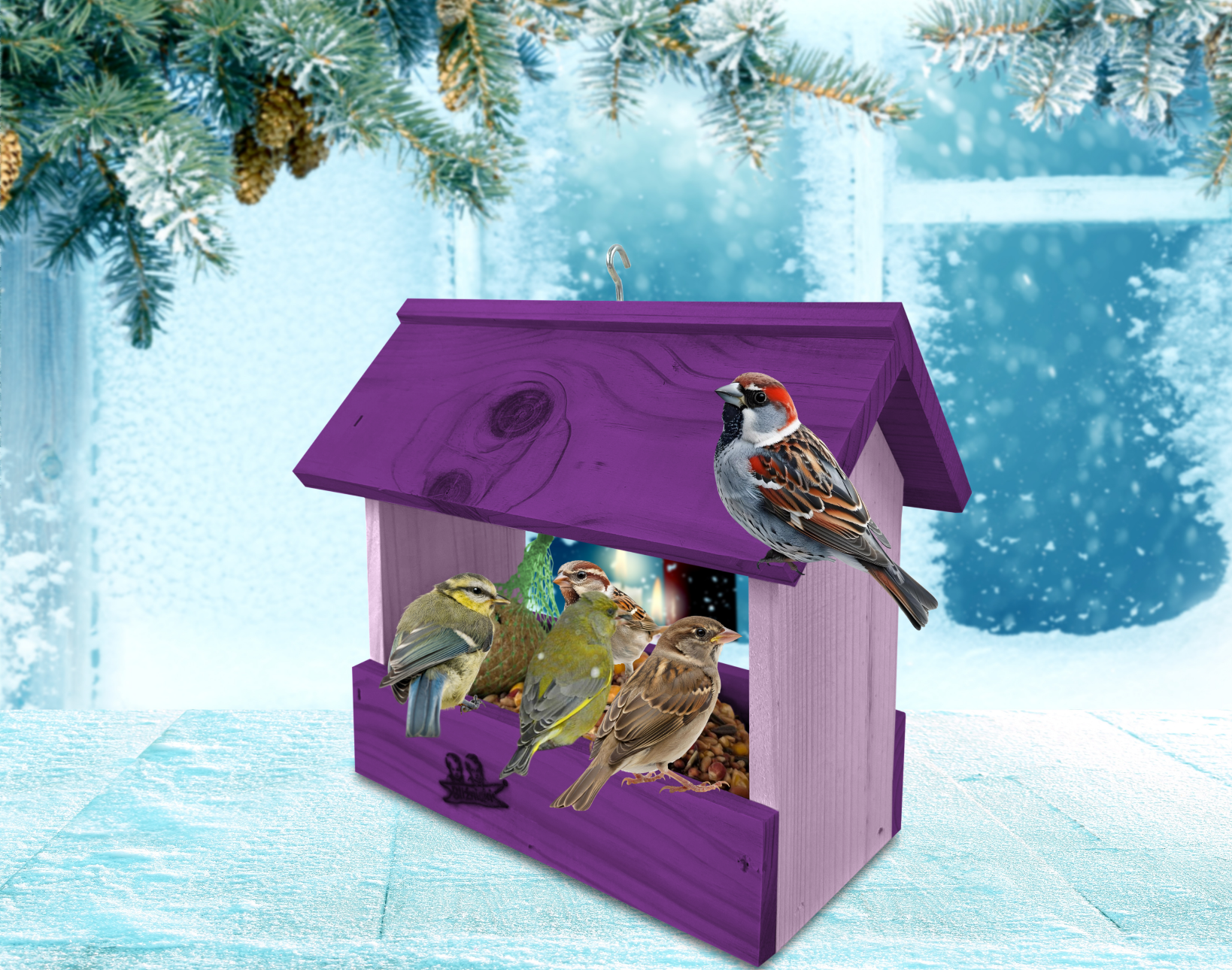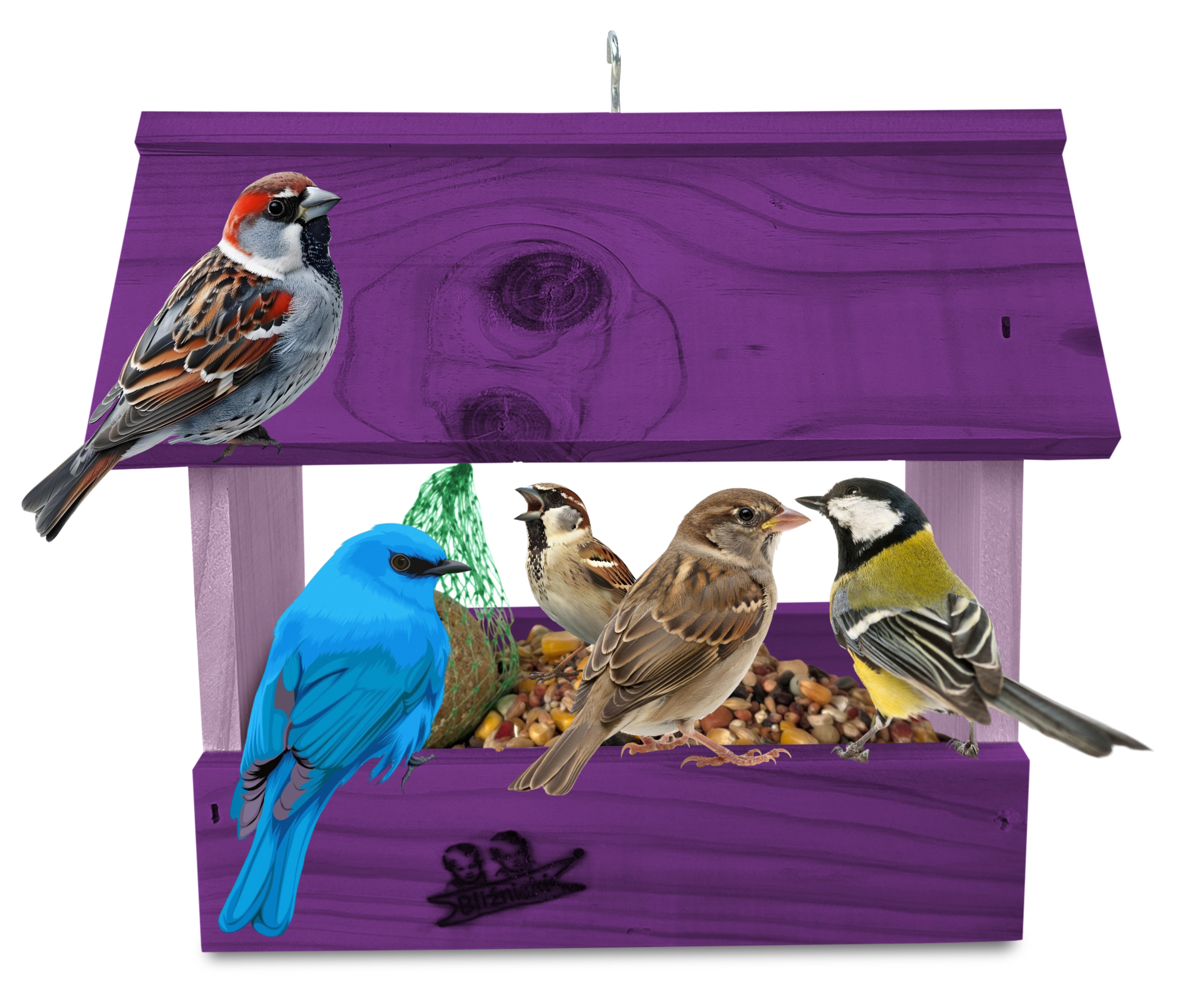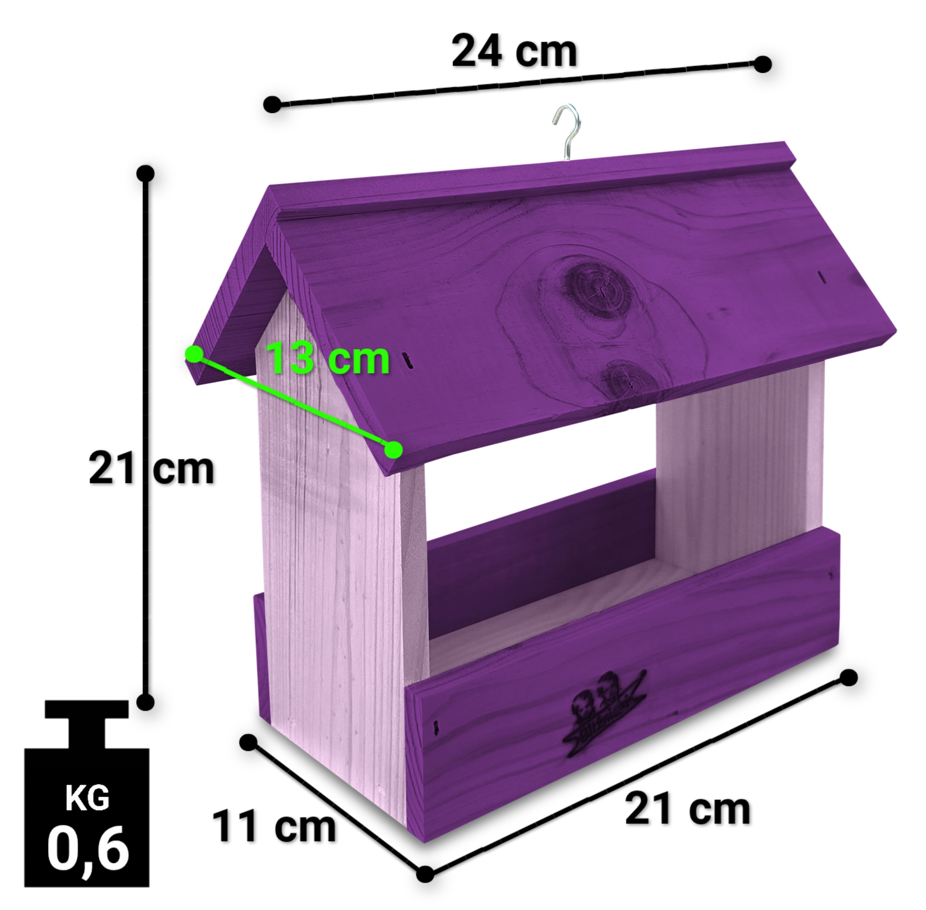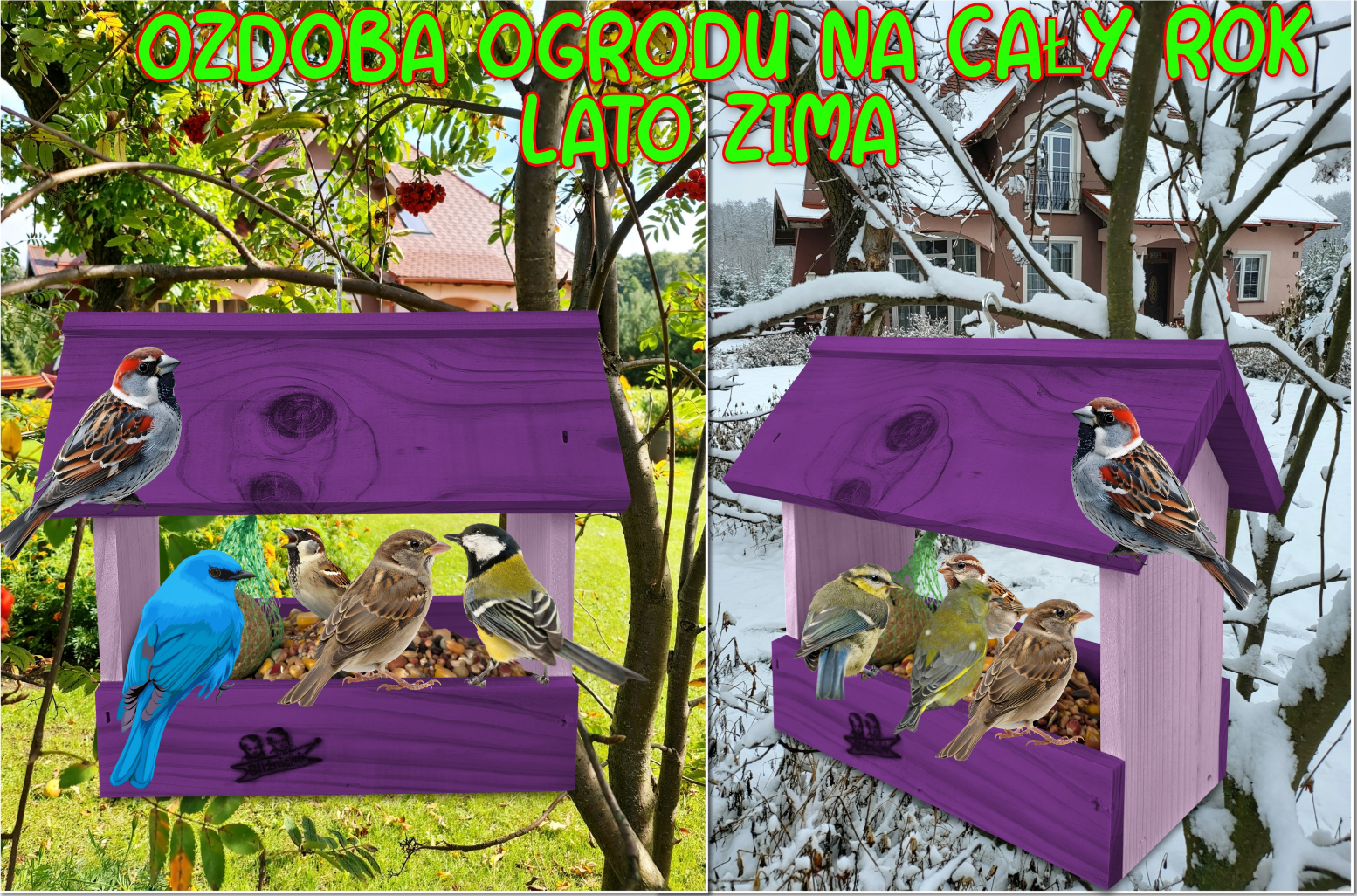 - Karmnik wykonany jest w całości z drewna iglastego, W DWÓCH ODCIENIACH FIOLETU - JASNY I CIEMNY