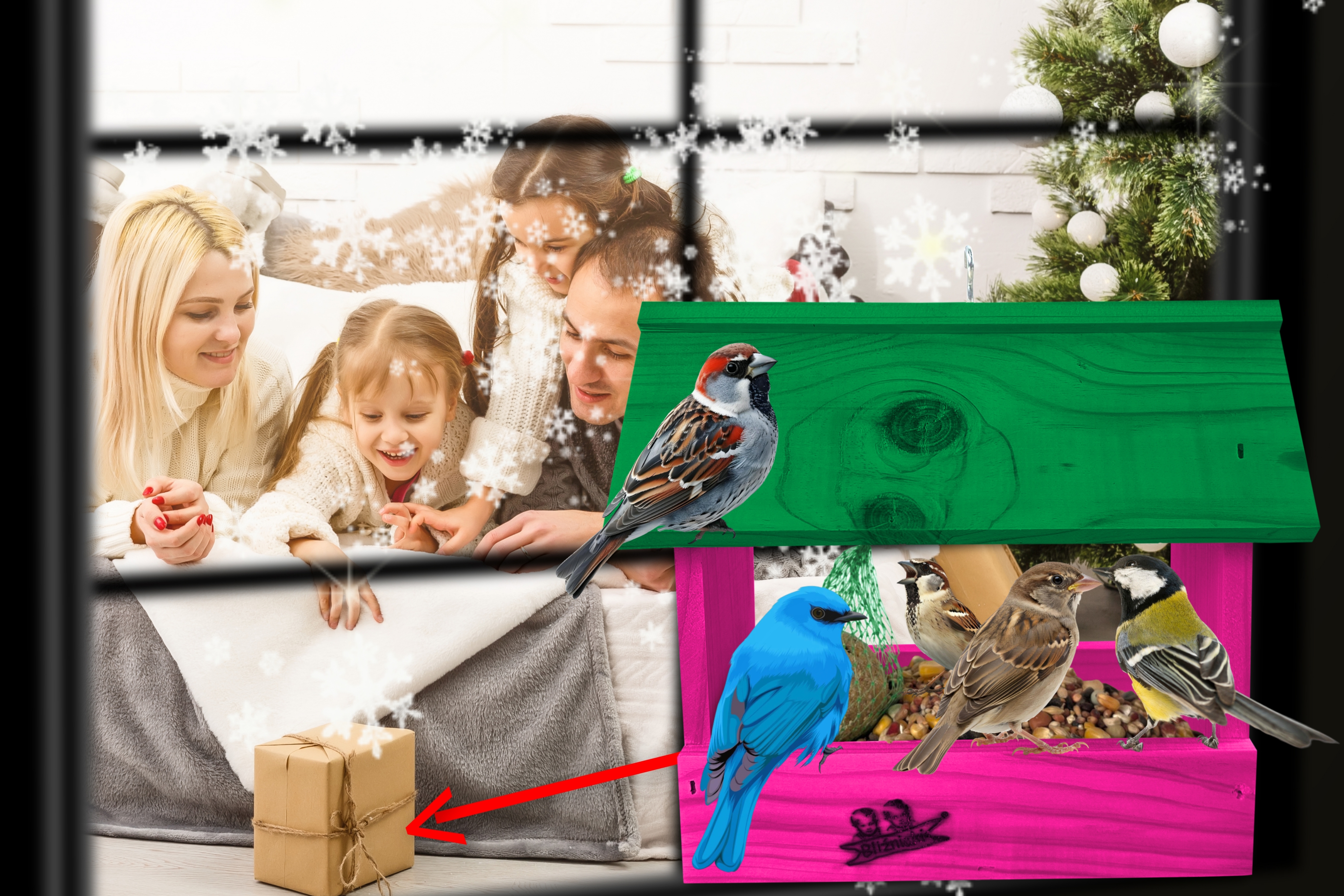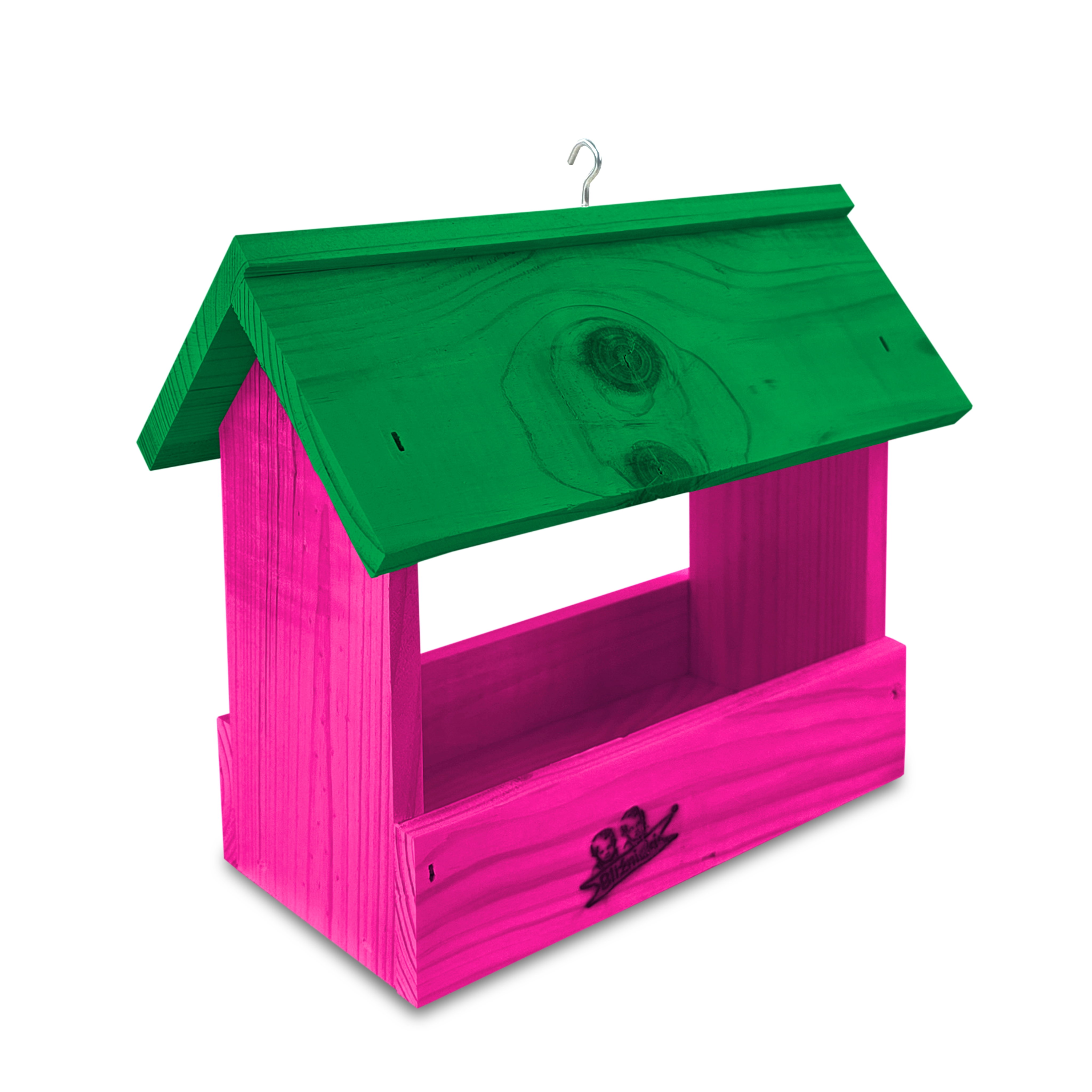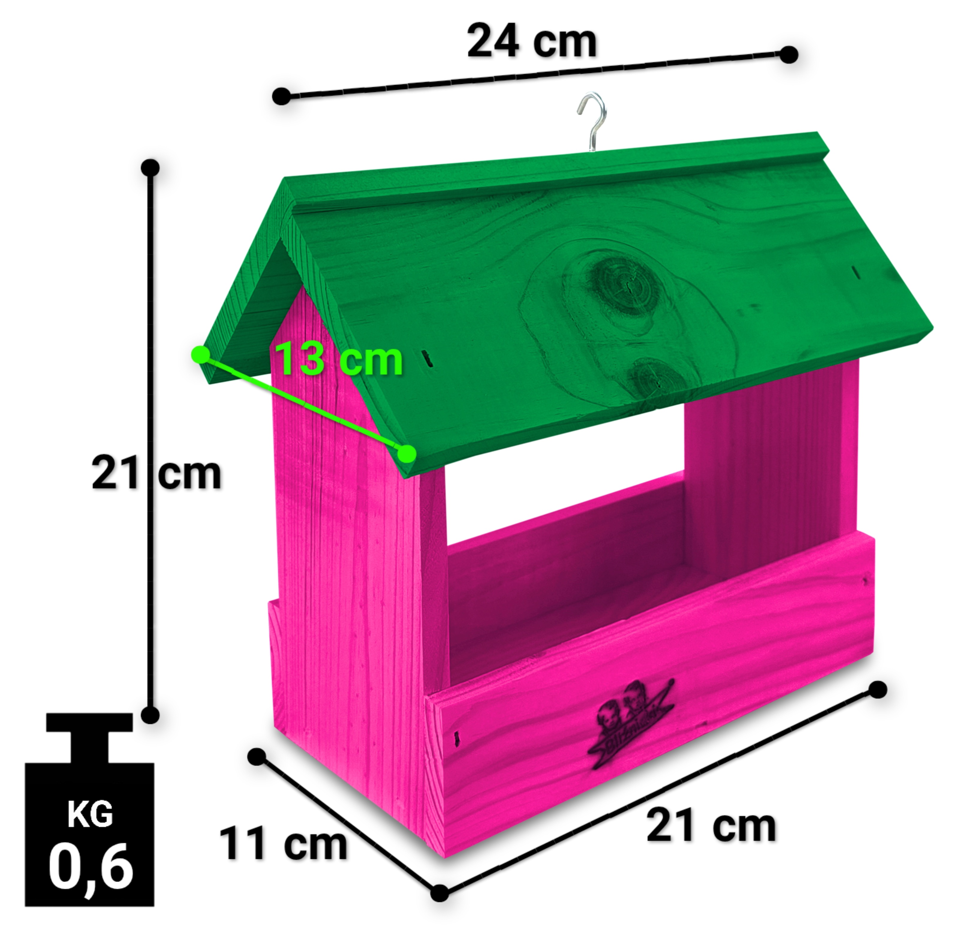 - Karmnik wykonany jest w całości z drewna iglastego, KOLOR CIEMNY RÓŻ Z ZIELONYM DACHEM