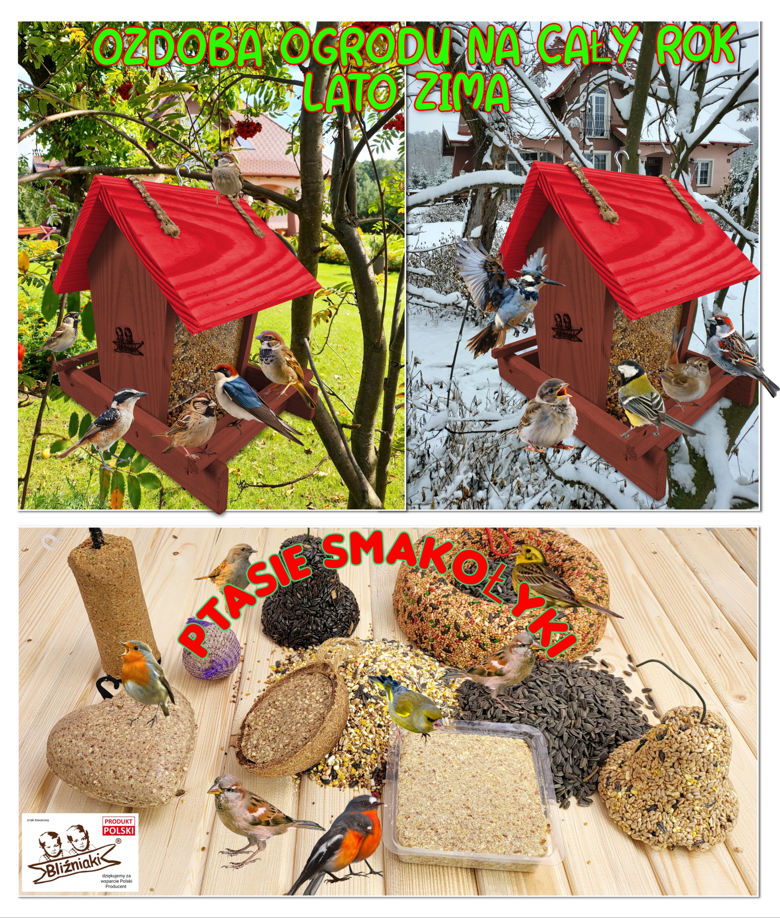 Wraz ze zbliżającym się okresem jesienno-zimowym nadchodzi trudny czas dla wszystkich gatunków ptaków, które w tym czasie nie migrują. Główny ich problem wiąże się z niedostatkiem pożywienia łatwego do zdobycia. Wszyscy powinniśmy myśleć pro-ekologicznie, dbać o bezpieczeństwo tych małych, ale bardzo pożytecznych zwierząt i zwiększyć ich szanse na przetrwanie śniegu i mrozu. Kupując karmnik z naszej aukcji i umieszczając w nim ptasi pokarm masz pewność, że przyczynisz się do utrzymania życia w Twojej okolicy.