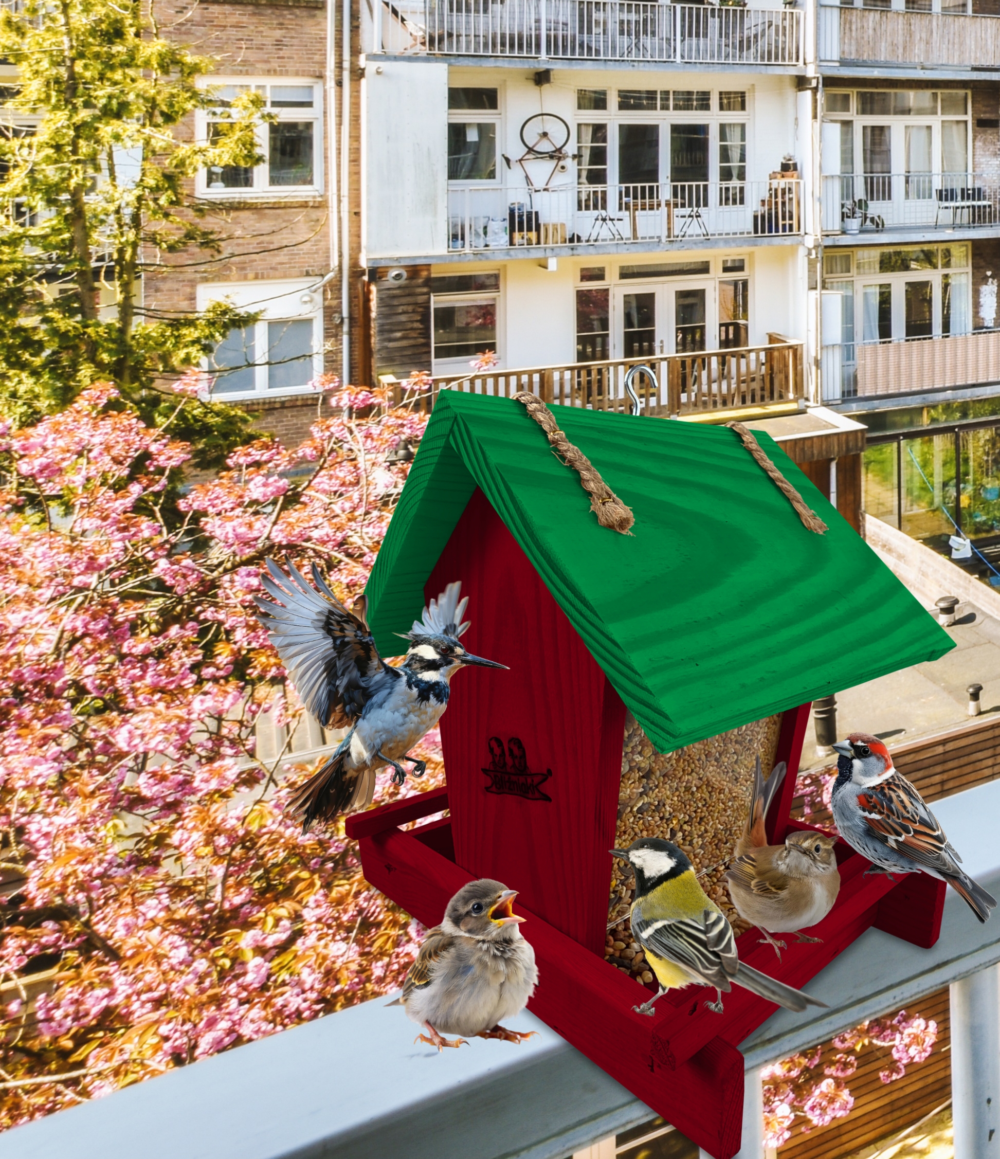 Karmnik posiada haczyk, umożliwiający zawieszenie go na balkonie, drzewie, pod dachem altany. Dzięki temu przylatujące do niego ptaki nie staną się łatwym kąskiem dla kotów i innych zwierząt. Dzięki małym gabarytom, z łatwością można wkomponować go w elementy architektury ogrodowej, na balkonie czy nawet parapecie.